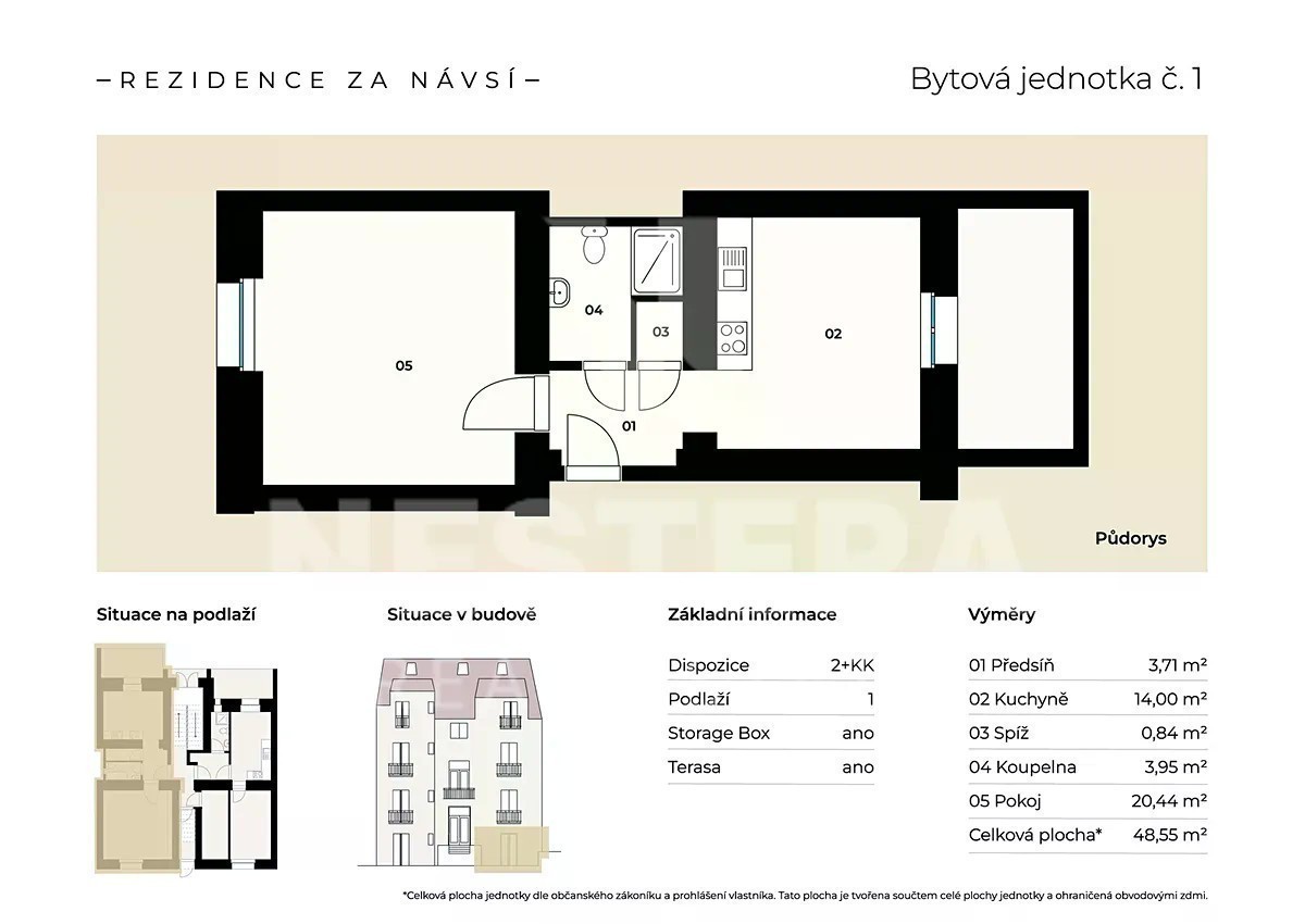 Pokud hledáte vhodnou investiční příležitost nebo byt, který je ideální jako startovací domov nebo naopak příjemné a pohodlné bydlení pro rodinu či starší pár, rádi bychom vám představili naši aktuální nabídku bytů ke koupi. Jedná se o nový byt v kompletně zrekonstruovaném činžovním domě, který se nachází v atraktivní a klidné pražské lokalitě - v Záběhlicích. Byt najdete v příjemném činžovním domě s celkem 11 moderními bytovými jednotkami. Konkrétně tato jednotka o dispozici 2+kk (49m2) je situována v přízemí a disponuje velkou a prostornou předzahrádkou (11m2), která poskytuje soukromý přístup ven. Na předzahrádce je možné relaxovat, grilovat, pěstovat zeleň nebo si vytvořit vlastní klidnou zónu pro odpočinek. Tento byt je díky své velikosti a praktickému uspořádání vhodný pro rodinu, která hledá komfortní bydlení s atmosférou rodinného domu a možností trávit čas venku na vlastním pozemku. K domu patří také společná zahrada, kterou mohou všichni rezidenti využívat pro trávení volného času a relaxaci nebo k zahradničení. Každá bytová jednotka zde má k dispozici vlastní úložný box, který nahrazuje sklep. Vybavení bytu: • Moderní materiály včetně kvalitních podlah, obkladů, sanity a elegantního designu interiérových prvků. • Podlahové vytápění zajišťující maximální komfort a úsporu energie. • Bytová rekuperační jednotka pro neustálou cirkulaci čerstvého vzduchu bez tepelných ztrát. • Praktické dispoziční řešení umožňující efektivní využití prostoru. Vytápění domu zajišťuje tepelné čerpadlo pro efektivní a úsporný provoz. Projekt je zcela dokončen a první noví majitelé již v domech bydlí. Záběhlice jsou vyhledávanou lokalitou díky propojení klidného bydlení a výborné dostupnosti do centra Prahy. V docházkové vzdálenosti od domu se nachází zastávka MHD a v blízkosti Pražského okruhu je snadné a rychlé napojení na hlavní dopravní tepny. Lokalita nabízí kompletní občanskou vybavenost - obchody, školky, školy, restaurace, kavárny i zdravotní služby. K volnočasovým aktivitám vybízí množství zeleně, Hamerský rybník, přírodní park Hostivař - Záběhlice a okolní cyklostezky a sportovní areály. Pokud tedy hledáte moderní bydlení s předzahrádkou v klidné části Prahy, ale zároveň v dosahu veškerých benefitů velkoměsta, Záběhlice pro vás budou skvělou volbou. Byty jsou již dokončeny a k nastěhování ihned. NESTERA je připravena vám vyřídit nejvýhodnější financování nemovitosti a také její následnou správu či pronájem. Nabízíme komplexní řešení v oblasti financí - pojištění, investice, finanční analýzu i tvorbu osobního životního plánu prosperity. Pro více informací kontaktujte tým NESTERA.