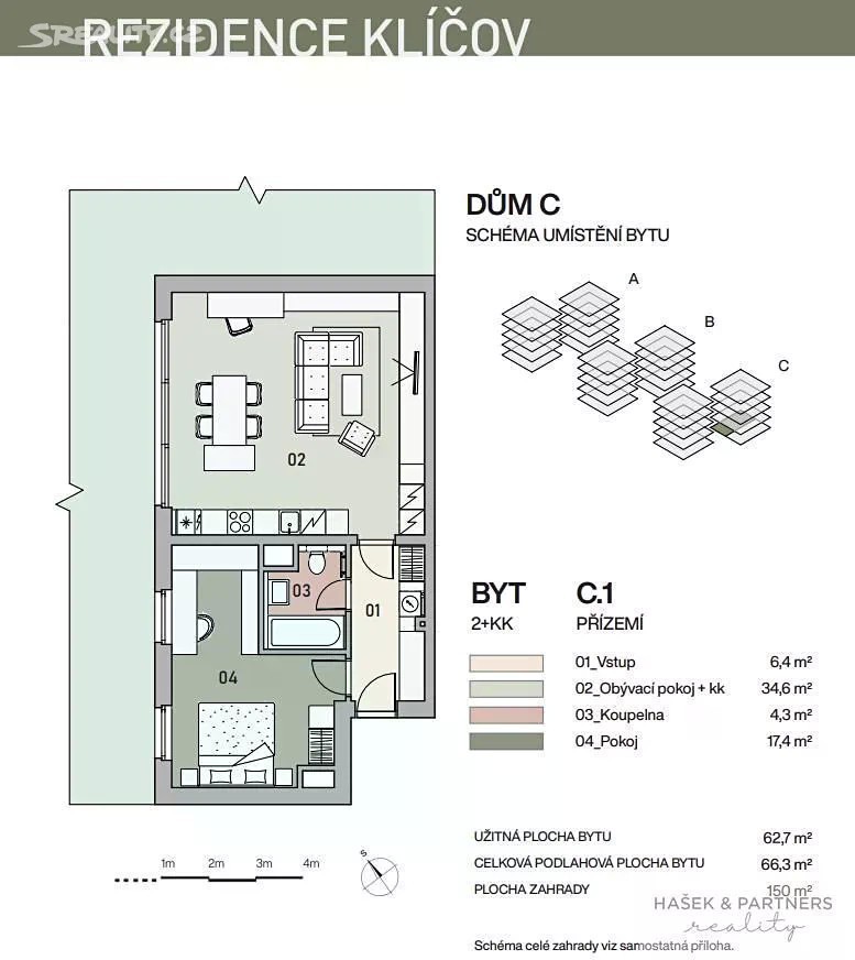 Nabízíme k prodeji, v nově vznikajícím bytovém komplexu rezidence Klíčov ve Vysočanech byt o dispozici 2+kk o velikosti 66,3m2 a Zahradu o velikosti 150m2, nacházející se ve přízemí budovy C. Orientace bytu na S/Z. Celý komplex bude mít celkem 54 bytových jednotek rozdělených do tří, vícepatrových budov. Lokalita v klidné části Vysočan na území bývalých viničních usedlostí Klíčov a Krocínka v blízkosti zeleně a zároveň s velmi dobrou občanskou vybaveností a dopravní dostupností do centra města. V blízkosti je stanice metra B Vysočanská, autobusová zastávka směr do Kobylis, na Českomoravskou, Prosek, Střížkov, Skalku, Opatov, Chodov a do dalších. Pár minut jízdy také nájezdy na dálnice D8 a D10. V blízkosti se nachází nákupní centrum Fénix a Galerie Harfa, škola, školka, pošta, poliklinika, sportovní hala O2 Arena. Cena bytu je uvedena včetně DPH a nezahrnuje sklepní kóji. Pro více informací a kompletní nabídku bytů nás neváhejte kontaktovat. Dokončení projektu je plánováno koncem roku 2025.