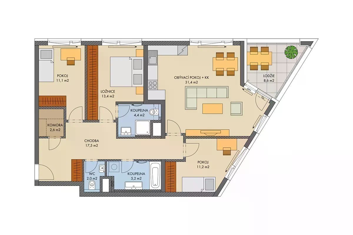 Krásný nový byt 4+kk o podlahové ploše 105,00 m2 s lodžií (8,60 m2), který se nachází v rezidenčním projektu Kaskády Barrandov od společnosti FINEP. Výhodou bydlení v novostavbě je, že si můžete uzpůsobit byt podle svého vkusu. V naší nabídce naleznete velké množství podlah, obkladů, interiérových dveří a mnoho dalšího, ze kterého vytvoříte vaše vysněné bydlení. Jedním z velkých benefitů pražského Barrandova je blízkost unikátního přírodního parku Prokopské údolí. Barrandov svým obyvatelům nabízí kompletní občanskou vybavenost a plnohodnotnou městskou infrastrukturu v podobě škol, školek, zdravotnických zařízení, úřadů nebo obchodů. Velkým bonusem je třeba i celoročně otevřený aquapark. Dopravní dostupnost lokality s centrem zajištuje několik tramvajových linek, které v pravidelných intervalech jezdí na Smíchovské nádraží (12 min) i na Václavské náměstí (20 min). Barrandov je ideální lokalitou pro všechny věkové kategorie. Naše společnost FINEP se na trhu s nemovitostmi pohybuje již od roku 1995 a dlouhodobě jsme v TOP 3 největších developerů v rezidenčním i administrativním segmentu v České republice. Fotografie a vizualizace jsou ilustrativního charakteru-domluvte si s námi schůzku pro bližší informace. Při kontaktu prosím uvádějte evidenční číslo K20O10102