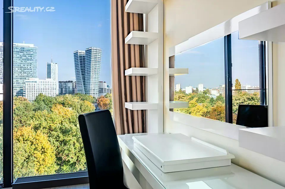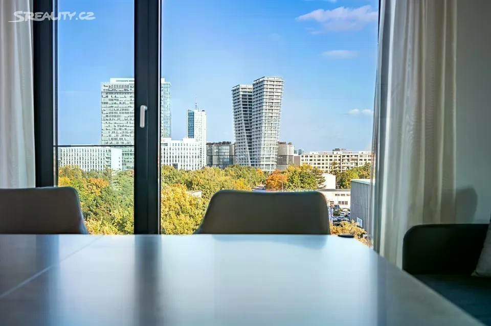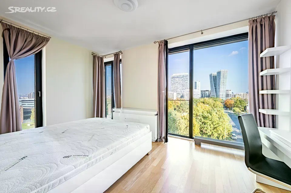 Pronájem kompletně zařízeného, luxusního, klimatizovaného bytu 3+kk s terasou s neopakovatelnými výhledy do dalekého okolí, dvěma parkovacími místy, situovaný v 8. patře moderního projektu Rezidence Kavčí Hory s podzemním parkováním, 24h recepcí, fitness centrem, ostrahou a kamerovým systémem. Klidná lokalita v blízkém dosahu plné občanské vybavenosti a v rychlé dostupnosti do centra, v sousedství Centrálního parku a areálu ČT, v pěším dosahu stanice metra Pankrác a nákupního centra Arkády Pankrác. Interiér bytu tvoří otevřený prostor obývacího pokoj s jídelním prostorem, plně vybavenou kuchyní a vstupem na terasu, 2 oddělené ložnice, dále koupelna s vanou, samostatná koupelna (sprchový kout, toaleta), toaleta pro hosty zvlášť, technická komora a vstupní hala. K luxusnímu nadstandardnímu vybavení patří vestavěné skříně a úložné prostory, dřevěné podlahy, dlažba, bezpečnostní vstupní dveře, velkoplošná a francouzská okna po celém obvodu bytu, elektrické před-okenní rolety, kompletně vybavená kuchyňská linka vybavená kuchyňskými spotřebiči MIELE, pračka, sušička, videotelefon. Cena bytu zahrnuje vybavení uvedené ve fotodokumentaci, dvě parkovací místa v suterénu domu a byt je připraven k okamžitému nastěhování. K dispozici ihned. Energetická náročnost B (nebyla sdělena vlastníkem budovy)
