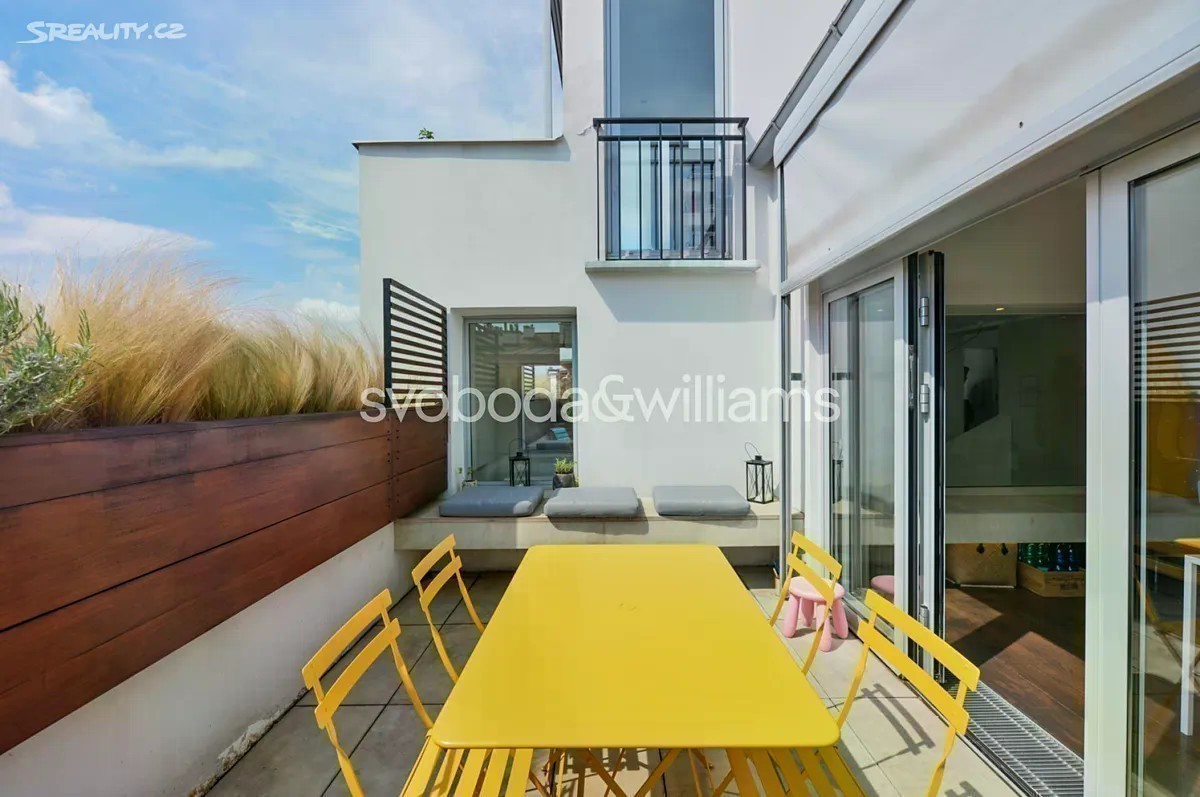 Nabízíme k pronájmu vysoce kvalitní zrenovovaný penthouse se 3 jižně orientovanými terasami a přístupem přímo z výtahu, situovaný v 5. patře zrekonstruovaného činžovního domu. Dům se nachází v klidné ulici v blízkosti Riegrových sadů, minutu chůze od náměstí Jiřího z Poděbrad se stanicí metra, zastávkou tramvají, stanoviště pravidelných farmářských trhů a množství kvalitních kaváren, bister a restaurací. Vyhledávaná lokalita s velmi rychlou dostupností do centra a k plné občanské vybavenosti, v pěším dosahu nákupního centra Atrium Flora. Hlavní úroveň bytu nabízí prostornou halu s dvojitou výškou stropu, obývací pokoj s terasou, plně vybavenou kuchyň s jídelnou a terasou, hlavní ložnici s en-suite koupelnou (vana a sprchový kout, toaleta), další dvě ložnice, samostatnou koupelnu (vana, toaleta), technické zázemí a toaletu pro hosty. V horním patře je galerie vhodná pro pracovní kout, jedna ložnice / herna / knihovna s třetí terasou a koupelna se sprchou a toaletou. Vstupní patro má chodbu s vestavěnými úložnými prostory a je přístupné přímo z výtahu. Klimatizace, dřevěné podlahy, dlažba, francouzská okna, dostatek vestavěných skříní a úložných prostor, elektricky ovládané stínění na terasách, automatická závlaha na terasách, podkrovní úložný prostor, myčka, mikrovlnná trouba, sklep.