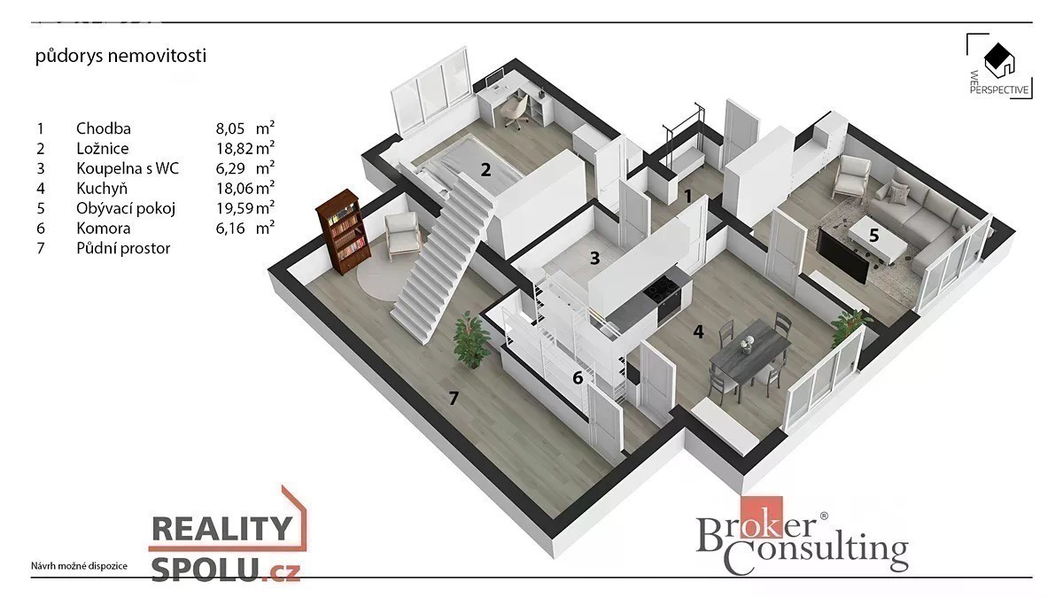 Byt v osobním vlastnictví o dispozici 2+1 s celkovou výměrou 76,97 m², který se nachází ve 3NP (2.patro) cihlového domu bez výtahu, na adrese U Trojice 562, Pardubice - Svítkov. Byt je vhodný pro ty, kteří hledají prostorné bydlení za příznivou cenu a upřednostní komfort bytu před atraktivitou lokality. Z oken bytu je příjemný výhled do korun stromů, což dává prostoru klidnou atmosféru a zároveň pocit soukromí. Byt se skládá ze dvou prostorných místností, kuchyně s jídelní částí - lze spojit i s obývacím pokojem, koupelny, komory a předsíně. V bytě proběhla částečná rekonstrukce - nové podlahy a modernizace koupelny. Vytápění a ohřev vody zajišťuje plynový kotel. Součástí bytu je prostorný sklep o rozloze 22,65 m² a půdní prostor o výměře celkem 55,6 m², rozdělený na dvě části - jednu hned vedle kuchyně a druhou přímo nad ní. Aktuálně je přístupný ze společných prostor, ale je možné vybudovat přímý vstup z bytu. Nabízí se tak zajímavý potenciál pro rozšíření do mezonetu nebo prosté užitné plochy podle vlastních představ. Půdní prostory jsou v původním stavu, 3D půdorysy slouží pouze jako orientační návrh možné rekonstrukce. Byt se prodává ve stavu, v jakém je zachycen na fotografiích. Vizualizace rekonstrukce jsou vytvořeny pouze pro představu možné podoby interiéru. Dům, ve kterém se byt nachází, je architektonicky zajímavý a má osobitý charakter. Za domem se nachází zahrada s posezením, která patří městu a je zde možnost pronájmu její části. V okolí je navíc dostatek zeleně a vzrostlých stromů. Lokalita nabízí dobrou dostupnost - v docházkové vzdálenosti se nachází vlakové nádraží a nákupní centrum, kde najdete veškerou občanskou vybavenost. Do centra města je to kousek jak autem, tak MHD. K nastěhování dle domluvy. Pro více informací mě neváhejte kontaktovat, ráda zodpovím vaše dotazy. Těším se na osobní setkání, Barbora Židlická