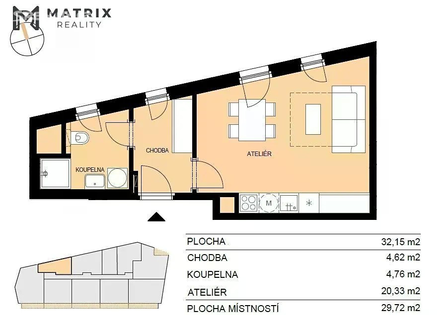 Prodej bytu 1+kk 32 m² Nová Tesla, Pardubice - Pardubičky