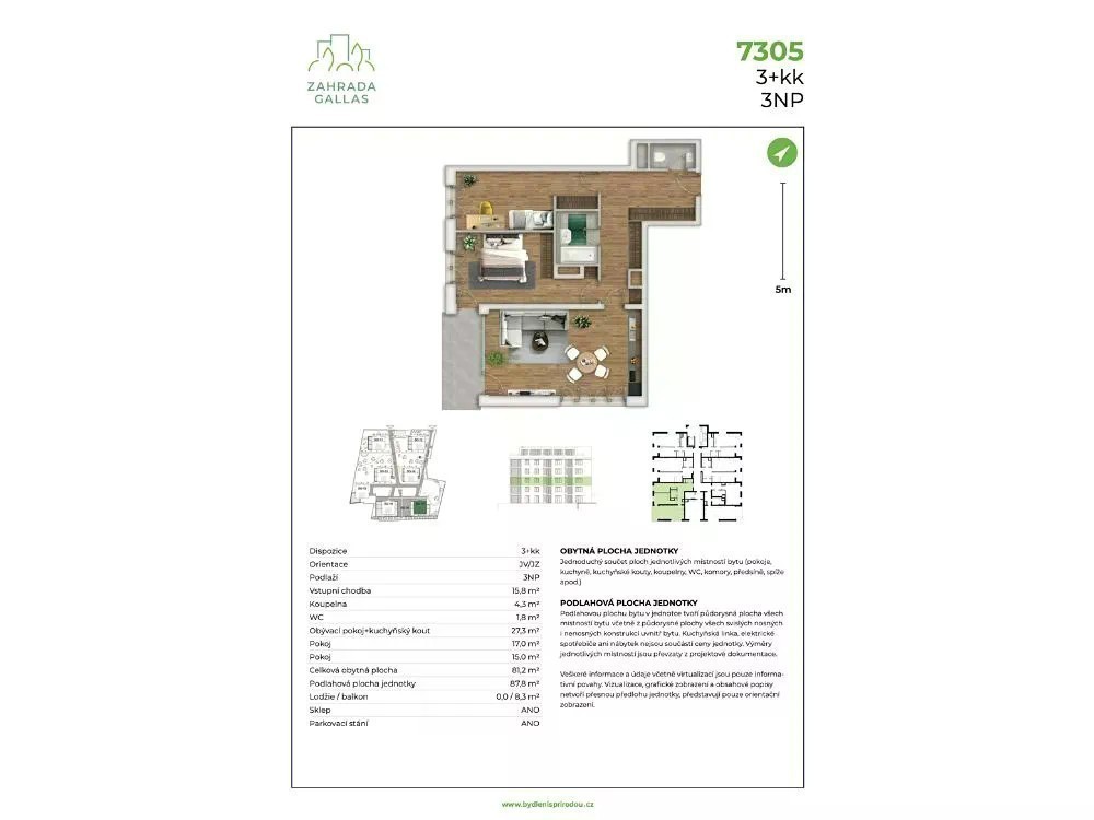 Hledáte moderní bydlení v klidné lokalitě s výbornou dostupností? Nabízíme vám krásný byt 3+kk o velikosti 81,6 m² na hezkém místě v Liberci. Tento prostorný byt se nachází ve 2. nadzemním podlaží a zaujme vás svou promyšlenou dispozicí i příjemnou orientací na jihovýchod a jihozápad, která zajišťuje dostatek denního světla po celý den. Hned při vstupu vás přivítá prostorná chodba o velikosti 16 m², která nabízí dostatek místa pro vestavěné skříně a praktické úložné prostory. Obývací pokoj s kuchyňským koutem (27,4 m²) je ideálním místem pro rodinná setkání či pohodové večery s přáteli - navíc přímo navazuje na balkon o velikosti 8,3 m², kde si můžete užít ranní kávu nebo klidný výhled do zeleně. Byt disponuje dvěma samostatnými pokoji o velikosti 17 m² a 15 m², které mohou sloužit jako ložnice, dětský pokoj či pracovna. Koupelna (4,3 m²) a oddělené WC (1,9 m²) zajišťují komfortní a praktické bydlení. Samozřejmostí je sklep i parkovací stání, které jsou součástí nabídky. Architektonický koncept projektu vychází z návrhu renomovaného anglického studia Chapman Tailor a je inspirován prvorepublikovými vilami. Výstavba nabízí dostatek prostoru mezi budovami a pečlivě řešené veřejné prostory, což vytváří přívětivé a neanonymní prostředí. S maximálně 40 byty v každé budově zde můžete očekávat klid a soukromí. Strategická poloha v blízkosti libereckého nádraží zajišťuje vynikající dostupnost do centra města i mimo něj. Užijte si moderní bydlení v srdci Liberce s projektem Zahrada Gallas. Kontaktujte nás a my vám rádi připravíme individuální finanční plán podle vašich potřeb. Byt je v družstevním vlastnictví, což znamená, že nepotřebujete hypotéku. Stačí zaplatit 20 % z ceny bytu a můžete se nastěhovat. Zbytek ceny bytu budete pak splácet formou nájmu. Pokud byste se rozhodli v budoucnu byt prodat, můžete svůj družstevní podíl snadno a rychle převést na kohokoli. Po splacení si můžete byt převést do osobního vlastnictví. Ozvěte se nám a dohodněte si individuální prohlídku vzorového bytu. Prohlédnete si standard kvality naší výstavby, dozvíte se, proč je družstevní bydlení díky financování tak výhodné, získáte na míru šitý návrh financování dle vašich možností a dozvíte se všechno o družstevní formě vlastnictví. Pokud vás tento byt zaujal, neváhejte nás kontaktovat. Připravíme vám individuální finanční model na míru vašim požadavkům.
