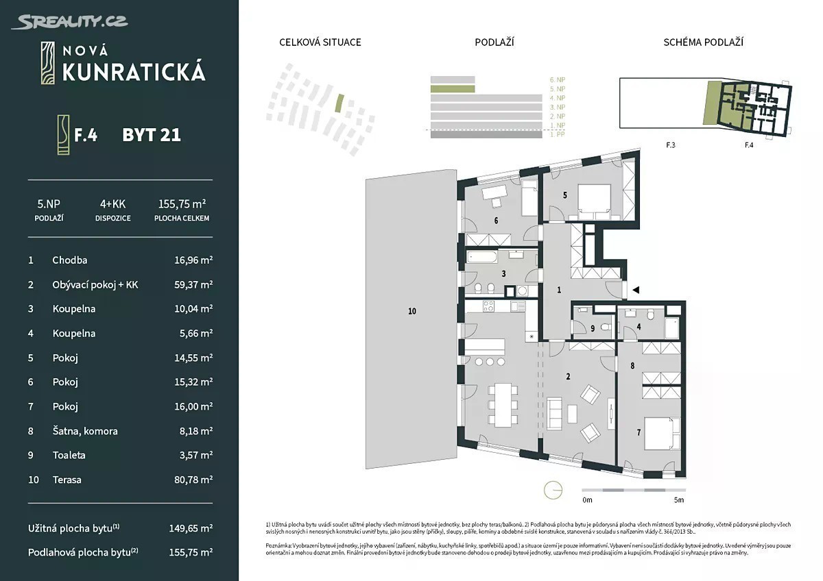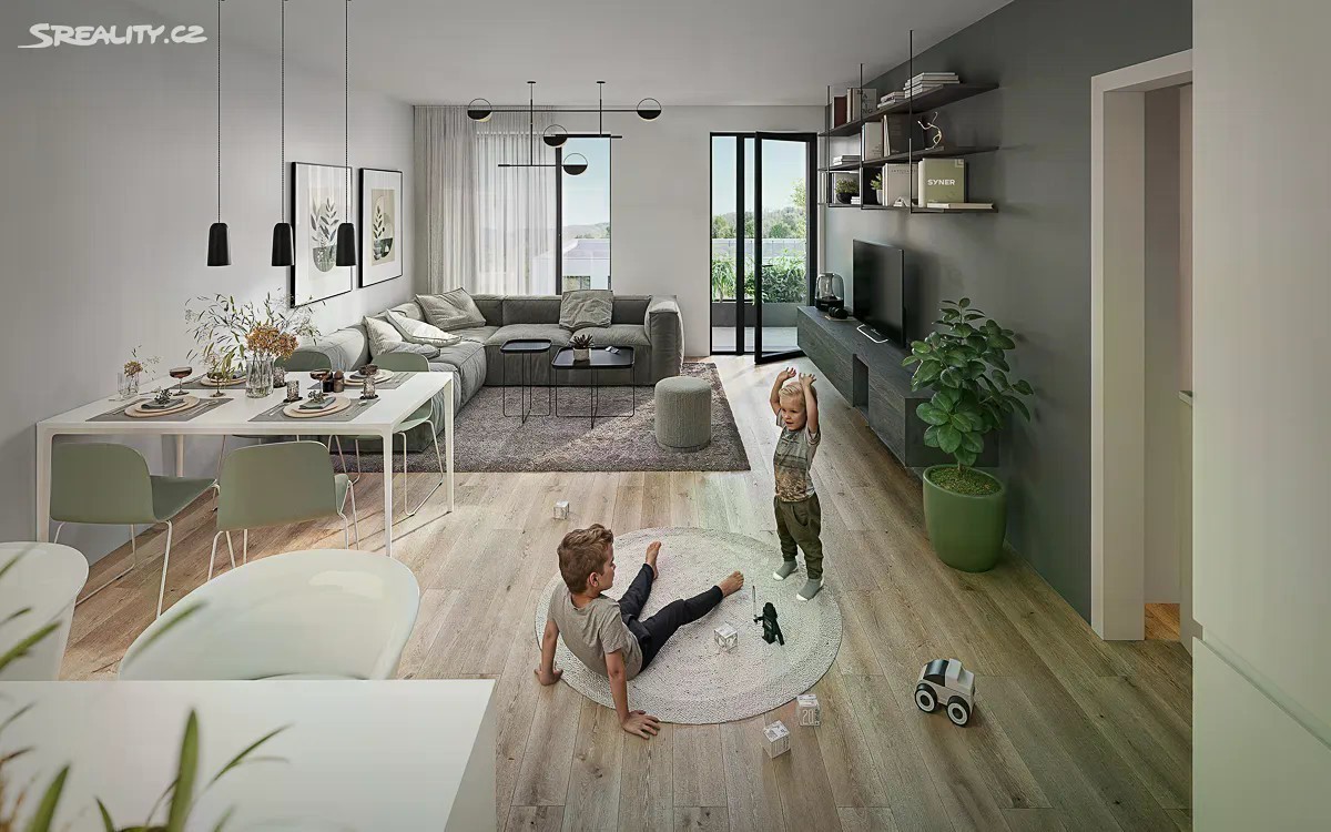 Tento nový byt č. F4.5.21 o dispozici 4+kk (149,65 m2) s terasou (80,78 m2) se nachází v 5. podlaží budovy F3F4 na Nové Kunratické Projekt Nová Kunratická je novodobou lesní čtvrtí, která postupně vzniká v jedinečné liberecké lokalitě na pomezí Kunratické, Nového Harcova a Kunratic. Je ideální kombinací komfortu města, blízkosti přírody a moderního bydlení. V 1. etapě stavíme dvě šestipodlažní budovy s 97 byty o dispozicích od 1+kk po 4+kk. Tato bytová jednotka vyniká zejména chytře řešenými dispozicemi, prostornou terasou a vysokým standardem bydlení. Velkou prosvětlenost interiéru a propojení s okolní přírodou zajišťují velká okna s předokenními žaluziemi i zmíněná vlastní terasa nabízející prostor pro odpočinek. Dispozice bytu jsou navrženy s ohledem na aktuální trendy a maximální využitelnost prostoru. Celý koncept je navržen tak, abyste už v rámci standardního provedení bydleli v nadstandardním pohodlí. Tomu odpovídá i výběr kvalitních vinylových podlah, obkladů, dlažeb i zařizovacích předmětů a armatur do koupelen. Součástí standardu je také rekuperační jednotka a podlahové topení. Budova splňuje požadavky pro energetickou náročnost třídy A, a bydlení je tak mimořádně úsporné. K bytu je možno dokoupit vlastní podzemní parkovací stání a sklep. Na Nové Kunratické najdete také občanskou vybavenost a služby i bohaté volnočasové vyžití. Výhodou je dobrá dostupnost z centra města i napojení na dopravní spojky na Jablonec n. N., Prahu i Bedřichov. Díky vysoké úrovni bydlení, skvělé lokalitě i soukromí okolní přírody se Nová Kunratická stane vaším vysněným domovem. Kolaudace bytu je plánována na Q1 2027 a k nastěhování bude připraven v Q2 2027. Více informací najdete na webových stránkách projektu. Podrobnosti vám náš obchodní tým rád upřesní také na osobní schůzce.