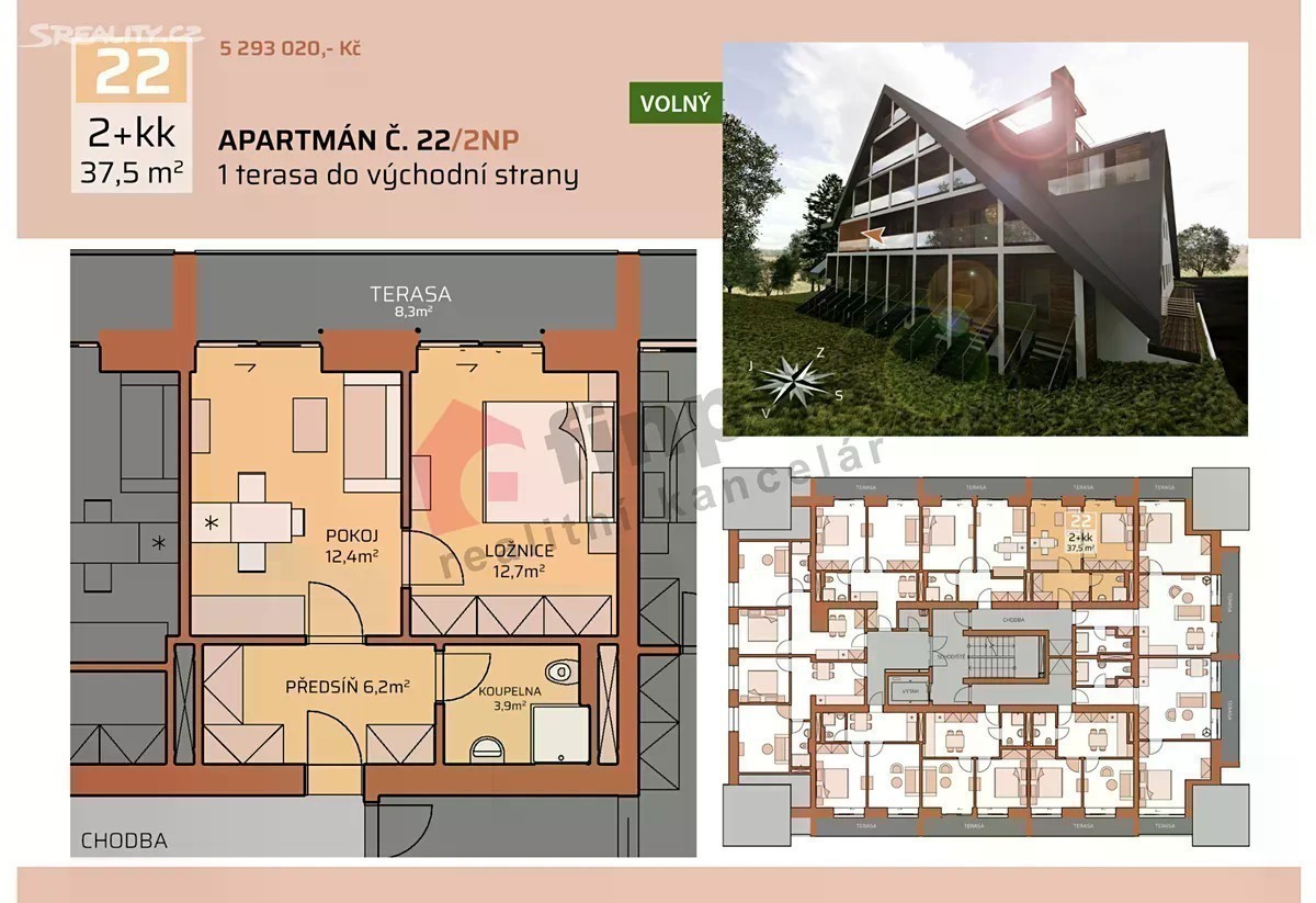 Hledáte výhodnou investici se zhodnocením cca 12% p.a.? Apartmán v Krkonoších, na čerstvém vzduchu, v obklopení přírody, kousek od lyžařského areálu, ideální k pronájmu skrze AIRBNB a zároveň se nechcete o nic starat? Pokud ano, tak mám pro Vás skvělou nabídku v podobě koupě horského moderního apartmánu, který splňuje veškeré nároky na pohodlné bydlení. Více informací a všechny volné apartmány najdete na stránce projektu "apartmanyorion". Apartmán o výměře 38 m2 je umístěn v 1.NP s bezbariérovým přístupem. Dispozičně je řešen 2 ložnicemi, sociálním zázemím a 2 krytými terasami (7 m2) s vlastním schodištěm do východní strany. K apartmánu také náleží sklepní kóje a parkovací stání. Apartmán je navržen ve vysokém standardu včetně moderních technologií. Vytápění je řešeno centrálním plynovým kotlem s možností regulace na dálku. Součástí koupě je také možnost využití relaxační a komfortně vybavené wellness se saunou, vířivkou a odpočinkovou zónou. Pár metrů od objektu se nachází hotel Star nebo hotel TOP, které nabízí možnost stravování a příjemného posezení. Objekt je umístěn v klidné lokalitě na okraji Krkonošského národního parku, pouhých 200 metrů od lyžařského střediska Benecko. Díky své jedinečné poloze se Benecko nachází po většinu roku nad úrovní smogového mraku a zaručuje tak spousty krásných slunečných dnů v roce a hlavně čistý horský vzduch. Objevte ideální místo pro celoroční vyžití a odpočinek v samém srdci jedinečného Krkonošského národního parku. Seznamte se s množstvím turistických zajímavostí, cyklotras, i kouzlem horské přírody a udělejte si dovolenou kdykoliv budete chtít. Deadline dokončení je plánovaný na duben 2026. V případě zájmu jsme Vám také schopni pomoc s financováním.