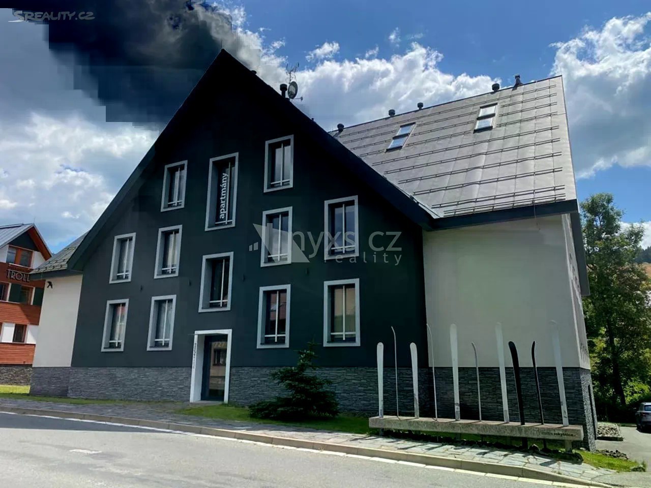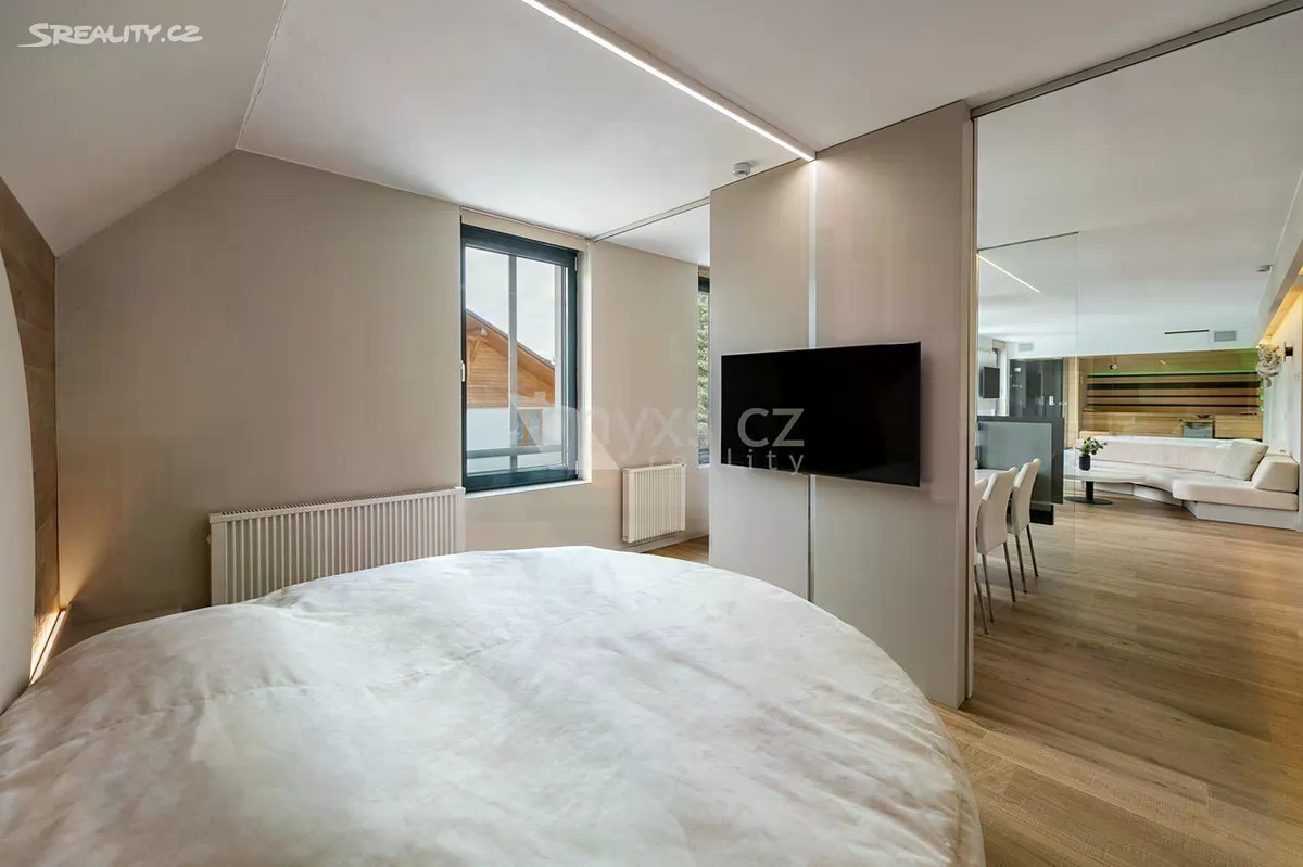 Nabízíme k prodeji luxusní apartmán 2+kk o velikosti 79 m2 s vlastním parkovacím stáním v domě apartmánového typu Studios Rokytnice, nacházejícího se v centru Rokytnice nad Jizerou. Apartmán se nachází ve 2. patře domu s výtahem. Dispozičně se jedná o otevřené studio s kuchyňským koutem, jídelnou uprostřed apartmánu, ložnicí v levé části, která se dá otevřít, nebo uzavřít posuvnými dveřmi a relaxační částí v opačném rohu místnosti, kde se nachází sauna, sprcha, vířivka a vodní postel. Koupelna s umyvadlem, WC a dalším sprchovým koutem se nachází v další místností za kuchyňkou. K vytápění jednotky slouží elektrické přímotopy a krbové kamna, ohřev vody zajišťuje bojler. K jednotce patří jedno parkovací stání v domě a prostorný sklep v přízemí domu. Volné ihned.