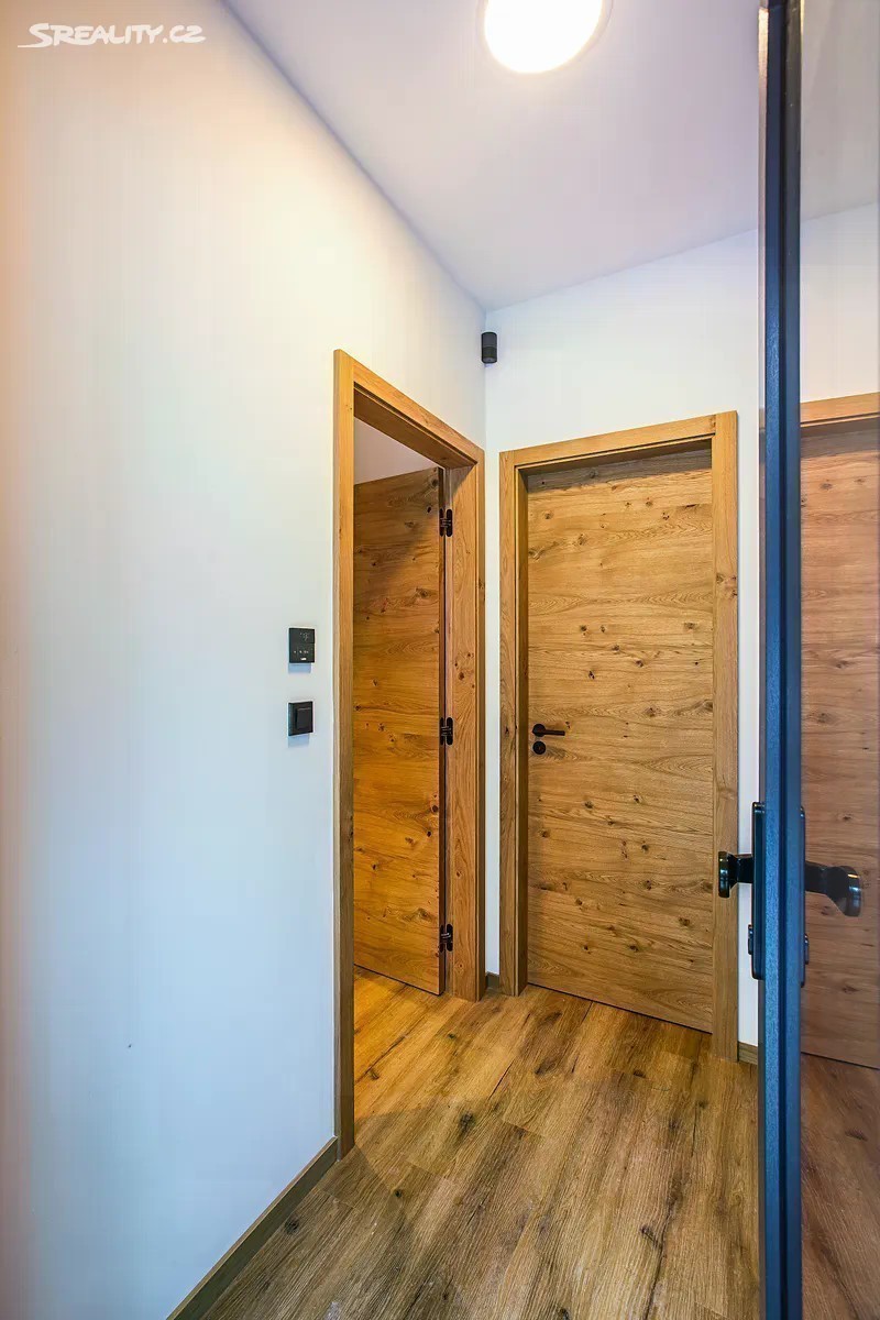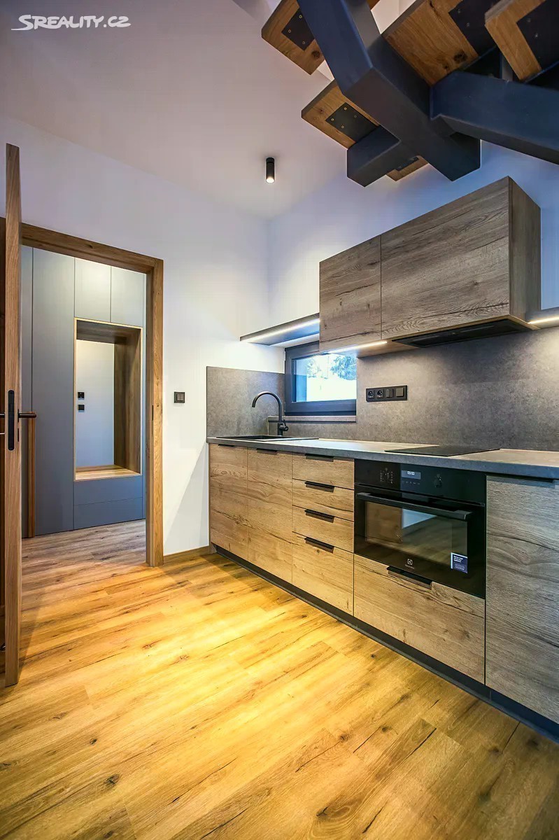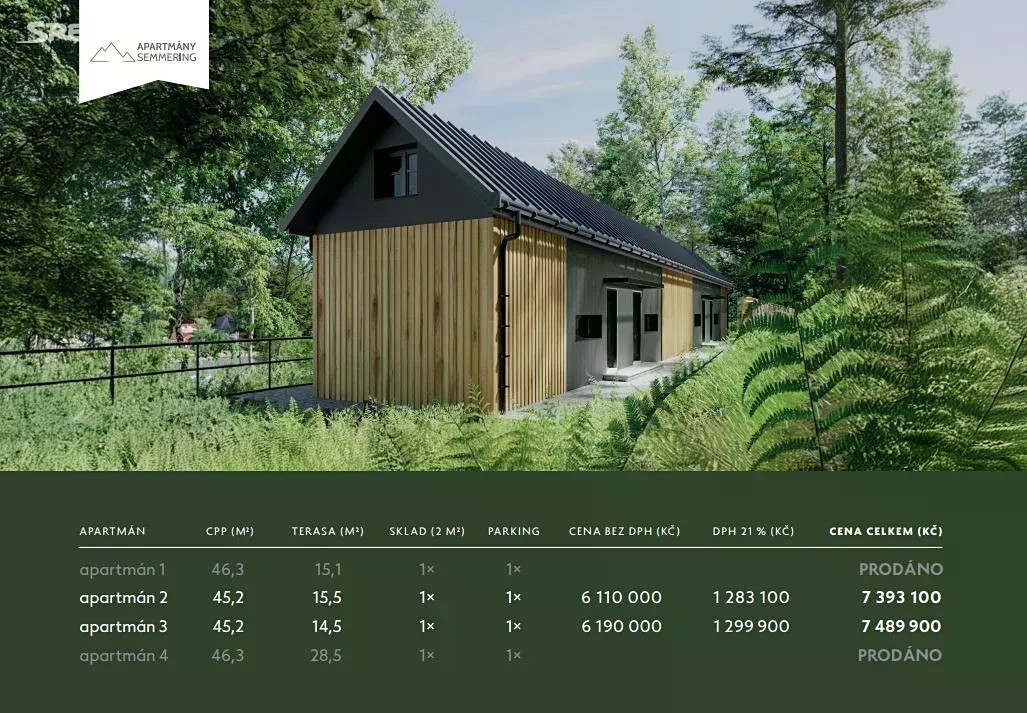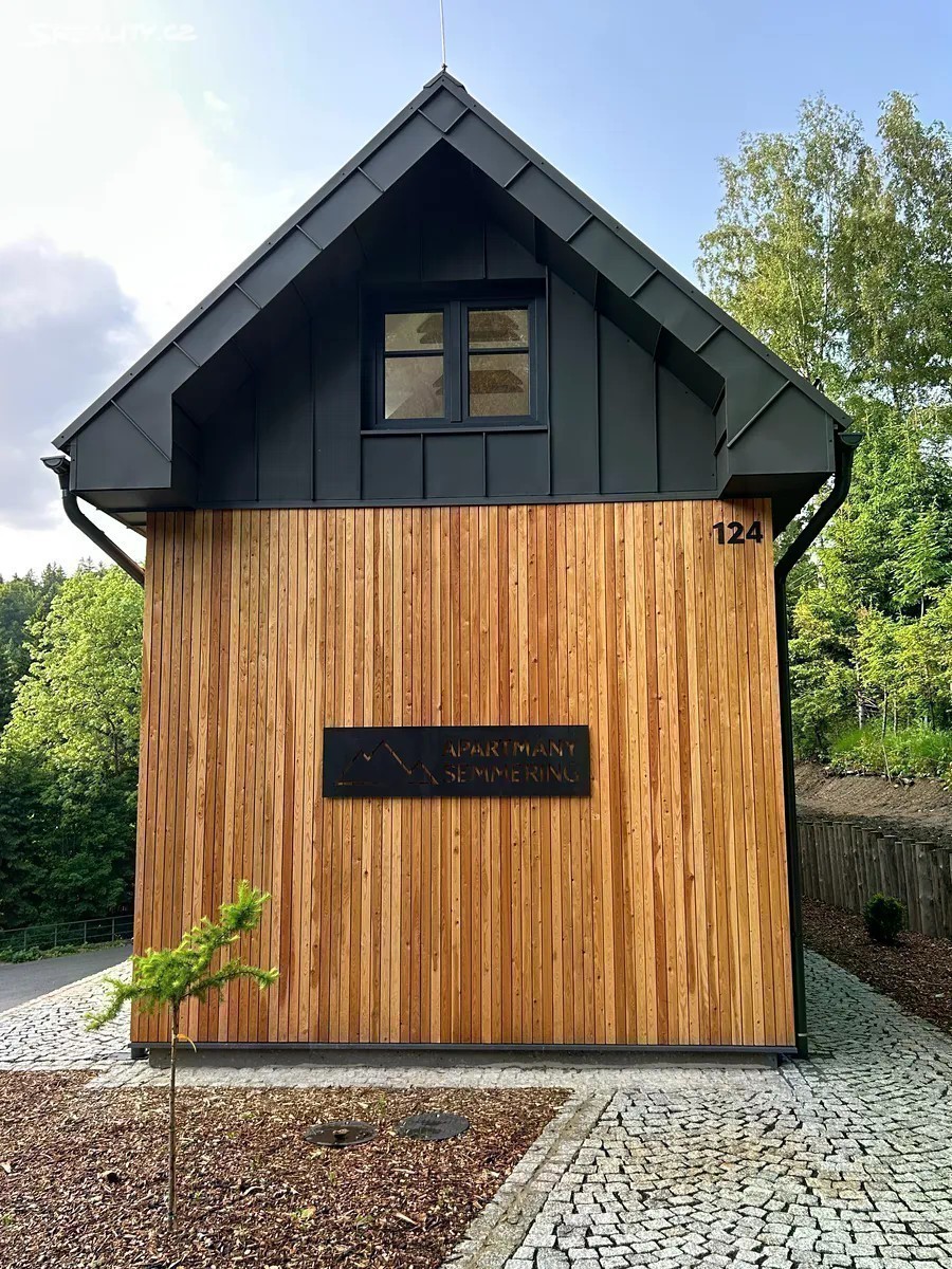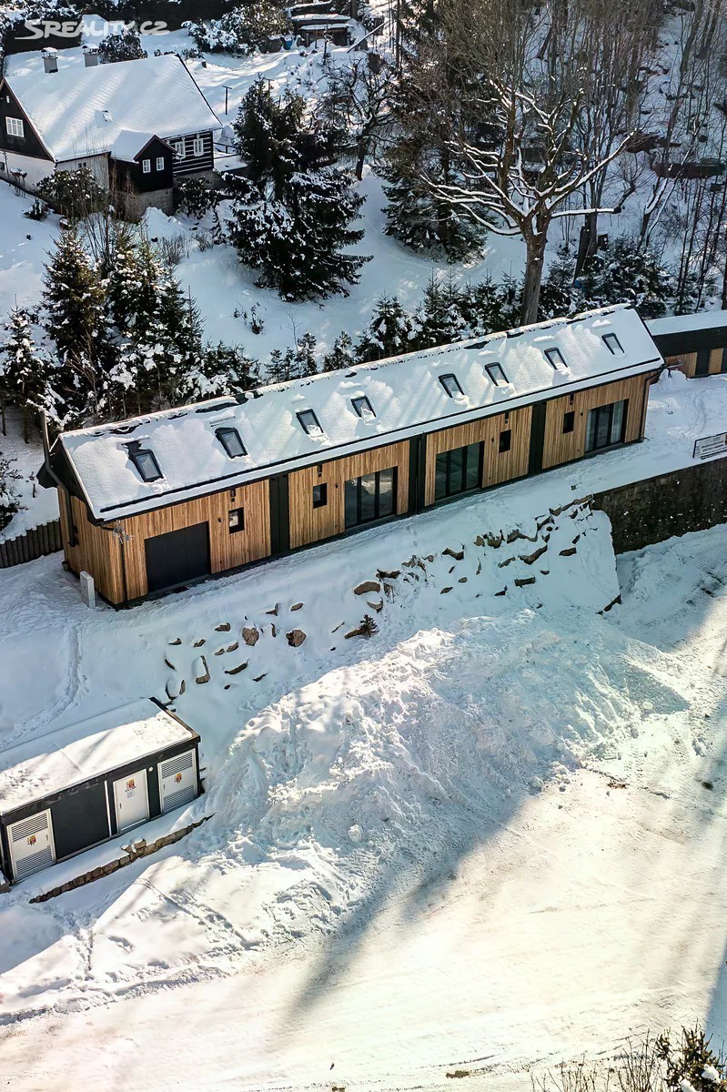 Apartmány Semmering Janov nad Nisou/ Hrabětice - komfortní mezonetové jednotky 3+kk s terasou a saunou Unikátní koncept řadových horských domků s nádherným výhledem na Janov a Bedřichov. 50% prodáno Exkluzivní projekt, pouze dva zbývající mezonetové apartmány o dispozici 3+kk s terasou a saunou, od 7,3 mil. Kč. Dokončeno, zkolaudováno. V ceně jednotky je dále samostatný skladovací/ úložný prostor a vyhrazené parkovací stání na vlastním pozemku. Napojeno na ČOV, vlastní nový vrt na vodu. Dřevostavba s fasádou z kanadského modřínu, střešní okna Velux, okna Vekra trojsklo, elektricky ovládané žaluzie. Podlahové vytápění s wi-fi termostatem, alarm Jablotron, kamerový systém. Armatury Hansgrohe, černá sanita, kvalitní italské obklady a dlažby. Objekt je umístěn v malebném prostředí Jizerských hor v nadmořské výšce 700 m přímo nad horským střediskem Janov nad Nisou v části zvané Malý Semerink. V blízkosti se nachází lyžařské středisko Hrabětice/ Severák (10 minut pěšky), kde naleznete 10 lyžařských vleků, sjezdovky jsou vhodné jak pro začátečníky, tak pro pokročilé lyžaře. Samozřejmostí jsou i půjčovny lyžařského vybavení, ski-servisy a lyžařská škola. Dalšími dosažitelnými středisky jsou Bedřichov, Josefův důl a Tanvaldský Špičák. V létě pak oceníte širokou nabídku půjčoven kol, elektrokol, koloběžek atd. Nedaleko od objektu se nachází lanový park Artur a bobová dráha. Možnost odpočtu DPH. S vyřízením hypotečního úvěru vám pomohou naši specialisté. Pro podrobnější informace ke standardům, cenám a ke sjednání prohlídky prosím kontaktujte makléře. Nejsme jen další realitní kancelář, jsme kouzlohor.cz ®