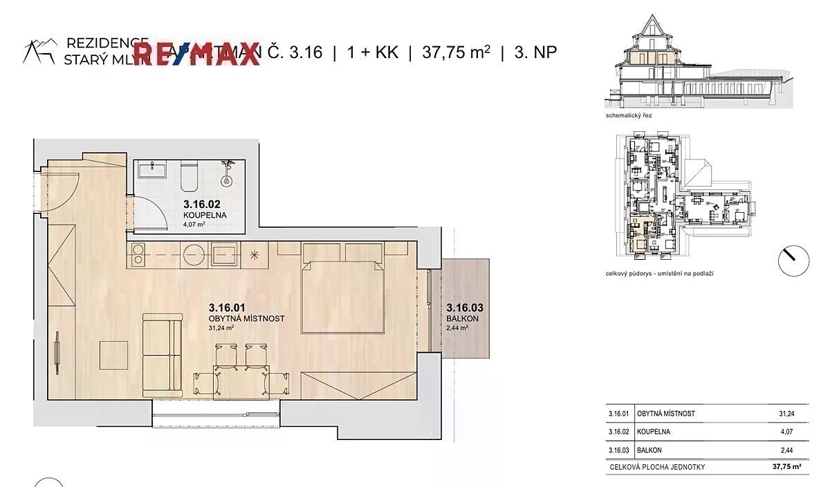 Rezidence Starý Mlýn nabízí exkluzivní horské apartmány v krásném a klidném prostředí Rokytnice nad Jizerou. Rezidence nabízí 19 moderních jednotek o dispozicích 1KK až 3KK s možností výběru balkonů či teras umožňující bezprostřední propojení s okolní krajinou a úchvatnými výhledy na panoramata hor. Naše apartmány nabízí styl, kvalitu a komfort s využitím moderních technologií. Ke každému apartmánu náleží vlastní uzamykatelná kolárna-lyžárna a parkovací stání. Komplex nabízí společné wellness (rezervační smart systém privátní sauny). Samozřejmostí je výtah. Prezentovaný apartmán č. 14 o dispozici 1+KK se nachází ve druhém patře (3 NP) a disponuje celkovou podlahovou plochou 37 m². K jednotce náleží balkon o velikosti 2,5m², který umožňuje relaxaci s výhledem na okolní přírodu. K apartmánu náleží privátní uzamykatelná kolárna + lyžárna, možnost využívat společného wellness. Cena za apartmán je uváděna včetně parkovacího stání (v hodnotě 400tis Kč) a DPH s možností odpočtu ve výši 21%. Aktuálně nabízíme voucher na kuchyňskou linku v hodnotě 100 tis Kč. Stavba byla již zahájena a plánované dokončení je do konce roku 2026. Lyžařské areály jsou dosažitelné během několika minut, turistické a cyklotrasy začínající přímo před vašim apartmánem. Dostupnost z Prahy je cca 1,5 hodiny a z Liberce je cca 1hodinu. Celoroční provoz zajišťuje stálý výnos i maximální využitelnost pro vás nebo vaše hosty. V případě potřeby zajistíme také profesionální financování nákupu nemovitosti. Kompletní přehled k apartmánům naleznete na rezidencestarymlyn Pro více informací a domluvení prohlídky mě kdykoliv kontaktujte.