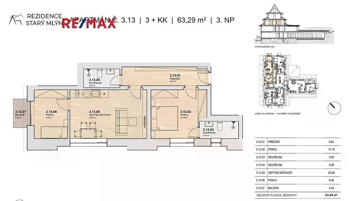 Rezidence Starý Mlýn nabízí exkluzivní horské apartmány v krásném a klidném prostředí Rokytnice nad Jizerou. Rezidence nabízí 19 moderních jednotek o dispozicích 1KK až 3KK s možností výběru balkonů či teras umožňující bezprostřední propojení s okolní krajinou a úchvatnými výhledy na panoramata hor. Naše apartmány nabízí styl, kvalitu a komfort s využitím moderních technologií. Ke každému apartmánu náleží vlastní uzamykatelná kolárna-lyžárna a parkovací stání. Komplex nabízí společné wellness (rezervační smart systém privátní sauny). Samozřejmostí je výtah. Prezentovaný apartmán č. 13 o dispozici 3+KK se nachází ve druhém patře (3 NP) a disponuje celkovou podlahovou plochou 63,6 m². Jednotku tvoří prostorný obývací pokoj s kuchyňskou linkou, samostatný pokoj, samostatná ložnice s balkonem, prostorná předsíň a dále dvě samostatné koupelny. K jednotce náleží balkon o velikosti 2,44 m2, který umožňuje relaxaci s výhledem na okolní přírodu. K jednotce náleží náleží privátní uzamykatelná kolárna + lyžárna, parkovací stání a možnost využívat společného wellness. Cena za apartmán je uváděna včetně parkovacího stání (v hodnotě 400tis Kč) a DPH s možností odpočtu ve výši 21%. Aktuálně nabízíme k tomuto apartmánu voucher na kuchyňskou linku v hodnotě 200 tis Kč. Stavba byla již zahájena a plánované dokončení je v počátku roku 2027. Sjezdovky jsou dosažitelné během několika minut, turistické a cyklotrasy začínající přímo před vašim apartmánem. Dostupnost z Prahy je cca 1,5 hodiny a z Liberce je cca 1hodinu. Celoroční provoz zajišťuje stálý výnos i maximální využitelnost pro vás nebo vaše hosty. V případě potřeby zajistíme také profesionální financování nákupu nemovitosti. Pro více informací a domluvení prohlídky mě kdykoliv kontaktujte.