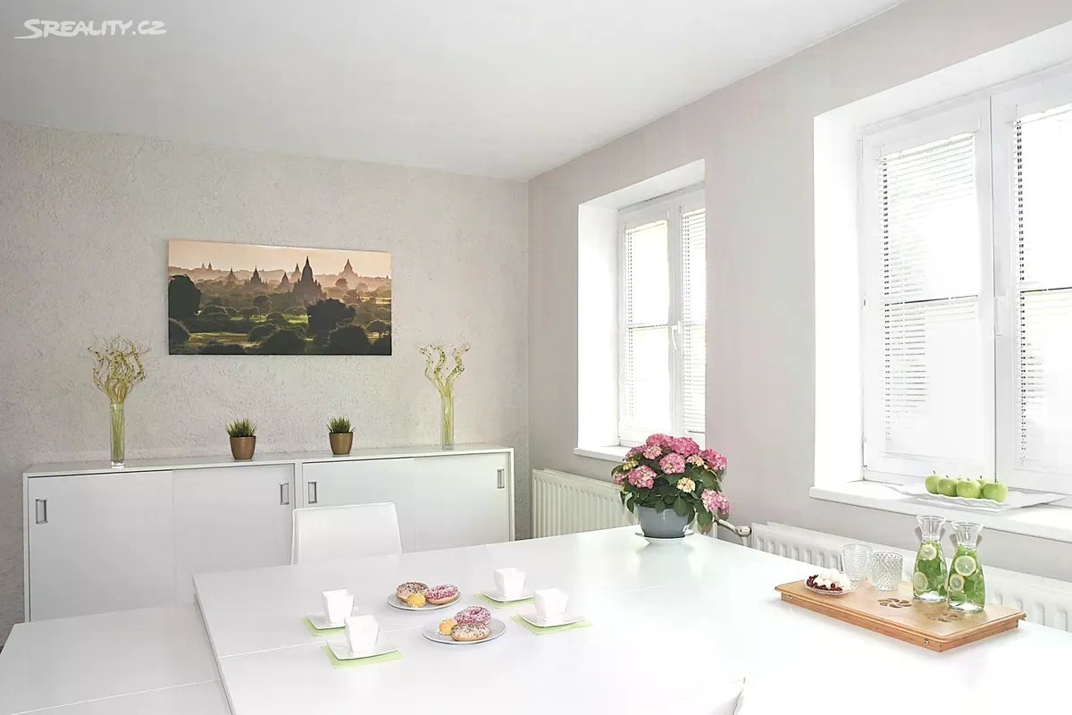 Nabízíme k prodeji byt 4+1 o velikosti 90 m2 v oblíbené lokalitě Králův háj v blízkosti liberecké přehrady i centra města. Praktická dispozice bytu poskytuje dostatek prostoru pro pohodlné rodinné bydlení. Všechny místností mají samostatný vstup z centrální chodby, dva největší pokoje jsou pak navíc propojeny posuvnými dveřmi. Tyto pokoje jsou orientovány na jižní stranu, ložnice a pracovna pak nabízejí výhled do klidné zeleně přilehlého lesoparku. Byt prošel v uplynulých letech postupnou rekonstrukcí (plastová okna, plovoucí podlahy, sádrokartonové stropy, interiérové dveře, koupelna). Kuchyň je vybavena novými spotřebiči Whirlpool (indukční deska, horkovzdušná trouba, digestoř, myčka) a lednicí s mrazákem Liebherr. Koupelna s rohovou vanou a toaletou je zařízena nábytkem Naturel. Vestavná skříň v ložnici poskytuje dostatek úložného prostoru, v celém bytě jsou nainstalována nová LED svítidla. Vytápění a ohřev vody je zajištěn vlastním plynovým kotlem. K bytu náleží 3 sklepní místnosti o celkové ploše 40 m2, které mohou být využity jako prostor pro fitness, hobby dílnu, úschovnu kol, lyží, apod. Velkou výhodou je možnost parkování přímo na pozemku u domu, parkování na ulici před domem je také možné. Byt je v atraktivní a klidné části města s veškerou občanskou vybaveností. K dispozici ihned. Bližší informace u makléře. ET-G.
