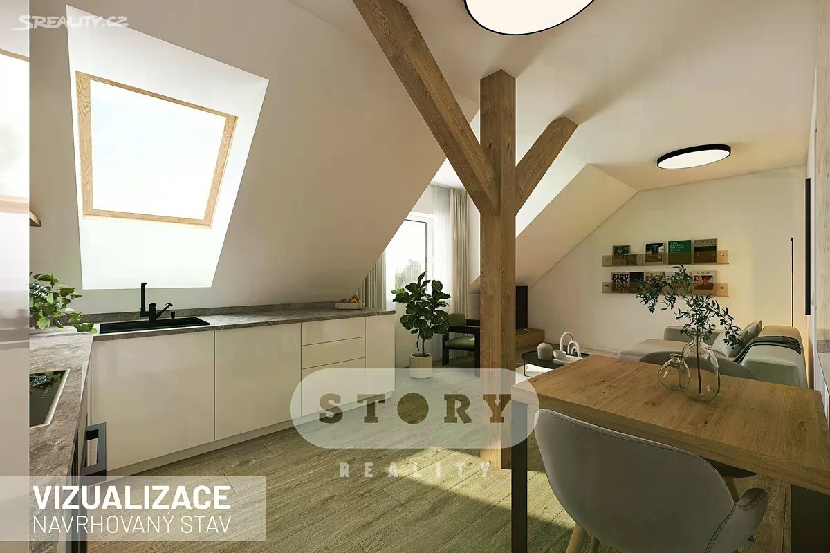 Nabízíme vám k prodeji podkrovní byt 2kk. Bytová jednotka je aktuálně v procesu výstavby. Dokončené práce k 11/2025: nové schody, okna, střešní a stropní konstrukce ze dřeva, ocelové profily a sádrokartonové příčky, podhledy, izolace, rozvody vody a odpadu, podlahové vytápění, finální betonový potěr. Nejzazší termín dokončení projektu (elektroinstalace, opláštění SDK deskami, obklady, dlažby a instalace v koupelně, vinylová podlaha, výmalba) je březen 2026. Byt je naprojektován tak, aby splňoval vyšší standard ve své kategorii. Budoucí majitel získá dokončenou bytovou jednotku bez kuchyňské linky. Zdrojem pro teplovodní podlahové vytápění i ohřev TUV bude tepelné čerpadlo s vnitřní jednotkou a externím ohřívačem vody. Byt bude spadat do energetické třídy B - velmi úsporná. V zařízené koupelně bude k dispozici vana i sprchový kout. Okna jsou zde střešní (koupelna a kuchyně) a vikýře v obou obytných místnostech. V domě bude příprava na fotovoltaiku pro případné využití v budoucnu. Byty budujeme v jednoduchém a čistém stylu a budou splňovat veškeré nároky na moderní a kvalitní bydlení. V domě vznikají 4 nové bytové jednotky. Ke každé bytové jednotce bude k užívání vyčleněný podíl na zahradě za domem o výměře cca 20 m2 a také společný prostor pro uložení např. jízdních kol atd. Šternberk je město s veškerou občanskou vybaveností, (nemocnice, obchody, supermarkety, restaurace, úřady, lékaři, mateřská škola, základní škola, gymnázium, pošta, sportoviště atd. Dům se nachází blízko centra města. Více informací v RK.