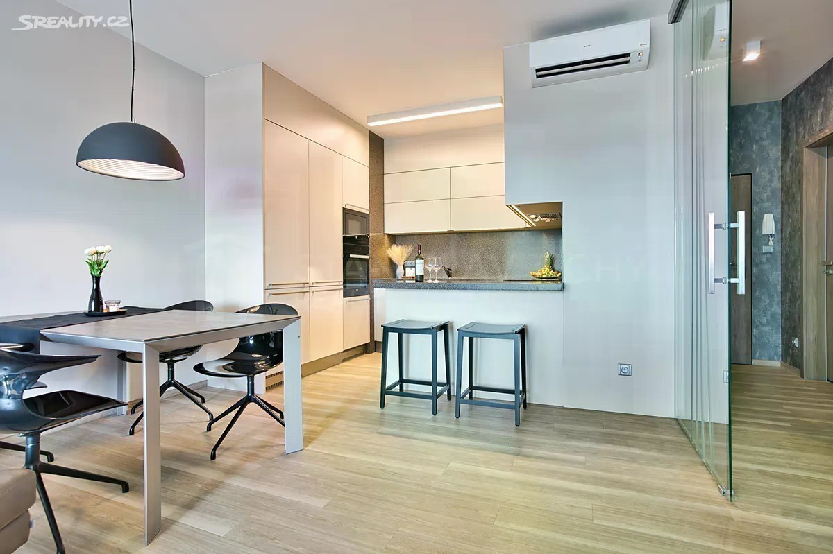Exkluzivní byt 2 + kk je situovaný v pátém nadzemním podlaží moderní cihlové budovy v prestižní lokalitě Olomouce, na Rokycanově ulici. Tento jedinečný byt je ideální volbou pro ty, kteří hledají eleganci a komfort v srdci města. Byt je ve výborném stavu a interiér je kompletně zařízen pečlivě vybraným exkluzivním nábytkem, který dokonale využívá dostupný prostor a zvyšuje estetickou hodnotu interiéru. Otevřený prostor obývacího pokoje kombinuje funkčnost s moderním designem. Moderní kuchyň, vyrobená na míru, poskytuje dostatek úložného prostoru pro vše potřebné a je kompletně zařízena nejen vestavnými spotřebiči, ale také veškerým potřebným vybavením pro pohodlné vaření i stolování. Díky velkým proskleným plochám je byt pěkně krásně prosvětlený a vzdušný. Pocit otevřenosti a elegance umocňuje i prosklená posuvná stěna, stylově oddělující jednotlivé zóny obytného prostoru. Byt je vybaven řízeným větráním s rekuperací, které udržuje příjemné a zdravé vnitřní klima a šetří náklady na vytápění. Klimatizace pak udržuje optimální teplotu během letních měsíců, takže komfort bydlení je zajištěný po celý rok. Útulná ložnice nabízí nejen útočiště pro odpočinek a relaxaci, ale i místo pro stylový psací stůl. Koupelna je zařízena v moderním stylu s kvalitními materiály, designovými prvky a ambientním osvětlením. Celkový komfort a soukromí zvyšují i elektricky ovládané venkovní žaluzie, poskytující ochranu před slunečními paprsky a možnost regulace přirozeného osvětlení interiéru. Jednou z největších předností této nemovitosti je částečně krytá střešní terasa, která nabízí dech beroucí výhled na město i když na ni odnikud není vidět. Poskytuje tak venkovní prostor s naprostým soukromím, ideální pro relaxaci nebo příjemné posezení s rodinou a přáteli. Celá budova se pyšní energetickým štítkem B - velmi úsporná, což garantuje velmi příznivé ekonomické náklady na vytápění a nízké měsíční platby s tím spojené. K bytu náleží vlastní garážové stání přímo v suterénu budovy, poskytující maximální komfort a ochranu vašeho vozidla. Zájemci z řad podnikatelů také ocení možnost odpočtu DPH, což atraktivitu této zajímavé investice ještě zvyšuje. Tato nemovitost představuje ideální investici pro nadstandardní bydlení na lukrativní adrese, které se stane synonymem vašeho životního stylu. Zároveň je i zajímavou příležitostí pro podnikatele, kteří hledají neformální reprezentativní prostory s naprostým soukromím v blízkosti centra krajského města. Nečekejte na další příležitosti, zavolejte a přijďte se podívat osobně.