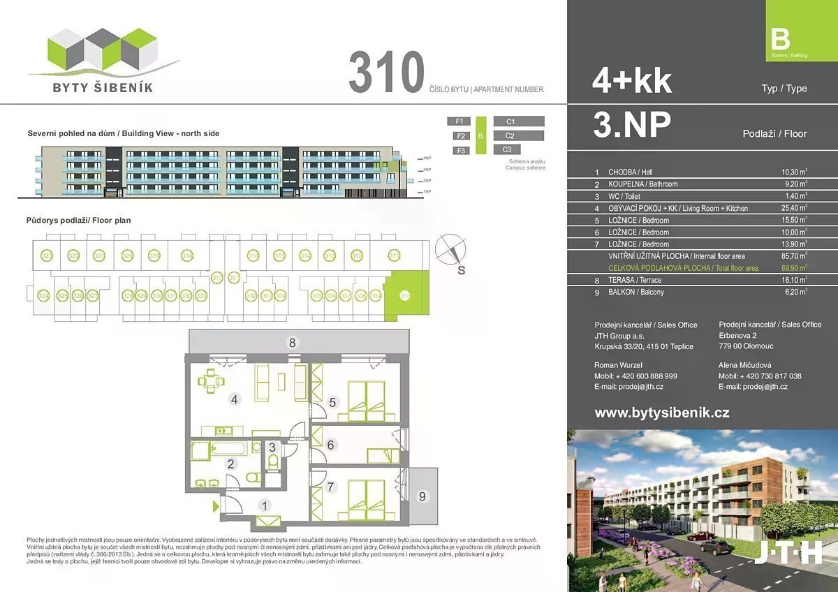 Navazujeme na dokončenou první etapu a v druhé etapě stavíme dva nové bytové domy. Byty budou dokončeny do konce roku 2025 a k předání/ nastěhování začátkem roku 2026. Projekt Šibeník II nabízí byty s dispozičním řešením 2+kk až 4+kk. Koncepce nízkopodlažních bytových domů je architektonicky řešena tak, aby svým obyvatelům poskytla zázemí pro rodinný život a zároveň plnila požadavek nadčasovosti, elegance, funkčnosti a vysokého komfortu. Nabízíme výhodné platební podmínky - po celou dobu výstavby vám stačí uhradit pouze 20% z ceny bytu a doplatek kupní ceny počká až po dokončení stavby a kolaudaci. Smluvně dohodnuté ceny garantujeme. Kontaktujte nás a pomůžeme Vám s výběrem! Šibeník je ideální adresa odkud máte všude blízko. Lokalita mezi ulicemi Na Šibeníku, tř. Míru a tř. Jiřího Pelikána je umístěna v širším centru Olomouce s výborným dopravním spojením MHD i napojením mimo město na Brno a Mohelnici. Pěšky lze využít procházku městskými parky na náměstí za kulturou. Školy, školky, lékařská péče i obchody jsou v bezprostřední blízkosti.