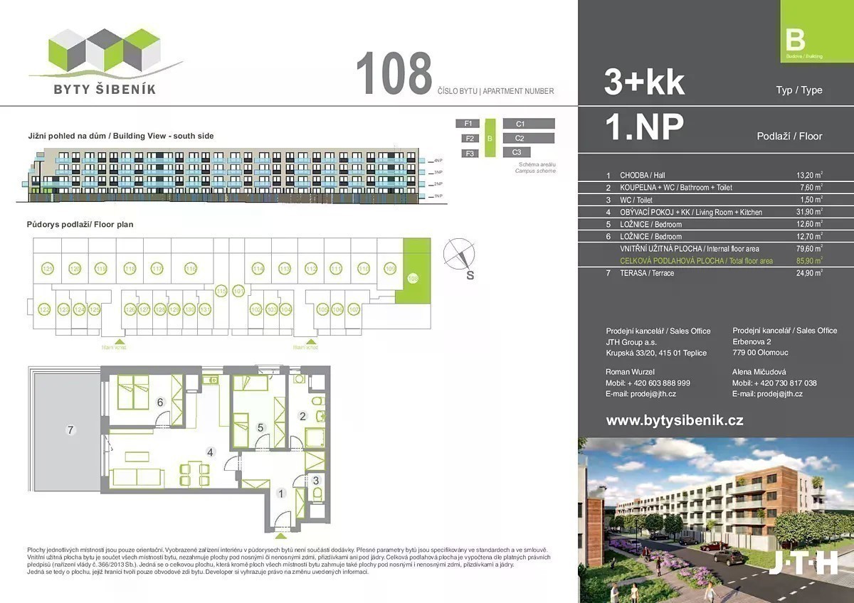 Ideální místo pro příjemné a pohodlné bydlení v Olomouci Nové Byty Šibeník navazují na úspěšnou první etapu výstavby bytových domů, která vznikla v městské části Olomouce - Nová Ulice na ulici tř. Jiřího Pelikána. V letech 2019-2021 byly v této lokalitě mezi ulicemi Na Šibeníku a tř. Míru dokončeny tři bytové domy. Na Šibeníku vyroste čtveřice elegantních bytových domů F1, F2, F3 a B, které jsou architektonicky řešeny tak, aby svým obyvatelům poskytly zázemí pro klidný rodinný život a zároveň plnily požadavek nadčasovosti, elegance, fuknčnosti a vysokého komfortu. Prostorný byt 3+kk o rozloze 86 m2 nabídne svému majiteli chodbu, dvě ložnice, obývací pokoj o velikosti 32 m2 a krásnou terasu s výměrou 25 m2.