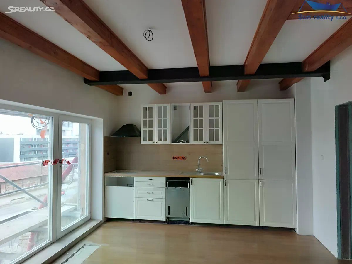 Prodej unikátního mezonetového bytu ve 4 NP v půdní vestavbě prvorepublikového měšťanského domu, který je aktuálně v celkové rekonstrukci. Interiér je provázán prvky dřeva, kovu. Mezonetové uspořádání nabízí prostorově vzdušné a netradiční bydlení. Podlahová plocha je 81 m2 + 40 m2 v mezonetové části. Byt je dispozicí 2+kk, přičemž lze stavebně technicky upravit na 3 + kk. V přízemní části bytu je obytný prostor s kuchyňskou částí, pokoj, koupelna s vanou, WC. V mezonetové části je také umístěno WC. Z obytné kuchyně je vstup na privátní balkon do vnitrobloku o výměře 12 m2. Vytápění je podlahové. Dům je ve finální fázi rekonstrukce a v nabízeném bytě lze parciálně dofinalizovat dle přání majitele. Současně při požadavku na více prostoru, lze byt propojit se sousední jednotkou. V případě zájmu bližší informace při prohlídce prostor.