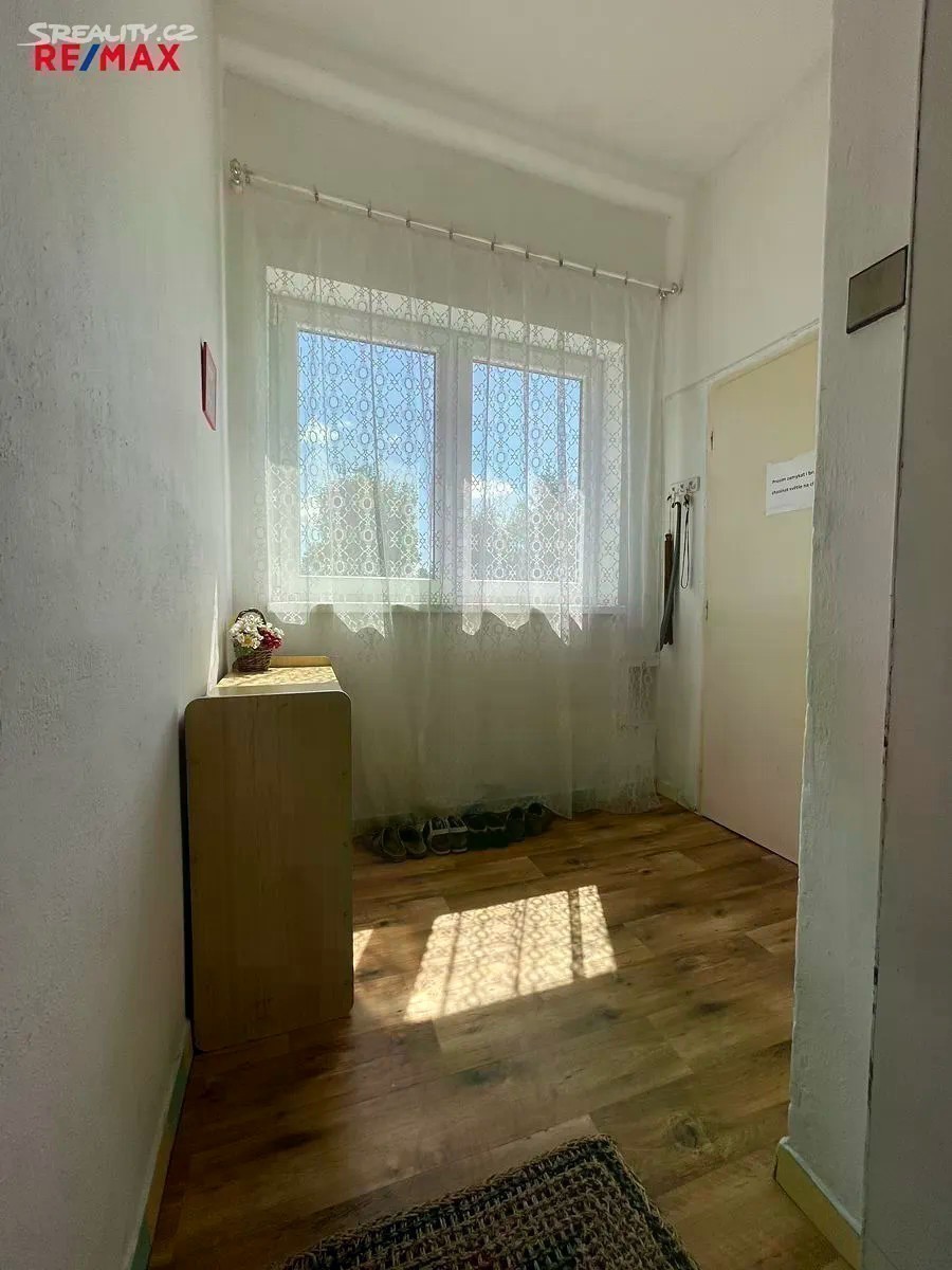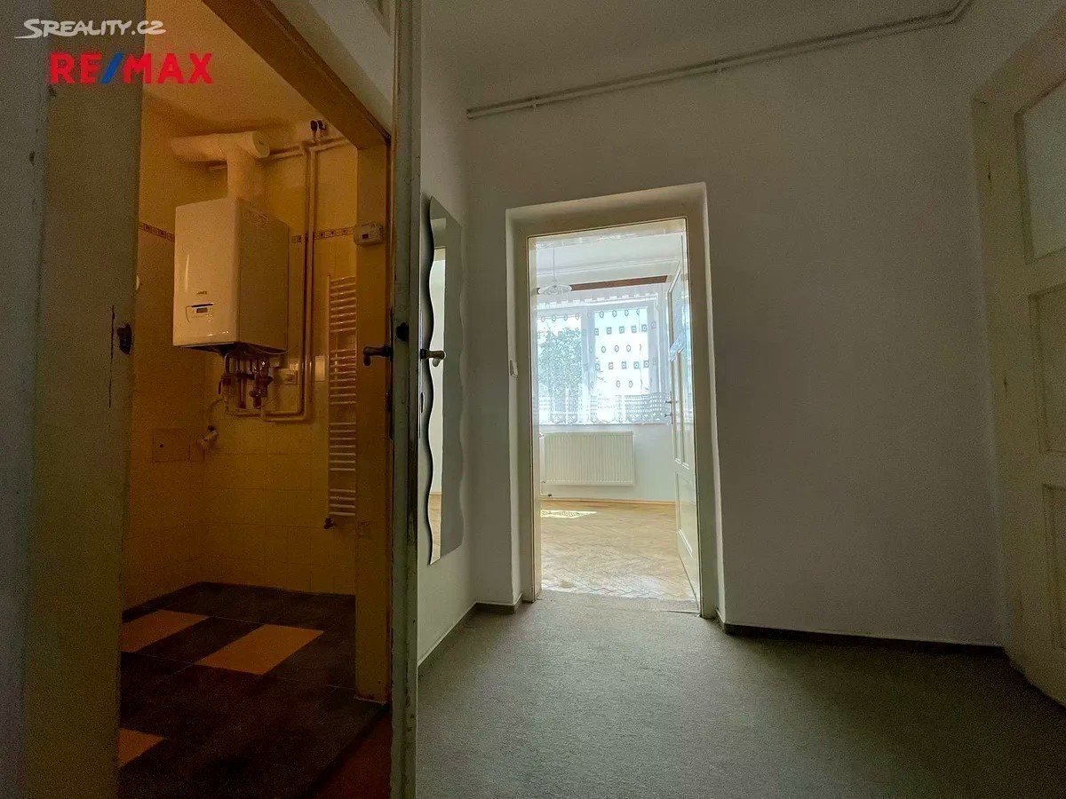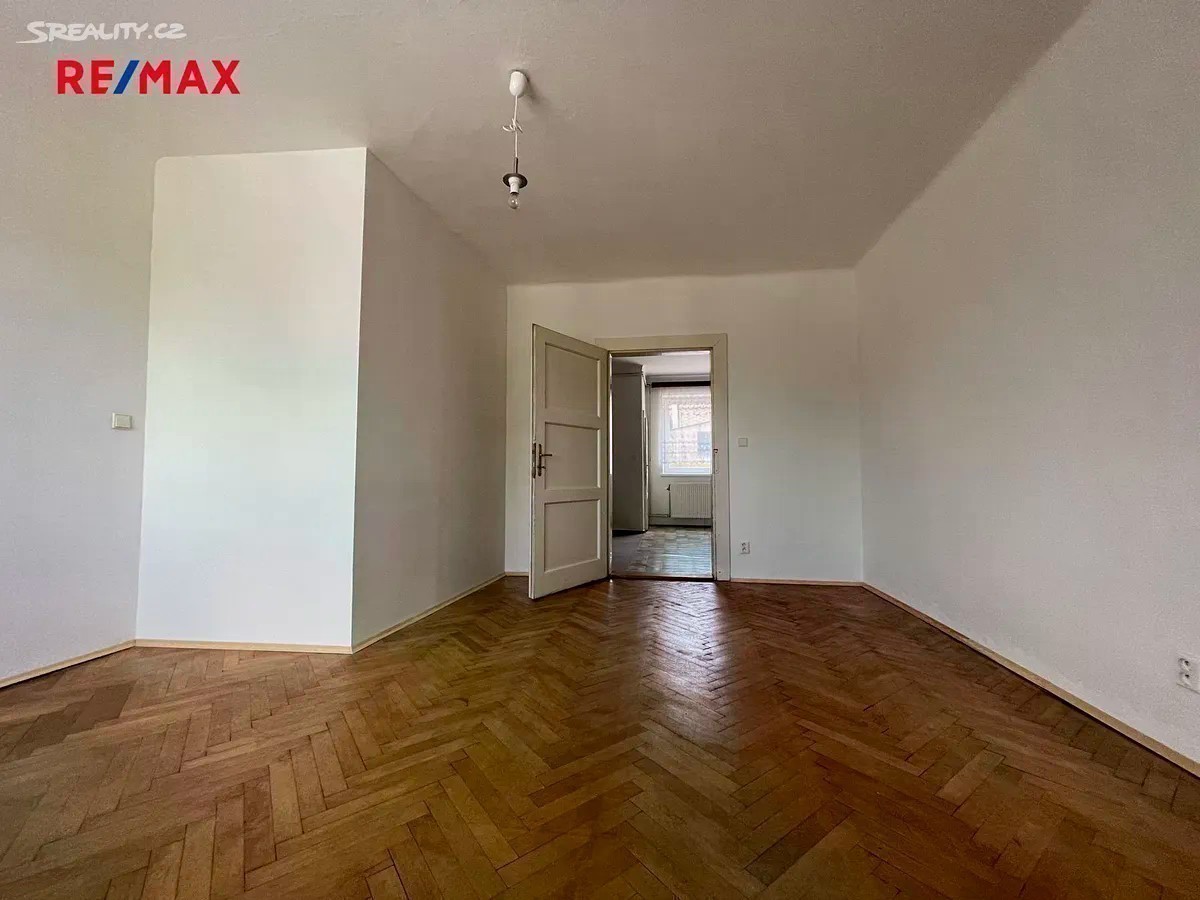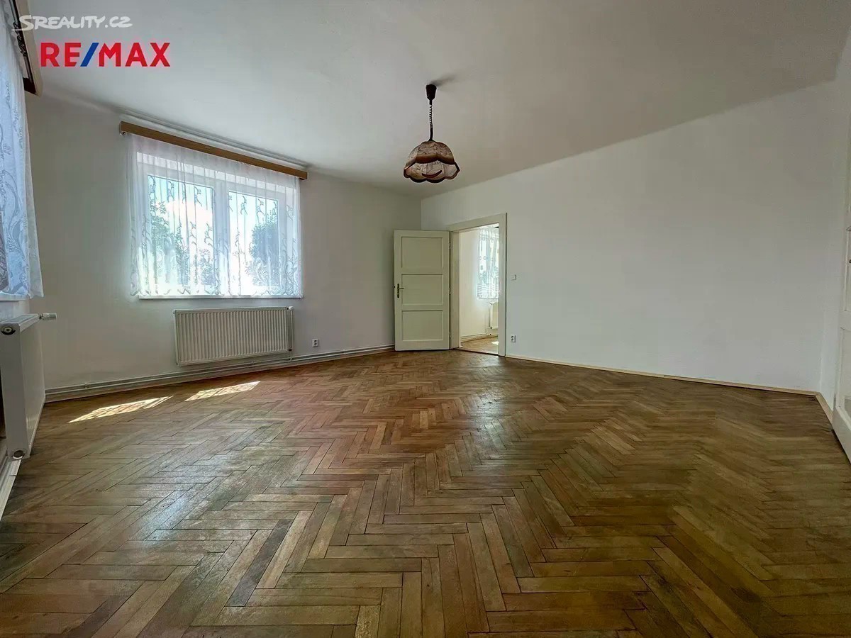 Hledáte bydlení v klidné lokalitě se zahradou, dostatečným parkováním u domu a blízkou vzdáleností na MHD? Tato nabídka prodeje bytu 3+1 o rozloze cca 82 m² v 1.NP Vás jistě zaujme! Exkluzivně nabízíme prodej spoluvlastnického podílu ve výši 1/2 na RD, který zahrnuje byt 3+1 (82 m²) v 1.NP, vlastní garáž, společné užívání zahrady a dvorku (cca 105 m²), společné půdní a sklepní prostory. Na pozemek RD se vstupuje brankou na zahradu s dvorkem či z druhé strany vjezdem ke garáži (20 m² z roku 2016). Při vstupu do domu se nacházíte na společné chodbě, odkud vedou vstupy do předmětného bytu, sklepních prostor či schody do patra, kde se nachází balkón ve společném užívání a dále lze pokračovat do půdních prostor. V předmětném bytě rekonstruovaném v roce 2005 (elektřina, voda, odpady) se nachází vstupní předsíň (4,7 m²), 3 neprůchozí pokoje (24 m²; 18,5 m²; 10,7 m²), kuchyň (13 m²) se spíží (1 m²) a průchodem do jednoho z pokojů (2,4 m²), koupelna (4,2 m²) s vanou (stáří 2 roky) a samostatné WC (1 m²). V bytě jsou plastová okna z roku 2016. Dům je napojen na obecní vodovod, kanalizaci, el. a plyn. Elektřina v bytě je v mědi. Krytina střechy je pokryta eternitem. Byt má zajištěný ohřev tepla i vody plynovým kombinovaným kotlem umístěným v koupelně bytu. Podlaha obytných pokojů je pokryta parketami, v kuchyni je kombinace PVC a koberce, v koupelně a WC je dlažba, ve vstupní předsíni je koberec. Nemovitost bude v budoucnu vyžadovat rekonstrukci střechy a hydroizolaci domu. Zajistíme Vám konzultaci možné koupě této nemovitosti - bezplatně s našim finančním poradcem. Více fotografií na stránkách RE/MAX. Bližší informace u makléře nabídky.