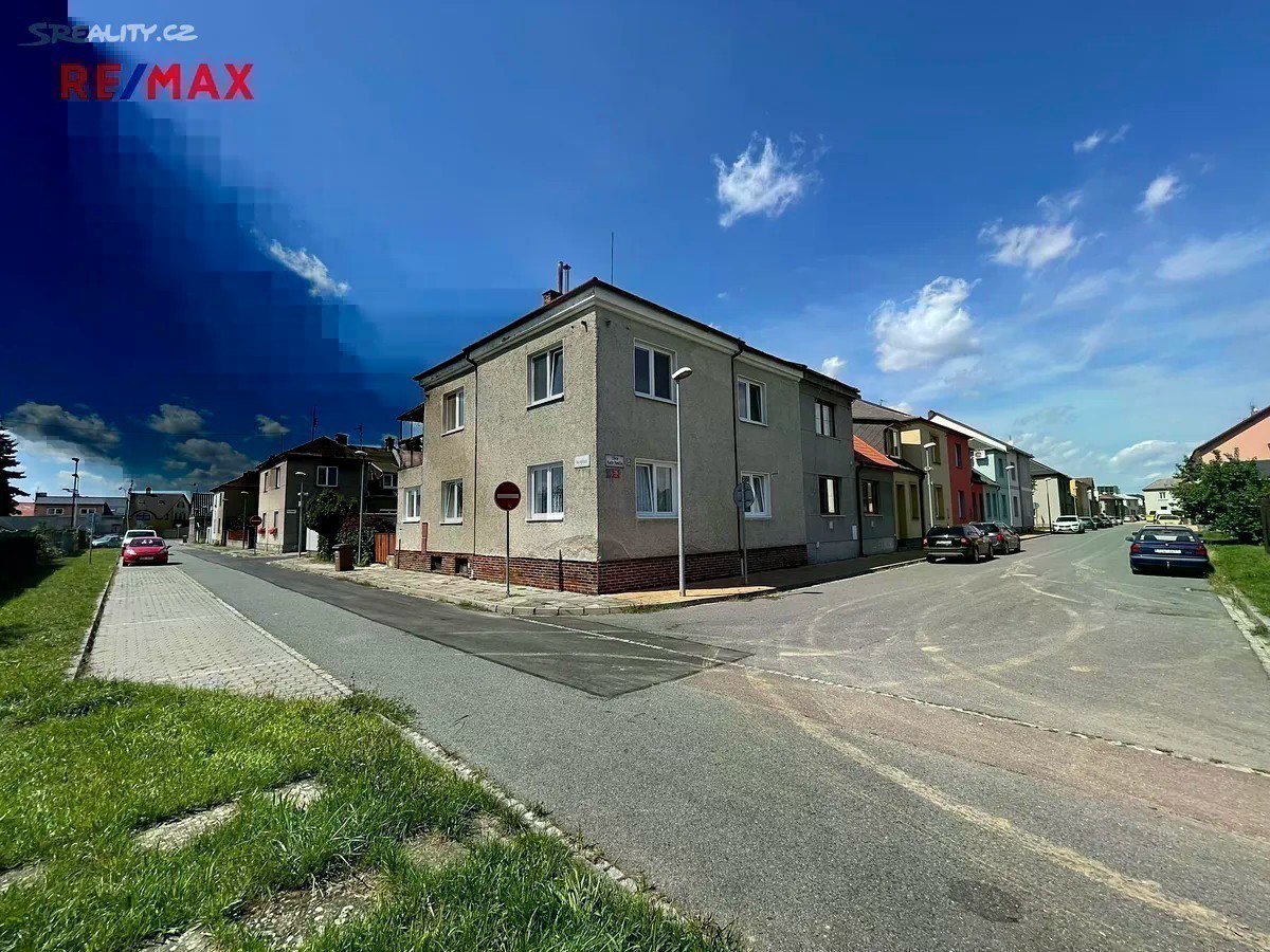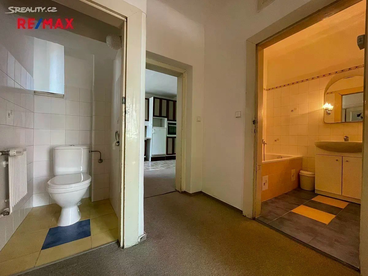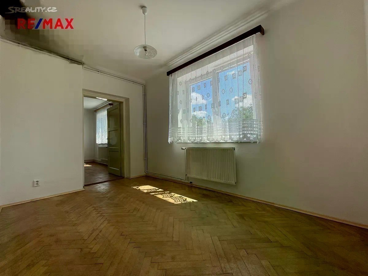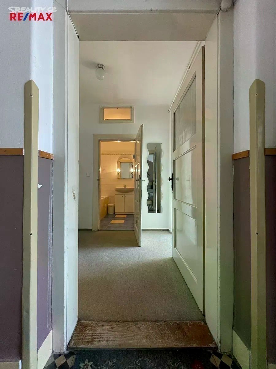 Hledáte bydlení v klidné lokalitě se zahradou, dostatečným parkováním u domu a blízkou vzdáleností na MHD? Tato nabídka prodeje bytu 3+1 o rozloze cca 82 m² v 1.NP Vás jistě zaujme! Exkluzivně nabízíme prodej spoluvlastnického podílu ve výši 1/2 na RD, který zahrnuje byt 3+1 (82 m²) v 1.NP, vlastní garáž, společné užívání zahrady a dvorku (cca 105 m²), společné půdní a sklepní prostory. Na pozemek RD se vstupuje brankou na zahradu s dvorkem či z druhé strany vjezdem ke garáži (20 m² z roku 2016). Při vstupu do domu se nacházíte na společné chodbě, odkud vedou vstupy do předmětného bytu, sklepních prostor či schody do patra, kde se nachází balkón ve společném užívání a dále lze pokračovat do půdních prostor. V předmětném bytě rekonstruovaném v roce 2005 (elektřina, voda, odpady) se nachází vstupní předsíň (4,7 m²), 3 neprůchozí pokoje (24 m²; 18,5 m²; 10,7 m²), kuchyň (13 m²) se spíží (1 m²) a průchodem do jednoho z pokojů (2,4 m²), koupelna (4,2 m²) s vanou (stáří 2 roky) a samostatné WC (1 m²). V bytě jsou plastová okna z roku 2016. Dům je napojen na obecní vodovod, kanalizaci, el. a plyn. Elektřina v bytě je v mědi. Krytina střechy je pokryta eternitem. Byt má zajištěný ohřev tepla i vody plynovým kombinovaným kotlem umístěným v koupelně bytu. Podlaha obytných pokojů je pokryta parketami, v kuchyni je kombinace PVC a koberce, v koupelně a WC je dlažba, ve vstupní předsíni je koberec. Nemovitost bude v budoucnu vyžadovat rekonstrukci střechy a hydroizolaci domu. Zajistíme Vám konzultaci možné koupě této nemovitosti - bezplatně s našim finančním poradcem. Více fotografií na stránkách RE/MAX. Bližší informace u makléře nabídky.