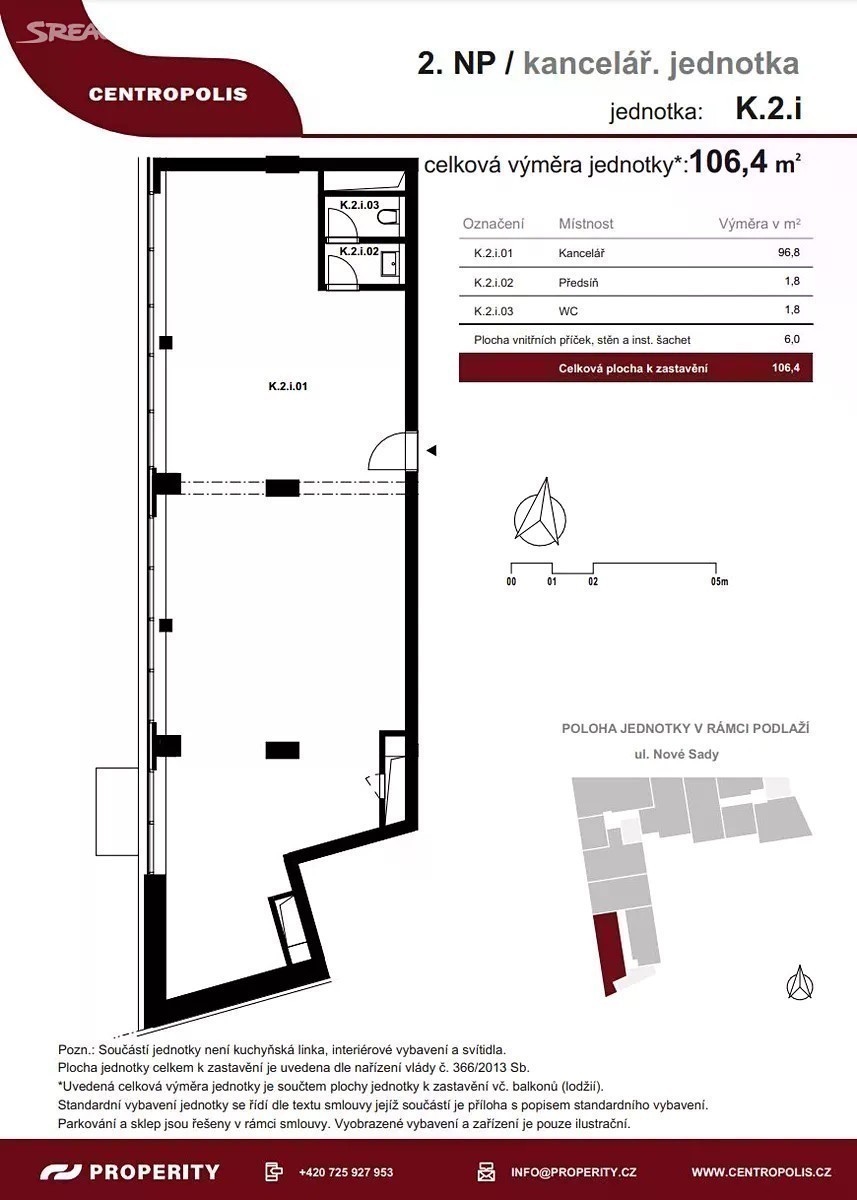 Nabízíme Vám komerční jednotku K2A v 2.NP projektu CENTROPOLIS v samém centru Brna. Jednotky ve 2.NP jsou projektovány jako kanceláře. Komplex CENTROPOLIS je nárožní dominanta nově vznikajícího bloku přímo v srdci města Brna, na ulici Nové sady. Bydlení v prestižní lokalitě s výhledem na katedrálu sv. Petra a Pavla, perfektní dostupnost služeb, pracovních příležitostí, kultury i zábavy v docházkové vzdálenosti. To vše ve smyslu svého názvu nabízí komplex CENTROPOLIS. Součástí moderní a architektonicky elegantní stavby určené pro bydlení a podnikání je i částečně uzavřený vnitroblok sloužící k odpočinku či setkávání. Projekt je zkolaudován. Více informací najdete na webu developerské společnosti PROPERITY.