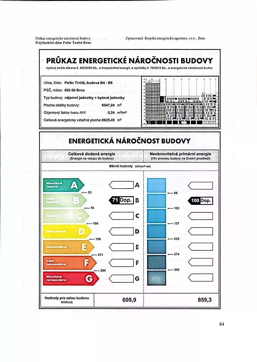 Vyjímečný luxusní komerční prostor v novém centru Brna, v Budoucím "Zlatém kříží". Nejžádanější rohová dispozice. Viditelná z budoucího bulváru, městské hlavní tepny. V těsném sousedství obchodního centra Vaňkovka a komplexu Vlněna. Maximální přirozené denní prosvětlení výkladci ( výška stropu 3,20-4,00m ). Bezproblémové parkování klientů. Křižovatka infrastruktur: rychle přístupné výpadovky na všechny dálnice, pár kroků autobusové a vlakové nádraží, tramvaj, trolejbus. Fakultní nemocnice, školy, parky a cyklostezky….Samotná komerce sousedí s dokončovanou stomatologickou klinikou a galerií. Prostor o ploše 86m2 má dva vchody. Je připraven pro případné rozdělení na dvě samostatné na sobě nezávislé jednotky ( každá jednotka má své topení, rozvaděč s elektroměrem, vodoměry, odpady, kanalizaci atd.) Komerce je v přízemí bytového rezidenčního projektu “Palác Trnitá", oceněného titulem Stavba roku. K jednotce je rozpracována projektová dokumentace a provedena stavební připravenost vč. části vzduchotechniky s rekuperačními jednotkami, příprava pro klimatizaci apod. v ceně cca 650.000,-Kč vč.DPH. ( již zahrnuto do kupní ceny ). Možno odečíst DPH ! Komerční prostor lze ještě přizpůsobit k jakýmkoliv účelům. Provedené práce jsou potřebné a univerzální, svou možnou variabilitou jednotku zhodnotily. Ve společných garážích je rezervováno parkovací stání k prodeji, také lze dlouhodobě pronajmout několik stání v ceně 2-3.000,-Kč/měs. Prodej je bez provizí, přímo od majitele. V případě zájmu lze pokračovat v dokončení objektu případně spolupracovat s budoucím investorem s ohledem na podrobnou znalost stavby. Možnost výhodného financování úvěrem.