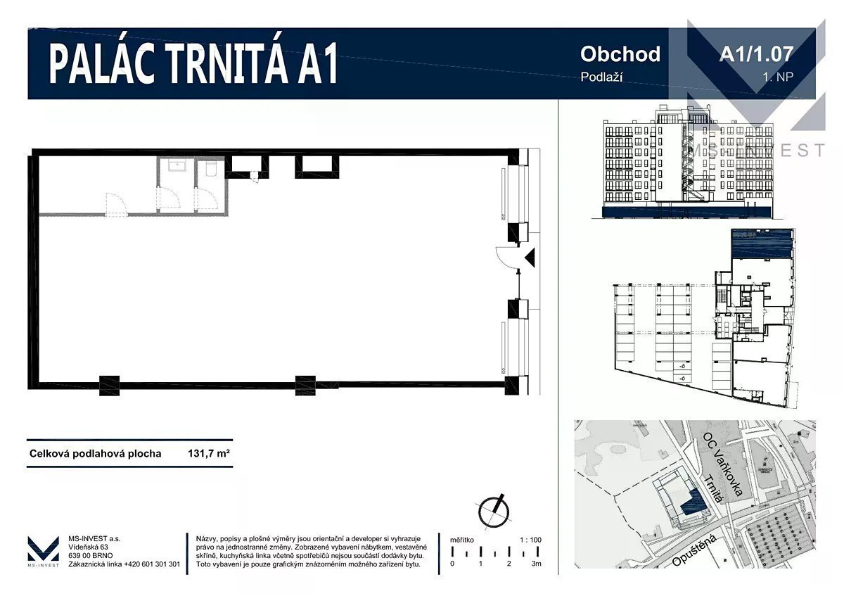 V novém developerském projektu Palác Trnitá, který najdete v hlavní rozvojové zóně města Brna, v těsném sousedství historického centra města Brna a NC Vaňkovky, nabízíme prodej novostavby obchodního prostoru o výměře 132 m2, který se nachází v 1. NP s přímým vstupem z ulice Trnitá. Komerční prostory nabízíme ve standardu shell and core, možnost dokoupení GS. K dispozici ihned.