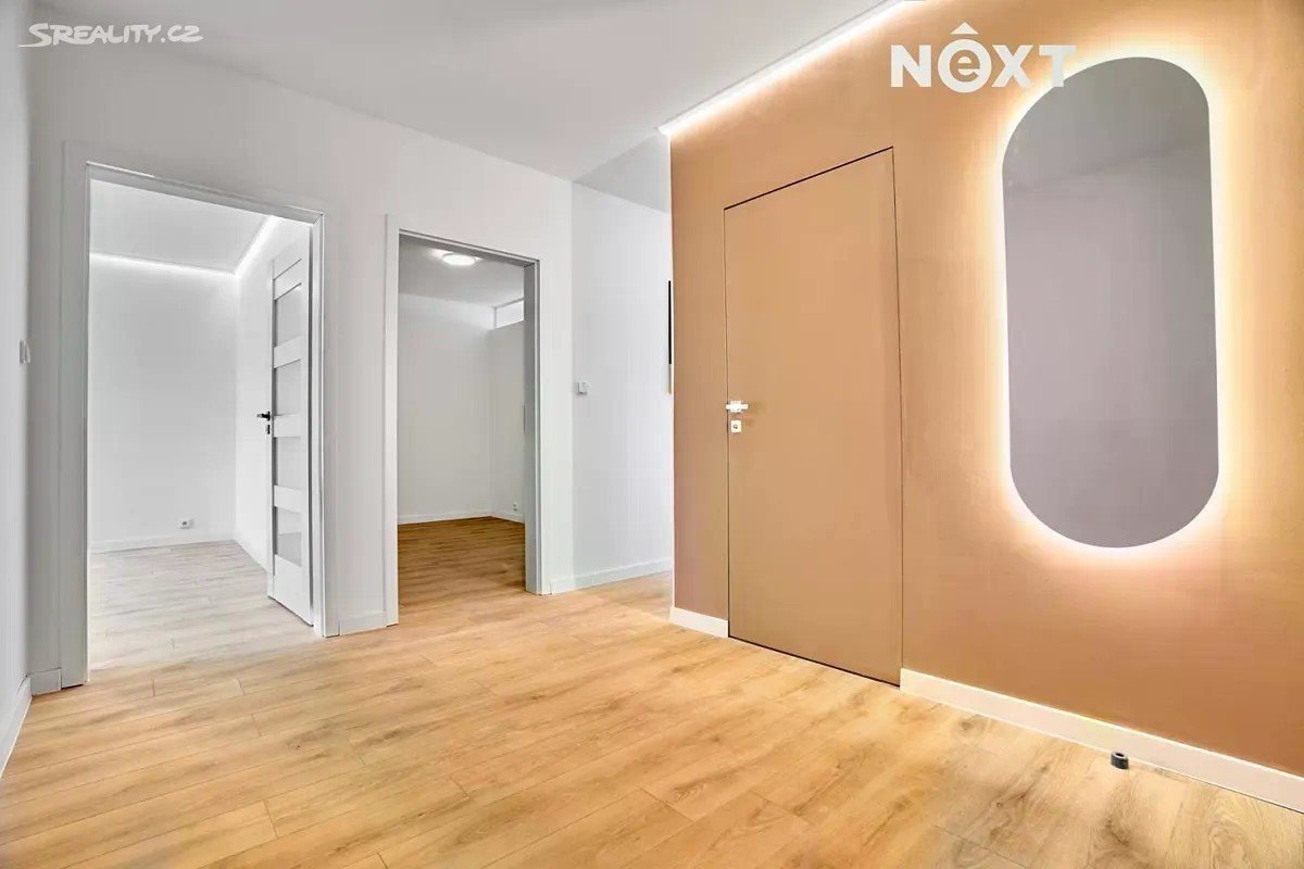 Nabízíme k prodeji prostorný byt v osobním vlastnictví, o dispozici 2 + 1 s lodžií, který se nachází na 8. nadzemním podlaží panelového domu s euro výtahem, s celkovým počtem osmi nadzemních a jednoho podzemního podlaží. Díky své poloze v nejvyšším patře nabízí nádherný výhled na okolí. Byt má celkovou plochu 67 m2 a podlahovou plochu 61 m2, což poskytuje dostatek prostoru pro pohodlné bydlení - dva menší pokoje vznikly přepažením jednoho velkého, celkem tedy byt nabízí 3 samostatné pokoje. K bytu náleží sklep. Byt prošel kompletní, velmi vkusnou, nákladnou rekonstrukcí. Kuchyňská linka je zařízena vestavnými elektrospotřebiči (sklokeramická varná deska, elektrická trouba, digestoř, mikrovlnná trouba, myčka nádobí) a skýtá dostatek úložného prostoru, položeny kvalitní plovoucí podlahy, koupelna se sprchovým koutem a toaletou s bidetovou sprchou, v celém bytě je instalováno led osvětlení.Byt není zařízen nábytkem - k inzerci tedy připojujeme fotografie vizualizací pokojů s možným zařízením nábytkem. Dům je součástí příjemného sídliště, které poskytuje veškerou občanskou vybavenost a pohodlné bydlení v klidném prostředí. Lokalita je také velmi dobře dostupná díky blízkosti MHD a autobusových spojů, což umožňuje snadný a rychlý přesun do centra města. Tento byt je ideální volbou pro ty, kteří hledají luxusní bydlení v kombinaci klidu, dostupnosti služeb a dobré dopravní infrastruktury. Doporučujeme osobní prohlídku nemovitosti. Pro komunikaci uvádějte evidenční číslo zakázky N110968.