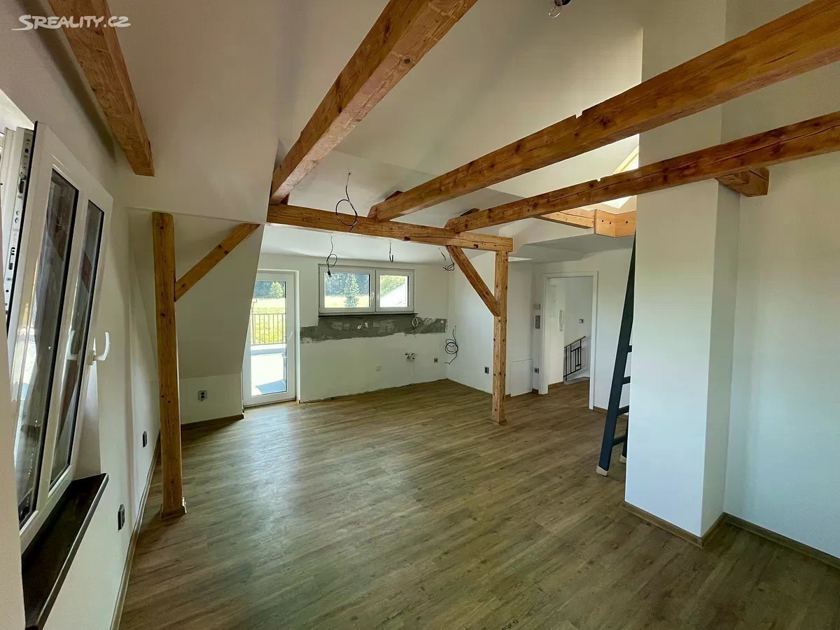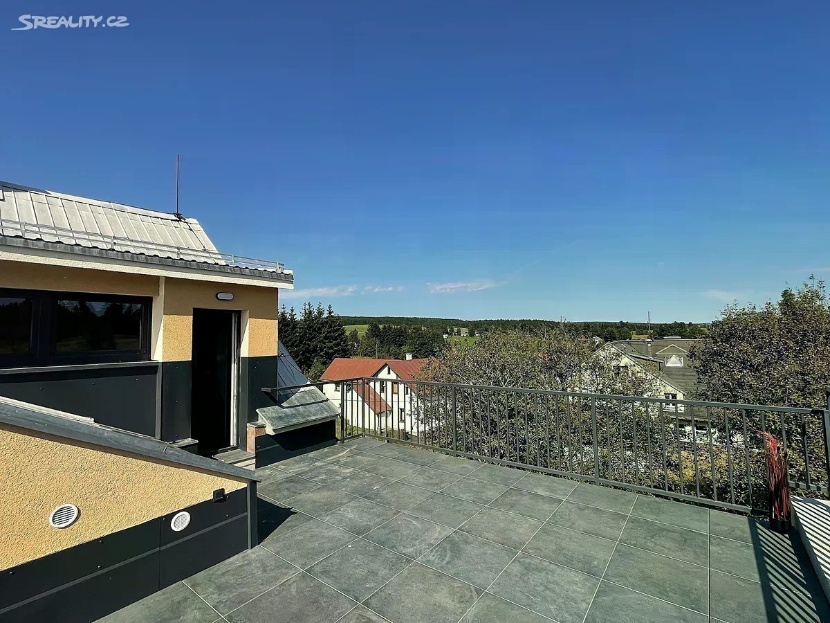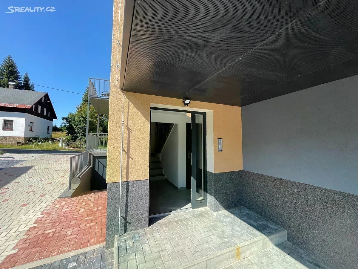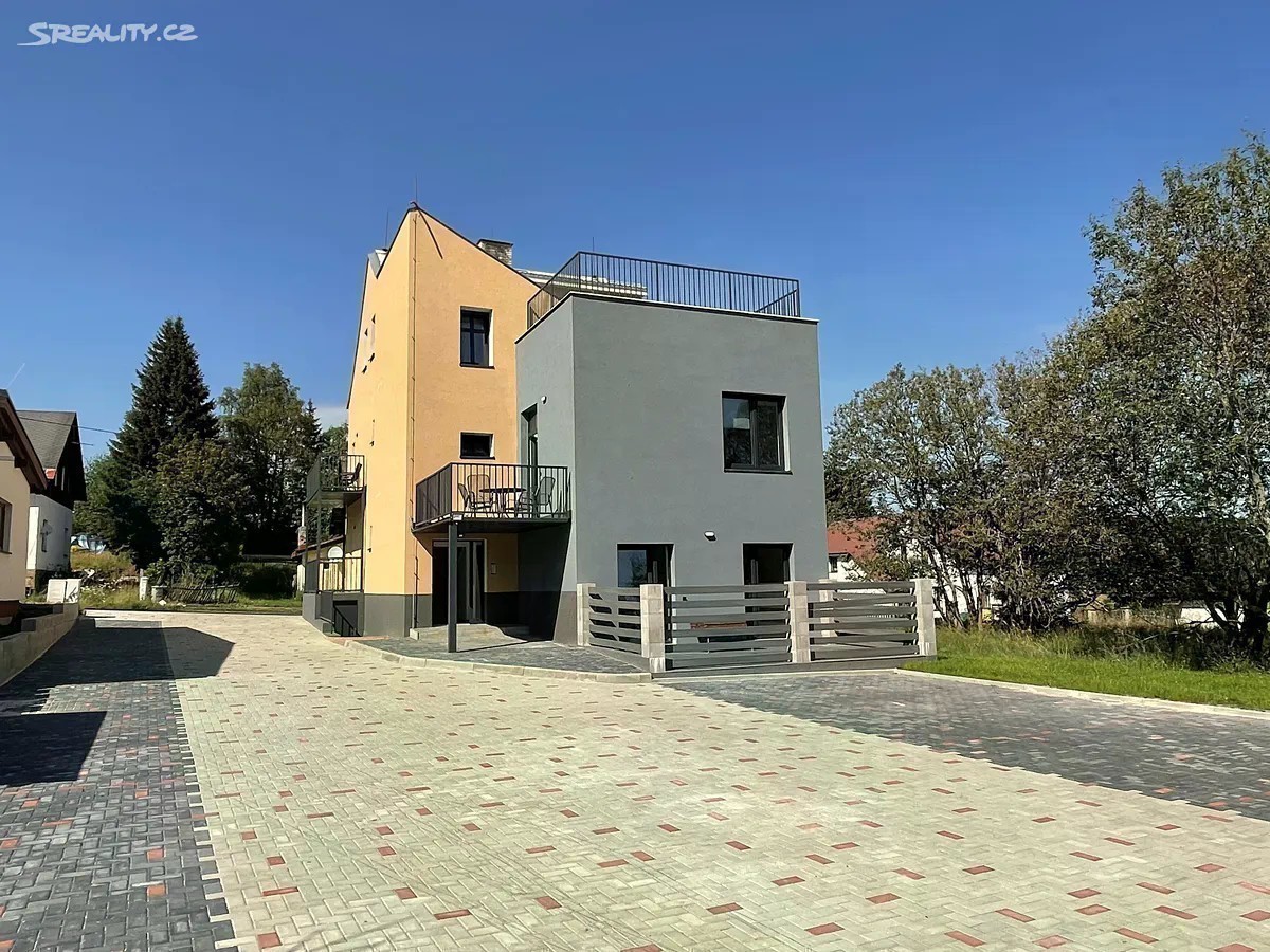 V zastoupení majitele nabízíme příležitost ke koupi nově zbudovaného apartmánu o dispozici 3+KK s terasou a podkrovím ve druhém patře cihlového bytového domu v obci Pernink. Podlahová plocha bytu je 77,4m2, terasa 24,35m2, podkroví 12m2. Celková užitná plocha tohoto bytu je tudíž 113m2. V domě vzniklo 5 nových bytových jednotek o dispozici 2+KK a 3+KK. Příslušenství bytu tvoří zděná sklepní kóje o velikosti 10,53m2 v prvním podzemním podlaží bytového domu se vstupem ze zahrady a domu. Podlahové vytápění elektrokotlem se sníženou sazbou HDO, ohřev vody elektrickým bojlerem. Vlastní parkovací místo na pozemku u domu. Pokud hledáte apartmánové bydlení v horském městečku nedaleko skiareálů či investici na krátkodobé pronájmy, mohu tuto nemovitost doporučit. Neváhejte nás oslovit a sjednat si prohlídku nabízené nemovitosti. S financováním rádi pomůžeme. Více informací v RK.