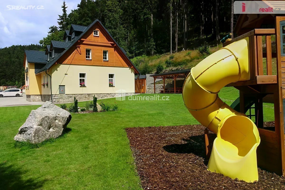 Exkluzivně nabízíme k prodeji luxusní apartmán v rezidenci Horská zahrada v Krušných horách, pouhých 100 metrů od lanovky skiareálu Plešivec s vlastním parkovacím místem v ceně. Tento moderně zařízený byt o dispozici 1+kk se nachází v 1. patře hlavní budovy a je po kompletní rekonstrukci. Nabízí pro nové vlastníky plochu 27,68 m² a veškeré komfortní vybavení včetně centrálního plynového vytápění a internetového připojení. Nehledejte dál, tady najdete svůj nový domov v horském ráji! Zde si nepořizujete pouze apartmán, ale soukromý kousek hor - pořizujete si horskou zahradu na slunečním jižním svahu pro váš klid a relaxaci. Součástí koupě apartmánu je i podíl na pozemku (zdarma) v uzavřeném areálu o velikosti 3800 m², s krytým posezením a grilem. Dále zde najdete lyžárnu, kolárnu, dětské hřiště, parkoviště a mnohé další. Možností je i koupě dalších volných apartmánů v hlavní budově různých dispozic, či samostatnou chatu. Pro více informací nás neváhejte kontaktovat nebo navštivte web nemovitosti. Ev. číslo: 651266.