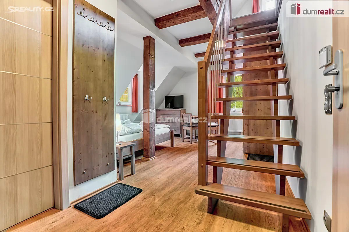 Exkluzivně nabízíme k prodeji luxusní mezonetový apartmán v rezidenci Horská zahrada v Krušných horách, pouhých 100 metrů od lanovky skiareálu Plešivec s vlastním parkovacím místem v ceně. Tento moderně zařízený byt o dispozici 2+kk se nachází v 1. patře hlavní budovy a je po kompletní rekonstrukci. Nabízí pro nové vlastníky plochu 41,2 m² a veškeré komfortní vybavení včetně centrálního plynového vytápění a internetového připojení. Nehledejte dál, tady najdete svůj nový domov v horském ráji! Zde si nepořizujete pouze apartmán, ale soukromý kousek hor - pořizujete si horskou zahradu na slunečním jižním svahu pro váš klid a relaxaci. Součástí koupě apartmánu je i podíl na pozemku (zdarma) v uzavřeném areálu o velikosti 3800 m², s krytým posezením a grilem. Dále zde najdete lyžárnu, kolárnu, dětské hřiště, parkoviště a mnohé další. Možností je i koupě dalších volných apartmánů v hlavní budově různých dispozic, či samostatnou chatu. Pro více informací nás neváhejte kontaktovat nebo navštivte web nemovitosti. Ev. číslo: 651271.
