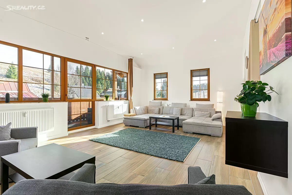 Moderní plně zařízený prostorný byt 1+1 (2+kk) nabízí plný komfort pro aktivní dovolenou či trvalé bydlení na kouzelném místě v Horní Blatné. Nabízíme byt 1+1 (2+kk) o rozloze 71 m2 v 1NP komorního bytového domu na okraji malebného horského městečka Horní Blatná. Apartmán je jako stvořený k odpočinku, nabízí velkorysý prostor, terasu s krásnými výhledy, upravenou zahradu kolem domu s místem pro odpočinek s dětmi, či grilování. V bytovém domě je majitelům k dispozici finská sauna pro absoluní zážitek a relax. Apartmán se prodává jako plně vybavený včetně plně vybavené kuchyně a kompletního nábytku. Na jedné z fotografiích je vizualizace návrhu alternativního prostorového uspořádání. K bytu náleží podíl na kolárně/lyžádně k úschově lyží, kol či dětských kočárků. K apartmánu patří také soukromé parkovací stání před domem. - Kompletně vybavený apartmán hned u lyžařských stop, či krušnohorské cyklo magistrály; - Příjemná jihovýchodní orientace celého bytu; - Prostorný a slunný byt; - Kvalitní a praktické vybavení bytu; - komfortní soukromé parkovací místo přímo před domem; - k dispozici finská sauna, zahrada, venkovní posezení; - hned u lesa, potoka, přírody a běžkařských stop; - V případě zájmu možnost krátkodobého pronajímání bez starostí se zaběhnutým servisem; Co najdete v okolí: Horní Blatná je historické horské městečko ve v nejkrásnějším místě Krušných hor. S nadmořskou výškou skoro 900 mnm je ideálním útočištěm pro zimní sporty i aktivní dovolenou po celý rok. Lokalita nabízí nekonečné možnosti rekreace včetně běžeckých tras, cyklostezek, rozlehlých lesů a horských luk pro procházky, či houbaření. Nedaleké lyžařské areály Potůčky, Plešivec, či Klínovec nabízí kvalitní lyžování v zimě a možnosti adrenalinu v trailparcích v létě. V případě zájmu o investici bez starostí lze jednoduše nastoupit do zaběhnutého projektu a inkasovat výnosy. V případě zájmu o prohlídku nás neváhejte kontaktovat, v Krušných horách jsme doma!