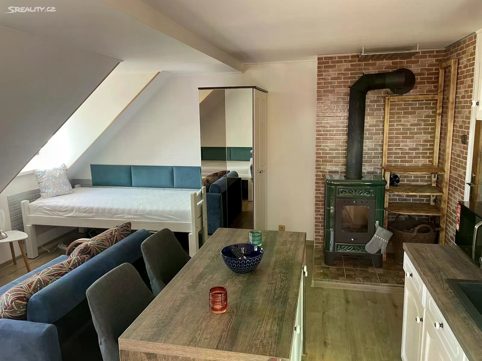 Nabízíme k prodeji zajímavý byt v centru horského městečka Abertamy v Krušných horách. Byt o dispozičním řešení 1kk a velikosti 28 m2 prošel kompletní rekonstrukcí, při které byly nově udělány rozvody elektřiny, vody a odpadů, vybudována nová koupelna a kuchyňský kout, provedena výměna oken, zateplení stropu, nové podlahové krytiny a vymalování. Byt se prodává zařízený kuchyňskou linkou se spotřebiči a ostrůvkem, a dalším nábytkem dle fotogalerie. Topení kamny na dřevo, které můžete mít uskladněno ve sklepě, nebo elektrickými přímotopy, ohřev teplé vody v bojleru. Vzhledem k velikosti bytu velmi nízké provozní náklady. Pořízení bytu představuje nejen možnost pro vlastní rekreaci v horách, ale také zajímavou investiční příležitost, kdy nemovitost můžete sezónně pronajímat zájemcům o lyžování, běžkování, cyklistiku, turistiku nebo jen o pobyt na čistém horském vzduchu. Městečko Abertamy se nachází v bezprostřední blízkosti nejhezčích krušnohorských lyžařských areálů (Plešivec, Klínovec) a Krušnohorské magistrály pro běžkaře.