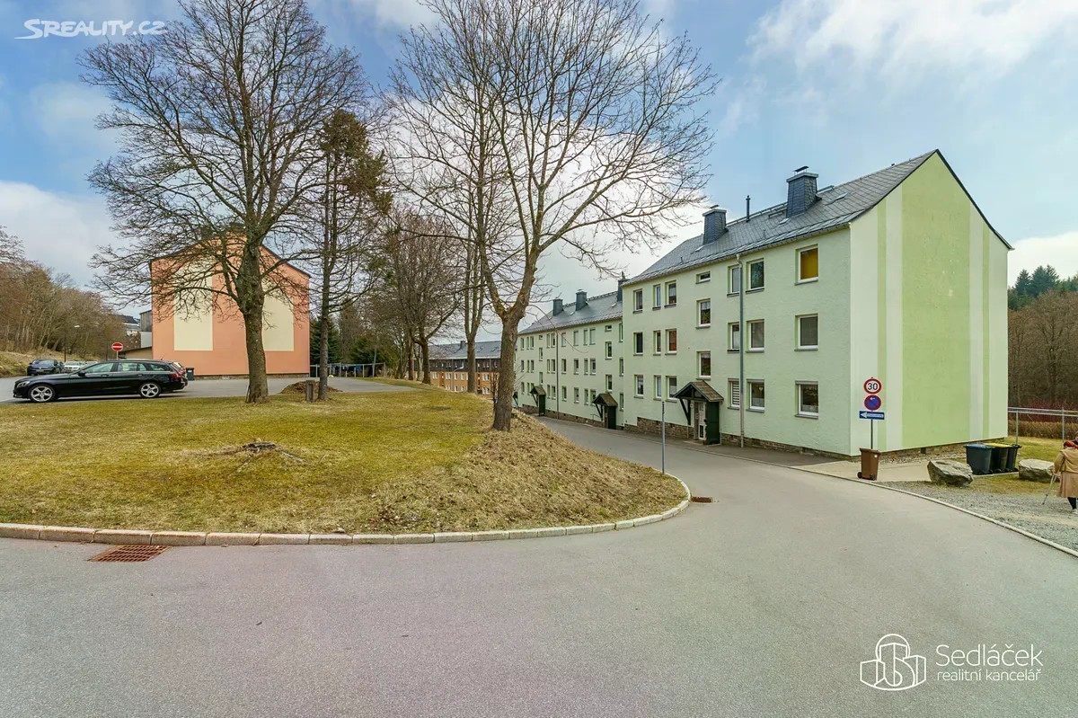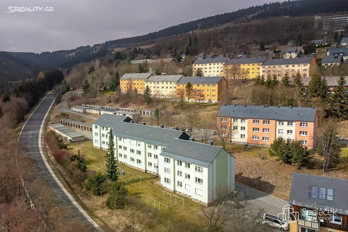Cena snížena! Česky mluvící majitelka - kompletní český servis zajištěn. Nabízíme exkluzivní byt 3+1 v lázeňském městečku Kurort Oberwiesenthal (SRN), pouhých 5 minut od Božího Daru a českých hranic. Byt je ideální pro vlastní bydlení nebo rekreační pronájem a zároveň představuje výhodnou investici - v Německu je již registrován jako „Ferienwohnung“, což umožňuje legální krátkodobý i dlouhodobý pronájem - není podmínkou toto využívání. Celý proces převodu vlastnictví probíhá u německého notáře, pro české zájemce můžeme zajistit kompletní překladatelský a poradenský servis. Majitelka je česky mluvící, vše tedy probíhá bez jazykové bariéry. Byt o dispozici 3+1 (60 m²) se nachází v 1. nadzemním podlaží revitalizovaného panelového domu. Nabízí plně vybavenou kuchyň, koupelnu se sprchovým koutem a toaletou, prostorný obývací pokoj a dvě ložnice. Vybavení zahrnuje vše potřebné pro okamžité užívání - včetně nábytku, spotřebičů, nádobí a textilu. K dispozici je také sklepní prostor, prádelna a samostatný plynový kotel zajišťující nízké provozní náklady a komfortní vytápění. Dům je zateplený a velmi dobře udržovaný. Lokalita je vyhledávaná jak pro rekreaci, tak i pro klidné trvalé bydlení. V zimě je v bezprostřední blízkosti několik lyžařských areálů - Klínovec, Boží Dar, Fichtelberg nebo Neklid. V létě okolí nabízí výborné podmínky pro cyklistiku, pěší turistiku i relax v přírodě. Výhodou je výborná dostupnost z ČR, ale zároveň nižší pořizovací cena oproti srovnatelným nemovitostem v horských oblastech na české straně. Výrazné snížení ceny z této nabídky činí mimořádně atraktivní příležitost. Neváhejte nás kontaktovat pro více informací nebo osobní prohlídku. Prodej bez jazykových překážek česky, rychle a bez starostí.