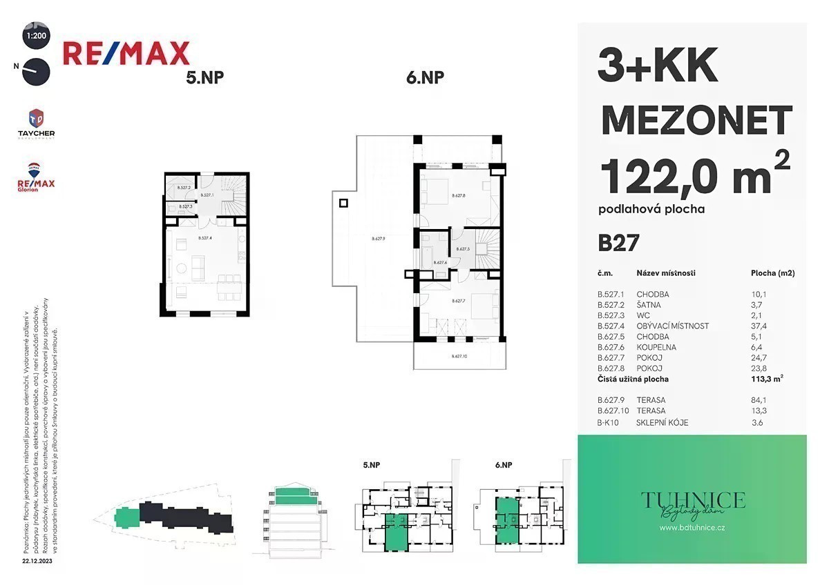 Vážení zájemci! Představuji vám překrásný 122 m2 velký mezonetový apartmán typu 3+kk s panoramatickou terasou o celkové ploše 113,3m2. Občas se říká, že si samotný byt nevybírá člověk, ale byt si vybírá svého opravdového majitele. Rozlehlý obývací pokoj s kuchyní poslouží jak k pohodlnému uvítání návštěv, tak i jako místo pro trávení společných rodinných akcí a oslav. V prvním patře tohoto apartmánu je umístěna prostorná místnost pro šatnu, kde je dost místa i pro vestavěnou skříň a WC. Ve druhém patře jsou dvě velké místnosti pro ložnice, každá se samostatným východem na obrovskou terasu s panoramatickým výhledem na Karlovy Vary. Kdyby bylo málo, pro úplné soukromí se v tomto patře našlo místo i pro menší balkon. Samostatné WC a koupelna v patře jsou samozřejmostí. Interiér je proveden že špičkových materiálů: parketové podlahy, lakované dveře, v koupelně a WC vybavení světoznámé značky Villeroy & Boch, velkoformátovy obklad a dlažba a mnoho dalšího. Tento apartmán čeká na svého majitele! Nenechte si ujit tak skvělou nabídku!