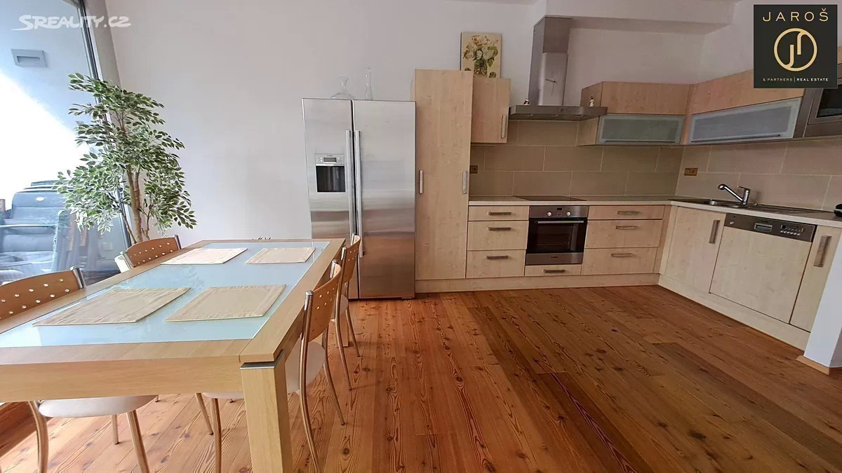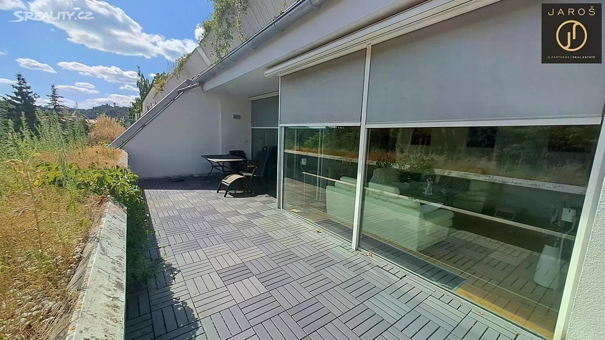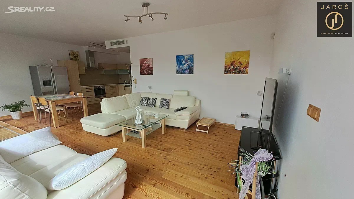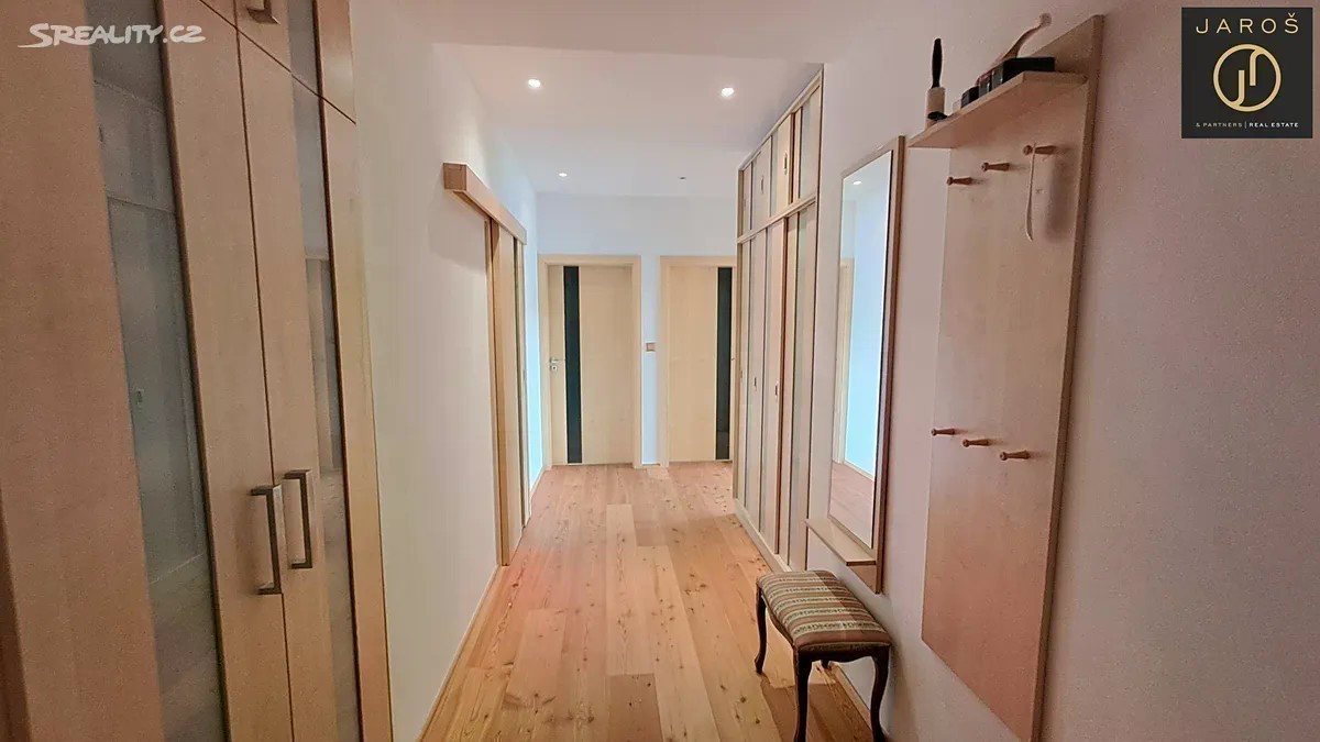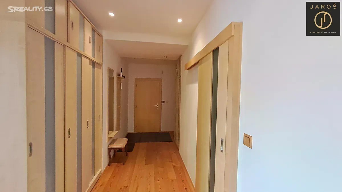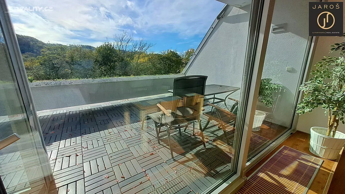 Nabízíme k prodeji exkluzivní vybavený byt 3+KK o rozloze 95,75m2 v moderní novostavbě v Karlových Varech na Pražské ulici. Byt se nachází ve 4. patře budovy s výtahem a vlastním garážovým stáním v přízemí. Z příchozí centrální haly (11,9m2) s vestavěnými skříněmi je vstup do všech místností jednotky. Hlavní obytný prostor o velikosti 40,4m2 je situován na slunný jih s celou prosklenou stěnou z hliníkových oken a se vstupem na krásnou slunnou terasu o výměře 30.2m2. Z terasy a celé místnosti je úchvatný výhled do zeleně lázeňských lesů. Kuchyňský kout je vybaven linkou se všemi spotřebiči kvalitní značky Bosh (myčka, varná deska, trouba, mikrovlnná trouba, drtič odpadů a tzv. americká lednice s mrazákem) a dále moderním jídelním stolem s židlemi. V obývací části najdeme sedací soupravu s křeslem, konferenční stolek a televizor. Místnost je vytápěna podlahovým topením podél oken a také má vestavěnou klimatizaci. V bytě se dále nachází hlavní ložnice (16,67m2) s francouzským oknem a vstupem na příjemný balkon (6,44m2). Je vybavena manželskou postelí, velikou šatní skříní a komodou. Okno situované do zadní části a venkovní zatahovací žaluzie zajišťují klidné spaní. Druhá ložnice (14,45m2) je vybavena manželským dvojlůžkem, skříní a komodou, vše v moderním stylu v kombinaci se dřevem. Situována je taktéž na klidnou stranu budovy s okny s venkovními žaluziemi. Hala i všechny pokoje jsou pokryty dřevěnou podlahou s olejovou úpravou. Všechna okna s nákladnými hliníkovými rámy mají vnější žaluzie na ovládání. Byt je vybaven domácím vrátným a alarmem. Vytápěn je radiátory, podlahovým topením a klimatizací. Voda i kanalizace městská. Z chodby je také vstup na samostatné WC s umyvadlem (3,09m2) a do luxusní koupelny (9,58m2) vybavené masážní vanou, masážním sprchovým koutem, druhým WC, bidetem, pračkou, úložnými prostory a velikým umyvadlem. Dům, kde se byt nachází, má velkorysé světlé a udržované společné prostory, moderní výtah. Obrovským bonusem je garáž v přízemí domu, s vlastím parkovacím místem i s prostorem na odkládání věcí. Část města, kde se nemovitost nachází je občansky vybavena, nedaleko je základní škola s rozšířenou výukou cizích jazyků, lékárna, zastávka MHD, supermarket JIP, pizzerie atd. Dům se nachází také v bezprostřední blízkosti vstupu do lázeňských lesů, které nabízí nádherné procházky přírodou a až k nově zrekonstruované Goethově rozhledně. Výhodou je také nedaleká lanovka pod hotelem Imperial, která umožňuje rychlé a fyzicky nenáročné spojení s lázeňskou zónou. Byt je vhodný pro náročné klienty, kteří chtějí pohodlí, klid a luxus pod jednou střechou. Cena k jednání 11 500 000,-kč (včetně park.místa v garáži)