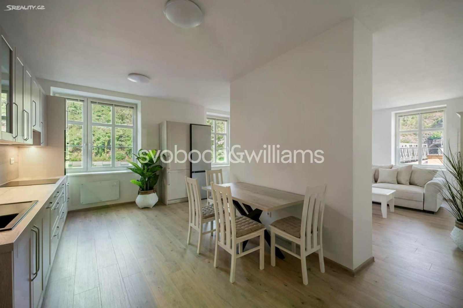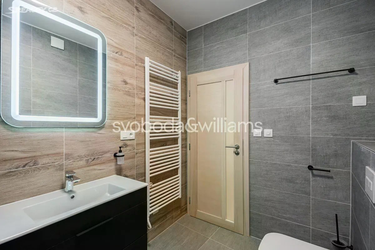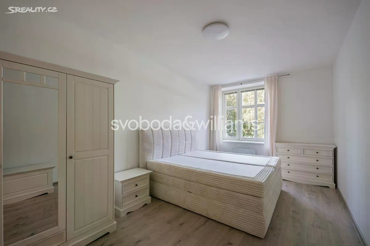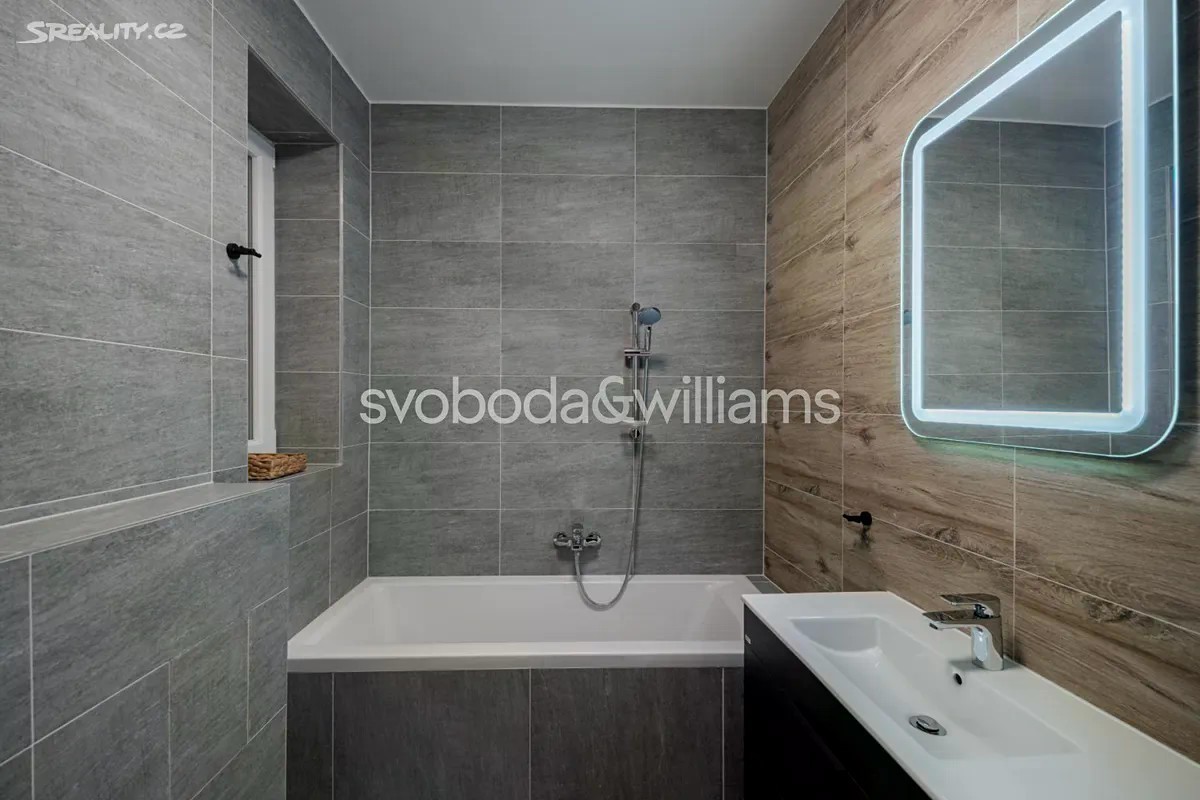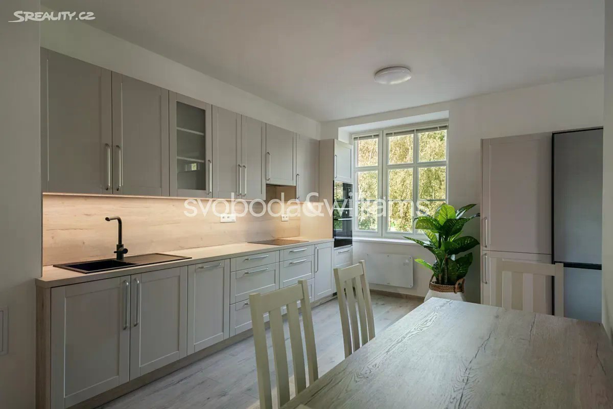 Světlý byt s malým balkónem je umístěn ve 3. podlaží cihlového bytového domu, který stojí ve slepé ulici u soutoku Teplé s Ohří v Karlových Varech blízko veškeré občanské vybavenosti. Interiér se skládá z velkého rohového obývacího pokoje s balkónem, částečně oddělené kuchyně s jídelnou, dále ložnice, koupelny (vana, umyvadlo, WC, bidetová sprška), vstupní chodby a technické místnosti s přípojkou na pračku. Obývací pokoj s balkónem je orientovaný na severovýchod a severozápad, ložnice na severozápad. Byt byl zrekonstruovaný v r. 2024. Podlahy jsou plovoucí laminátové, okna dřevěná s dvojskly. Kuchyně je vybavena vestavnými spotřebiči Electrolux (indukční varnou deskou, myčkou nádobí o šíři 45 cm, elektrickou a mikrovlnnou troubou), digestoří Elica a volně stojící lednicí Samsung, kterou lze odkoupit. Vytápění řeší elektrické přímotopy Sencor, v koupelně je podlahové topení. V případě zájmu lze za příplatek ponechat v bytě vybavení vyobrazené na fotografiích včetně stylového nepoužitého nábytku z masivu od značky Stará krása. K bytu přísluší sklep, dům má novou střechu, rozvody i stoupačky, výtah vede do mezipater. Výhodná poloha na nábřeží blízko supermarketu, nemocnice, státní i soukromé školky, základní školy, autobusového terminálu i železniční stanice, autem je snadný nájezd na silnici č. 6, na niž navazuje dálnice D6 do Prahy. Karlovy Vary jsou městem krátkých vzdáleností, vynikají bohatým kulturním životem, množstvím restaurací a kaváren i nádhernou okolní přírodou s působivými vyhlídkami. K velkým výhodám patří také blízkost Krušných hor, CHKO Slavkovský les a hranice s Německem. Podlahová plocha 80,32 m2, balkón 2,08 m2, sklepní kóje 2,90 m2.