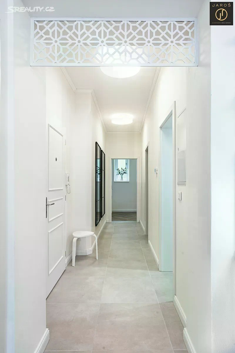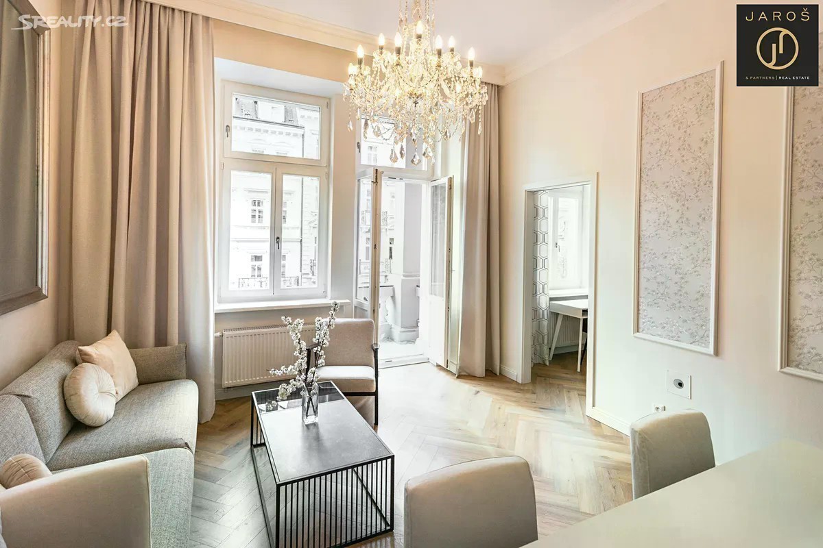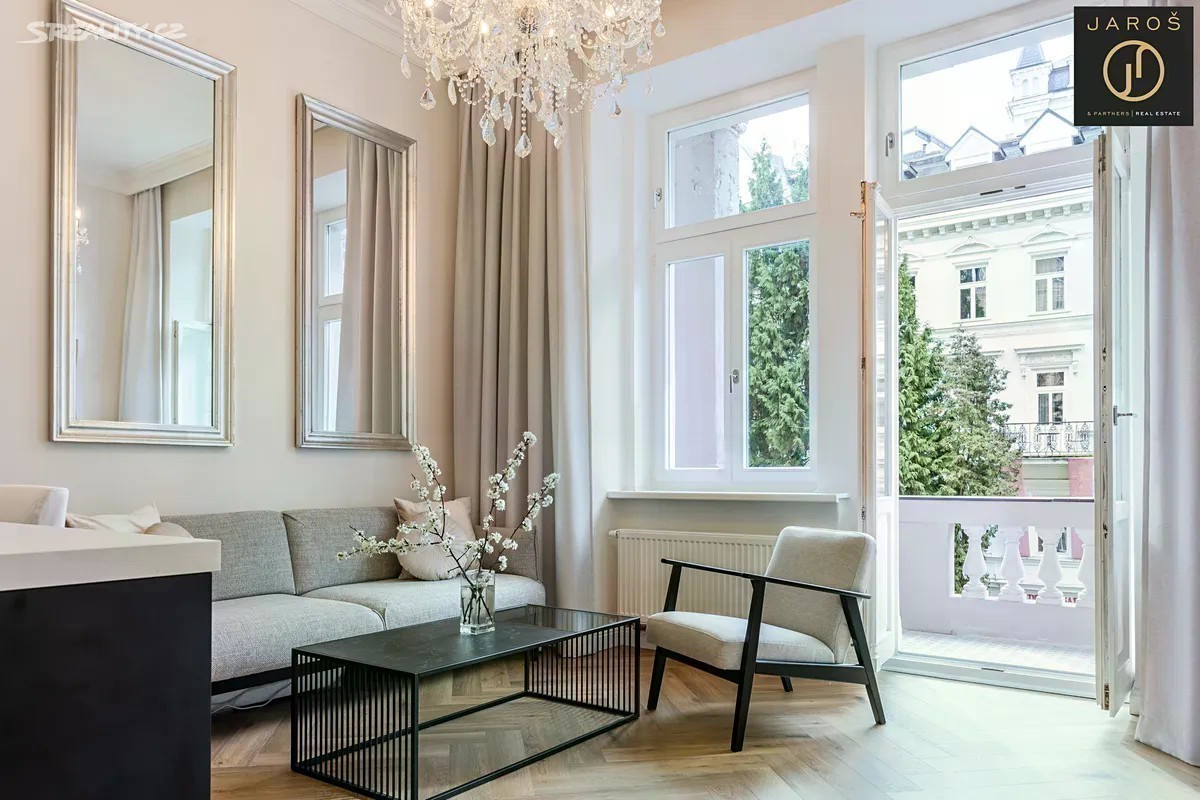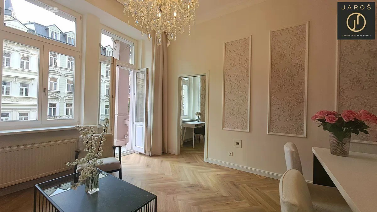 Nabízíme velmi hezký, reprezentativní byt 3+KK v os.vl. o rozměru 78,6 m2 (vč. balkonu a sklepa) v 1.patře zdobného starobylého domu v jedné z nejprestižnějších ulic lázeňské zóny v Karlových Varech. Byt prošel v r. 2023 celkovou velmi zdařilou a nákladnou rekonstrukcí, která ctí historického ducha domu a přesto působí svěže a soudobě. Byly položeny nové podlahy, dřevěná špaletová okna byla velmi pečlivě zrepasována, byly osazeny obložkové dveře, instalovány nové rozvody elektřiny, zatepleny vysoké stropy, vyštukovány stěny všech místností s novou malbou. Z centrální vstupní chodby se vchází do ložnice s oknem směřujícím do zadní klidné části domu s výhledem do zeleně. Dále se z příchozí chodby vchází do praktické šatny, do koupelny s WC (kde je ve vestavěné skříni umístěn zcela nový elektrický kotel na vytápění) a také do ústřední místnosti bytu, působivého obývacího pokoje s plně vybavenou kuchyní. Z tohoto pokoje je vstup na balkon orientovaný na slunný jihovýchod. Při posezení na balkoně s nádherným pohledem na zelenou a udržovanou Sadovou ulici vč. výhledu na jednu z karlovarských dominant, Pravoslavný kostel sv. Petra a Pavla, si můžete za příjemného zvuku zvonů vychutnat ranní kávu či večerní sklenku dobrého vína. Z obývacího pokoje se vchází do účelné komory s množstvím úložného prostoru a také do menší místnosti se stejnou jihovýchodní orientací, která může být využita jako dětský nebo hostinský pokoj či pracovna. Vysoké stropy 3,9 m v obývacím pokoji s kuchyní i v obou pokojích dodávají celému bytu vzdušnost a světlost. Byt vedený jako původně 2+1 je vybaven zcela novým zařízením, nábytkem, sanitou, kuchyňskou linkou na míru s vestavěnými spotřebiči, vč. veškerého nábytku a úložného prostoru v šatně a komoře. Historický dům má honosnou vstupní halu, zachovanou původní mozaiku na chodbách s původním kamenným schodištěm a zcela nově instalovaná dřevěná eurookna ve společných prostorách. Jedná se o luxusní bydlení pro náročné klienty, kteří ocení vkusné, moderní, praktické a přesto velmi elegantní uspořádání bytu přímo v srdci lázeňské zóny se snadnou pěší dostupností jak k léčivým pramenům, tak i do obchodní části vyhlášeného lázeňského města. Fond oprav a služeb 1 800,- Kč měsíčně