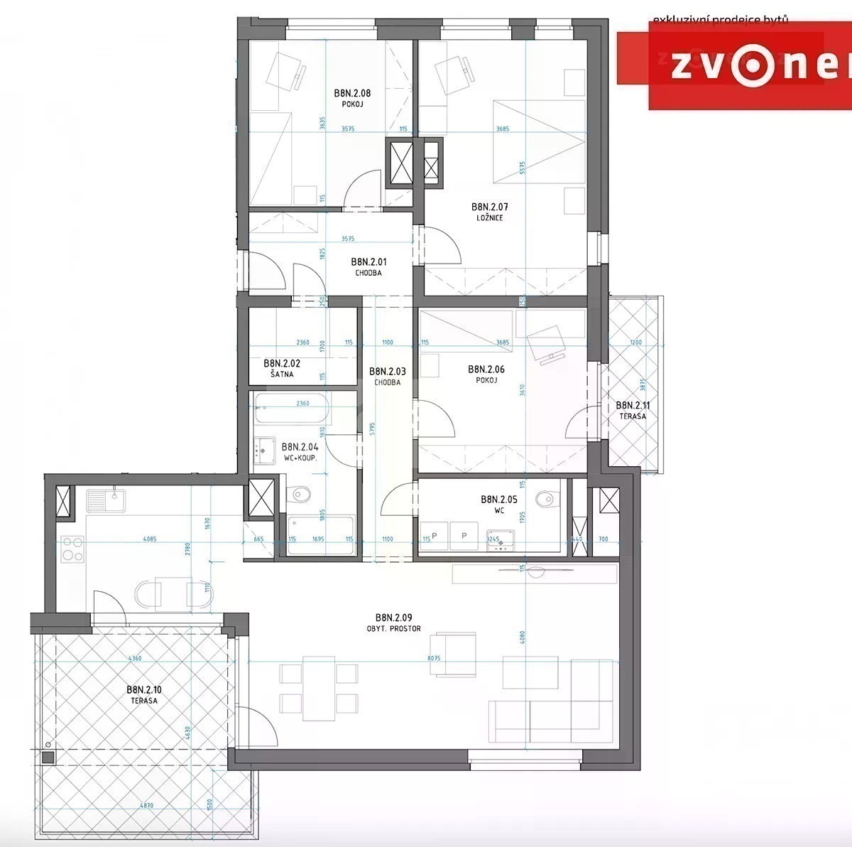 Hledáte nové bydlení, které splní všechny vaše představy o prostoru, pohodlí a moderním stylu? Máme pro vás jedinečnou příležitost. Nabízíme exkluzivní byt 4+1 o velkorysé výměře 160 m², který je právě dokončen, zkolaudován a připravený k okamžitému nastěhování. Byt se nachází v moderním bytovém domě v klidné a vyhledávané části Zlína a díky své jihovýchodní orientaci je plný světla po celý den. K dispozici jsou hned dvě prostorné terasy o velikosti 21 m² a 5 m², odkud se otevírá nádherný výhled do okolí - ideální místo pro ranní kávu nebo večerní posezení s přáteli. Interiér je navržen s důrazem na kvalitu a komfort. Dřevěné podlahy v obytných místnostech, designové obklady s mramorovým vzhledem v koupelnách, elegantní interiérové dveře a okna nejvyšší kvality vytvářejí harmonii moderního stylu a útulné atmosféry. O váš komfort se postará podlahové vytápění v celém bytě, elektricky ovládané venkovní žaluzie a příprava na klimatizaci. Samozřejmostí je sklepní prostor v suterénu domu a možnost přikoupit garážové stání. Lokalita spojuje klid a soukromí s rychlou dostupností do centra města i veškerých služeb. Užijte si bydlení, které nabízí nejen krásný výhled, ale také skutečně vysoký standard každodenního života. Neváhejte a domluvte si osobní prohlídku. Tento byt je připraven stát se vaším novým domovem.