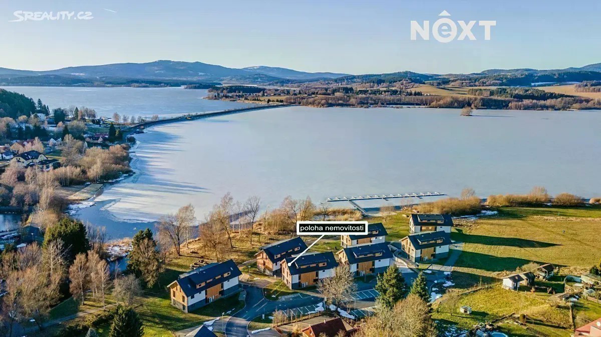 Hledáte klid a pohodu na břehu Lipenské přehrady? Nabízíme Vám prodej apartmánu 3kk v Černé v Pošumaví. Obec se nachází v okrese Český Krumlov, zhruba 18 km jihozápadně od Českého Krumlova. Dobrá dojezdová vzdálenost je i do Českých Budějovic. Do obce se dostanete autem, ale i vlakem. Především Vás okouzlí okolní příroda a možnost celoročního sportovního vyžití. Lokalita nabízí velmi dobrou občanskou vybavenost (restaurace, prodejna potravin, pošta, skiareály, cyklostezky, pláže, půjčovny sportovních předmětů, apod.). Apartmán se nachází ve zděné třípodlažní budově v prvním patře. K zachování komfortu zde naleznete i výtah. Celková plocha apartmánu je 53m2. Dispozice apartmánu: předsíň, koupelna s WC, pokoj, obývací pokoj s kuchyňským koutem, ložnice a prostorná terasa s výhledem na Lipenskou přehradu. Apartmán je plně vybaven a v současné době pronajímán. Správcovská firma Vám zajistí pronájem apartmánu a veškerý chod s tím spojený. Součástí prodeje i jedno parkovací stání hned před domem. Dále zde má každá bytová jednotka sklepní kóji k uložení sezonních věcí. Díky atraktivní lokalitě Vám doporučujeme byt (apartmán), jako výhodnou investiční příležitost, kde využijete letní i zimní sezónu. Budeme se na Vás srdečně těšit při osobním setkání, kde Vám rádi sdělíme podrobné informace k bytové jednotce. Nemovitosti lze financovat prostřednictvím hypotečního úvěru. Nezávazně Vám připravíme nabídku možného financování. Pouze u nás vám zajistíme moderní financování až na 35 let, bez ohledu na věk a prokazování příjmů, či nutnosti předkládat daňové přiznání (u podnikatelů). Pro komunikaci uvádějte evidenční číslo zakázky N103141.