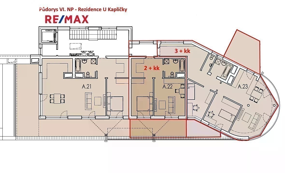 Nabízíme ke koupi soubor 2 sousedních bytů (3+kk a 2+kk) s prostornými terasami a parkováním v Rezidenci U Kapličky, situované na rohu ulic Husova a Sukova v širším centru Českých Budějovic. První z bytů má dispozici 3+kk, užitnou plochu 104 m2 (+ 2 garážová stání) a je situovaný v 5.patře bytového domu Rezidence U Kapličky, na adrese Sukova 1828/2, České Budějovice. Současně s tímto bytem je na prodej (stejný majitel) sousední bytová jednotka (na patře celkem 3 byty) s dispozicí 2+kk (60,3 m2 + 1 garážové stání). Novému majiteli se tak naskýtá několik variant, např. oba byty propojit a rozšířit stávající dispozici bytu 3+kk, případně využívat oba byty v rámci rodiny, nebo byt 2+kk využívat např. jako pracovnu - kancelář (současný stav), případně ho využít využít jako investici na pronájem. Byt 3+kk: Dispozice světlého a originálně řešeného bytu s výhledem nejen na Černou věž, sestává ze vstupní chodby s navazující centrální chodbou, velkého (34 m2) východně orientovaného obývacího pokoje s navazující jídelní částí a kuchyňským koutem (kompletně vybavený spotřebiči - varná deska, elektrická trouba, myčka, lednice s mrazákem) vše s přímým vstupem na terasu. Dalšími místnostmi v jsou pokoj č. 2 využívaný jako ložnice (se vstupem na druhou terasu), pokoj č. 3 s variabilní možností využití (dětský pokoj, pracovna, aj.), koupelna s umyvadlem, vanou a sprchovou nikou a samostatné WC. Odkaz na virtuální prohlídku bytu: https://my.matterport.com/show/?m=ctfpc1SUAGF Byt 2+kk: Tato bytová jednotka je v současné době částečně využívána jako kancelář a dispozičně sestává z prostorné vstupní chodby, dvou samostatných pokojů se vstupem na terasu (v jednom příprava na kuchyňskou linku), a koupelny s vanou, umyvadlem a WC. Foto bytu (kanceláře) bude zasláno na vyžádání. Půdorysy obou bytu a celého podlaží naleznete v obrazové části inzerce. Oba byty byly minimálně využívané (majitel žije mimo ČR) - zánovní stav. Příslušenství každého bytu tvoří sklep v přízemí domu. Součástí prodeje jsou celkem 3 garážová stání v I.NP objektu. Vytápění bytů je zajištěno ústředním topením (podlahové topení), hlavní obytný prostor je klimatizovaný. Elektřina (230 V) se sníženou sazbou - bytový dům má vlastní FVE. Rozvody TV do všech obytných místností. Internet. Zděný bytový dům s výtahem, situovaný na rohu ulic Sukova a Husova byl zkolaudovaný v roce 2017. Při výstavbě byly využity kvalitní materiály a technologie - energetická náročnost budovy „B - velmi úsporná“. Nemovitost doporučuji zájemcům hledajícím bydlení (s vlastním parkováním) v docházkové vzdálenosti od centra města (10 min od náměstí), v místě s dobrou dopravní dostupností (zastávka MHD 150 m od domu), občanskou vybaveností (supermarket 5 min chůze) a v blízkosti přírody (lesopark Stromovka).