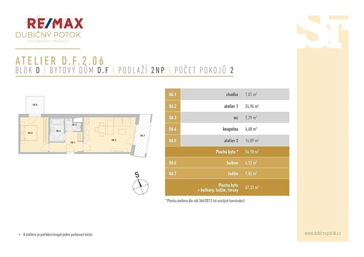 Využijte Štědrý podzim na Dubičném potoku: - Limitovaná nabídka na vybavení bytu dle Vašeho výběru od společnosti Hanák v hodnotě 480.000,- Kč zdarma (nevztahuje se na 1kk). - 10 bytů za akční cenu. - Bonus za rychlé jednání. Bonusy a slevy nelze kombinovat. Nabízíme Vám zcela nový, velmi dobře uspořádaný ateliér 2+kk ve 2. nadzemním podlaží moderního rezidenčního projektu Dubičný potok. Právě nyní ho můžete získat za akční cenu uvedenou v inzerci! Sleva činí 375.480,- Kč a je již z ceny odečtena. Interiér bytu s označením D.F.2.06 je promyšlený do posledního detailu. Po vstupu vás přivítá praktická předsíň s prostorem na vestavnou skříň. Z předsíně je přístup do všech částí bytu. Spolu se samostatnou koupelnou a oddělenou toaletou přirozeně odděluje obytný prostor od spací zóny. Pokud tedy máte zvýšené nároky na klid, je pro Vás tento byt skvělou volbou. Dominantou je zde hlavní obytný prostor s kuchyňským koutem a dostatkem místa pro jídelní i obývací zónu. Díky přímému vstupu na lodžii si zde můžete užívat ranní kávu nebo večerní posezení. Lodžie má osvětlení, zásuvku a na oknech je příprava na předokenní žaluzie. Druhý pokoj, orientovaný na opačnou stranu bytu, nabízí dostatek soukromí a lze jej využít jako ložnici, pracovnu nebo pokoj pro hosty. Z tohoto pokoje je přímý výstup na prostorný a hluboký balkon kam se Vám vejde nejen posezení, ale i malá zahrádka. Díky dvěma venkovním prostorům nabízí byt výjimečné propojení vnitřního a venkovního života. K bytu náleží sklad na patře. Výměry jednotlivých místností najdete na přiloženém půdorysu. Cena je včetně DPH a k bytu je potřeba koupit jedno parkovací místo. Nová rezidence orientovaná na zeleň a život v souladu s přírodou disponuje spoustou bonusů pro Vaše pohodlí a zábavu přímo v místě bydliště. Najdete zde: • dětské hřiště, • workout pro dospělé, • hřiště na petang, • dětské dopravní hřiště, • kvetoucí zahradu v atriu, • vodní plochu s naučnou stezkou, přírodním hřištěm pro děti a přírodním workoutem pro dospělé, • prostor pro venčení psů včetně odpadkových košů a sáčků, • ptačí budky a hmyzí domky, • altán u vody, • grilovací zónu pro rezidenty, • 24/7 fitness pro rezidenty, • zelené střechy domů tvořící klima a tepelný komfort, • výbornou dopravní dostupnost, • zastávku MHD přímo před objektem, • centrum vzdálené přibližně 5 minut, • parkování v podzemní garáži s vyhřívanou rampou, • automatické zvedání garážových vrat po načtení vaší SPZ, • nadstandardní pojezdovou výšku 2,40 m, • samostatnou, vyhřívanou příjezdovou rampu pro kola, • kolárnu, mycí box na psi, mycí box na kola, stanici na opravu a údržbu kol, • čipový systém na vstupy do domu, do garáže, výtahům, kolárně, kočárkárnám, odpadovému hospodářství. Energetická náročnost: • PENB kategorie B • Objekt je vytápěn přes teplárnu. Fotografie bytu byly pořízeny na vzorovém bytě 2kk.