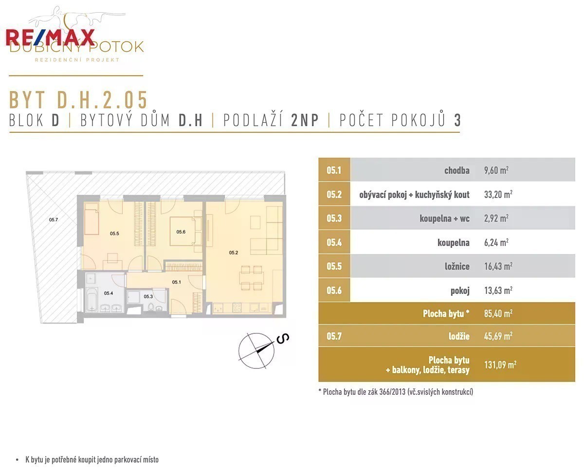 Zveme Vás na prohlídku úplně nového vzorového bytu vybaveného nábytkem Hanák. V rámci podzimní akce můžete získat vybavení k bytu v hodnotě 480 000 Kč i Vy (mimo bytů 1+kk). Den otevřených dveří pořádáme v sobotu 15. 11. 2025 formou skupinové prohlídky v 10:00 a 11:00 hodin. K dispozici také 10 bytů za akční cenu nebo bonus až 150 000 Kč při rychlém jednání. Bonusy a slevy nelze kombinovat. Tento byt je nyní za zvýhodněnou cenu! Společně s dalšími vybranými jednotkami jsme ho zařadili do speciální akce - uvedená cena je již po slevě. Získejte nový, moderní byt v projektu Dubičný potok a užijte si všechny jeho nadstandardní výhody, díky kterým je tento projekt opravdu výjimečný. Představuji Vám exkluzivní nabídku bytové jednotky (D.H.2.05) v rezidenci Dubičný Potok v Českých Budějovicích. Najdete ho spolu s dalšími na našich stránkách, kde si v "Nabídce bytů" nebo "Ceníku" můžete všechny byty velmi komfortně prohlédnout. Jedinečné 3+kk o celkové výměře 131,09 m2 vás nadchne svým komfortem a luxusním životním stylem. Velkolepá rohová lodžie o výměře 45,69 m2 propojuje všechny místnosti bytu. Každý člen rodiny tak má přístup k odpočinkové zóně, kterou si zde vytvoříte. Výhody rezidence: Rezidence Dubičný Potok nabízí široké spektrum vybavení pro pohodlný životní styl a aktivní volný čas. Na dosah ruky je dětské hřiště, workout pro dospělé, grilovací zóna, hřiště na petang a mnoho dalšího. Atrium plné zeleně, vodní plocha s naučnou stezkou a přírodní hřiště pro děti vytvářejí ideální prostředí pro odpočinek a relaxaci. Dopravní dostupnost a parkování: S výbornou dopravní dostupností bude váš každodenní život pohodlný. Zastávka MHD přímo před objektem vám umožní snadný přístup do centra města, kam se dostanete i na koloběžce za pouhých 5 minut. Pro vaše vozidlo je k dispozici parkování v podzemním parkovišti s teplotou stabilní po celý rok. Parkovací stání není součást ceny, je potřeba zakoupit zvlášť. Obchodní jednotky: Přízemí rezidence nabídne množství obchodních jednotek, které poskytnou veškeré potřebné služby na dosah vašeho bydlení. V parteru budou umístěny např. drobné potraviny, kavárna a obchůdky. Objekt je vytápěn přes teplárnu, která používá české uhlí a navíc je napojen na elektrárnu Temelín, ze které z části odebírá zbytkové teplo. Nabízený byt 3+kk je jedinečnou příležitostí pro ty, co hledají komfortní bydlení v klidném a zeleném prostředí. Nechte se okouzlit touto nabídkou a staňte se součástí prestižní rezidence Dubičný Potok. Byt je k okamžitému nastěhování. Veškeré možnosti financování vám zajistíme ve spolupráci s naším finančním oddělením. Fotografie bytu byly pořízeny na vzorovém bytě 3kk. Další informace naleznete na stránkách projektu nebo volejte makléři.