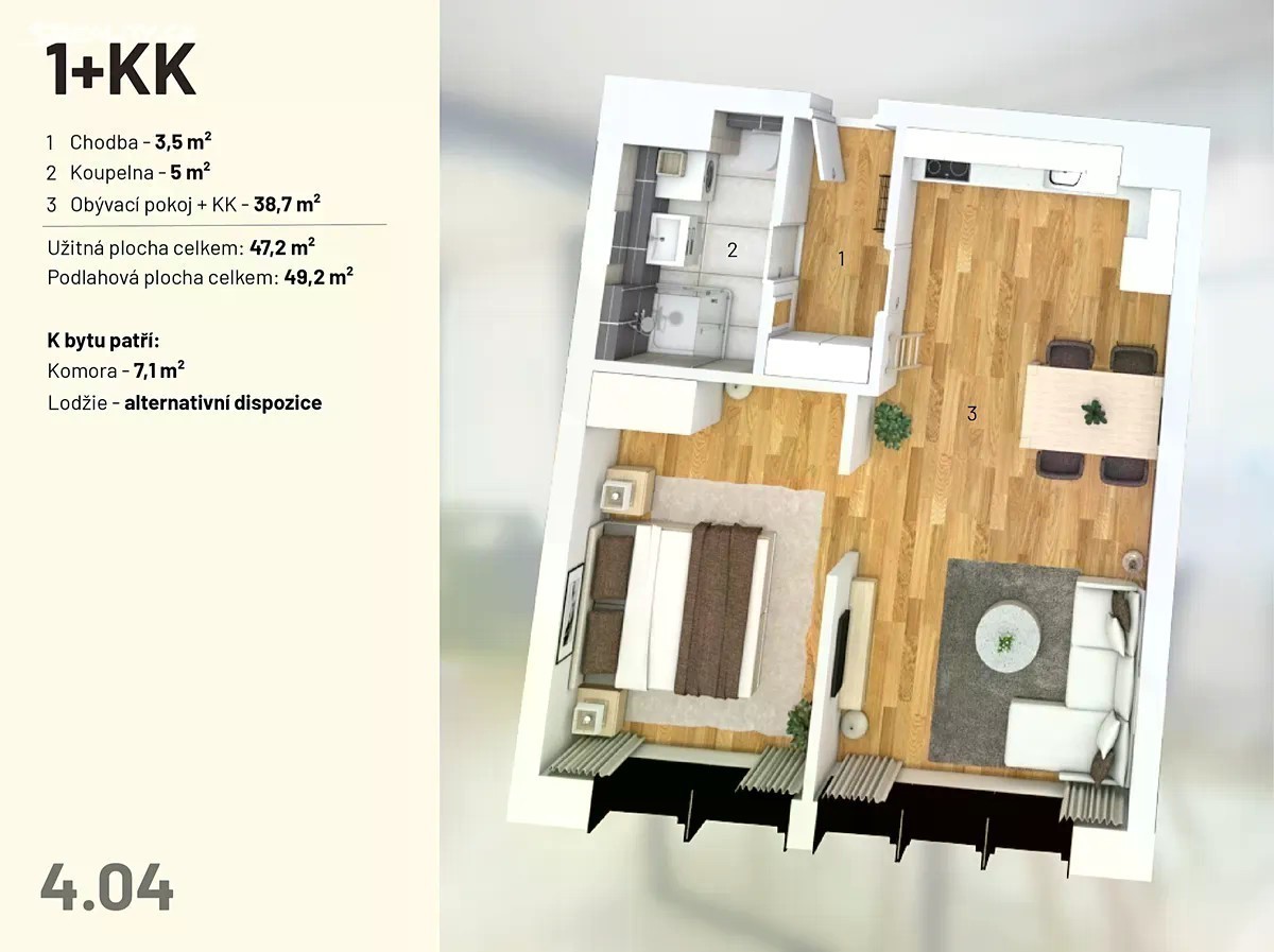 Dovolujeme si Vám nabídnout k prodeji moderní byt 1+kk s možností úpravy na 2+kk v bytovém domě v centru Českých Budějovic. Tento byt s podlahovou plochou 49 m² je umístěn ve 2. patře a nabízí komfortní bydlení s výtahem a bezbariérovým přístupem. V bytě je možnost vestavby lodžie. Součástí bytu je komora umístěná v patře a možnost přikoupení parkovacího stání. Do uliční fasády jsou osazena okna se štěrbinovým větráním a s minimálním hlukovým útlumem 42 db a s možností montáže venkovních žaluzií. V bytě je příprava pro montáž klimatizace. Dokončení a předání proběhne v březnu 2027. Akce na cenové zvýhodnění až 210.000,-Kč, byla prodloužena d ********* Cena bytu je vč. komory, balkonu ev.lodžie a je konečná bez dalších poplatků za realitní služby. Pro více informací o této nemovitosti nebo sjednání informativní schůzky nás prosím kontaktujte nebo vyplňte níže uvedený formulář, rádi Vás budeme o všem informovat.