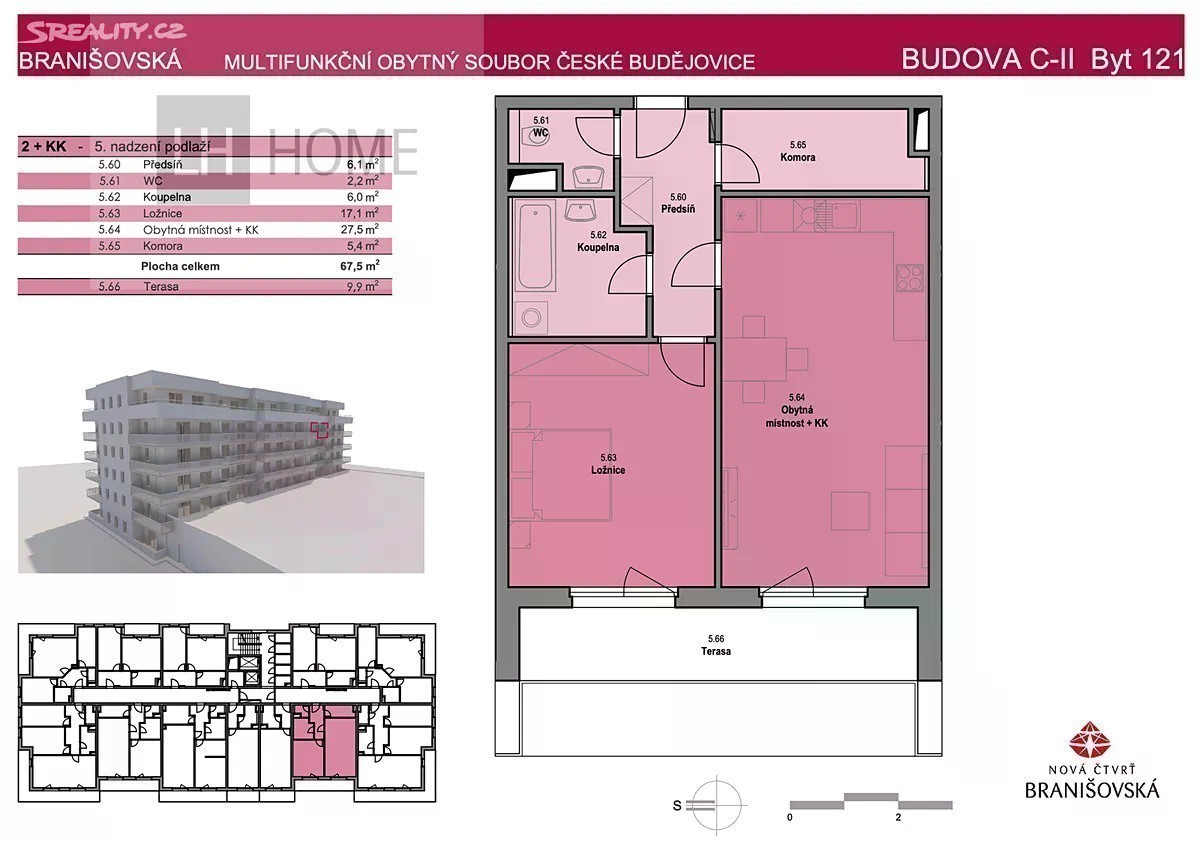 Vaše nové bydlení čeká - poslední volné byty v nabídce! Moderní byt 2+kk (67,5 m²) s balkonem (10 m²) v unikátním projektu Nová čtvrť Branišovská. Toužíte po domově, který kombinuje moderní design, skvělou lokalitu a kvalitní vybavení? Tady je příležitost, kterou nesmíte minout! Tento komfortní byt ve 5. patře novostavby bytového domu C2 se západní orientací splňuje požadavky na praktické a promyšlené bydlení - ideální pro jednotlivce, páry i mladé rodiny. Moderní interiér zahrnuje kvalitní keramické dlažby, vinylové podlahy a elegantní interiérové dveře s obložkami. Každý detail byl navržen s maximální pečlivostí, aby vyhovoval nárokům na současný životní styl. Proč právě Nová čtvrť Branišovská? Jedinečná lokalita: Na dosah přírody i města - klidné bydlení v blízkosti zeleně s výbornou dostupností do centra Českých Budějovic. Strategická poloha: Ideální pro studenty a zaměstnance Jihočeské univerzity, ale také pro investory hledající atraktivní příležitosti k pronájmu. Kompletní občanská vybavenost: Školy, obchody, lékaři a další služby jsou na dosah ruky. Aktivní životní styl: Perfektní místo pro milovníky procházek, cyklistiky a relaxace v přírodě. Bytový dům C - více než jen bydlení: Projekt zahrnuje 136 moderních bezbariérových bytů se zbývajícími dispozicemi 2+kk a 3+kk, každý s balkonem, lodžií nebo terasou. K dispozici je rovněž možnost zakoupení garážového stání a sklepní kóje. K nastěhování v létě 2025. Nenechte si ujít tuto jedinečnou příležitost! Kontaktujte nás ještě dnes a zjistěte více o možnostech financování i dalších detailech.