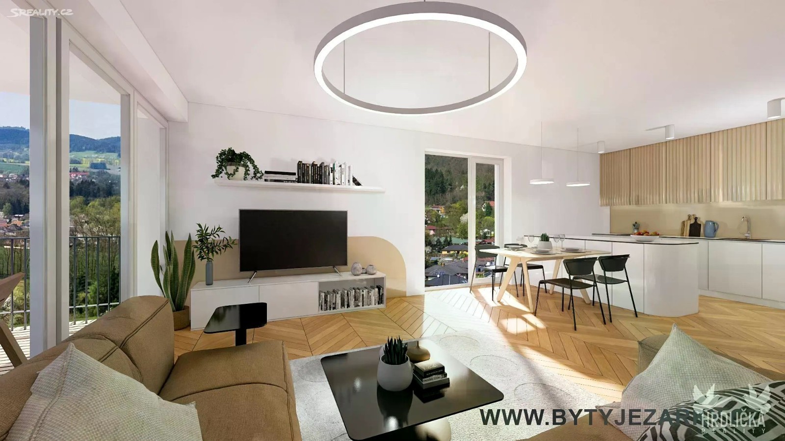 V rámci nově realizované výstavby bytového domu na Jezárkách budou vznikat nové bytové jednotky v nízkoenergeticky náročné budově, ve které se budou nacházet bytové jednotky dispozice 1+kk, 2+kk a 3+kk. Každá jednotka má k dispozici terasu, skladovací kóji, která přímo navazuje na bytovou jednotku a vlastní kryté parkování stání. Samozřejmostí je velký lůžkový výtah a FVE spadající do majetku budoucího SVJ. FVE by měla primárně sloužit pro výrobu elektrické energie pro společné prostory domu, což zajistí nízkoenergetický provoz společných prostor. Předpokládaný termín dokončení stavby je 2026/2027. Zde se jedná konkrétně o jednotky dispozice 3+kk o užitné ploše 99,6 m2, jejíž obytné plochy jsou 83,8 m2, které jsou umístěny ve 2 a 3 NP. Okna a terasy jednotek směřují na jižní světovou stranu, což zajišťuje příjemně prosvětlené a teplé prostory. Sociální zařízení bytové jednotky tvoří koupelna spojená s WC vybavená vanou, nebo sprchovým koutem, záchodovou mísou a umyvadlem. Jednotka je vždy připravena pro osazení kuchyňské linky včetně přípojek rozvodů a vzduchotechniky pro odvod vzduchu z digestoře. Nášlapnou vrstvu podlah tvoří v sociálním zařízení keramická dlažba, zbytek obytné části ve formě betonové podlahy připravené pro finální podlahy dodané budoucím majitelem. Nemovitost bude vytápěna dálkově (Teplárna Strakonice). Pro podrobnější informace kontaktujte makléře.