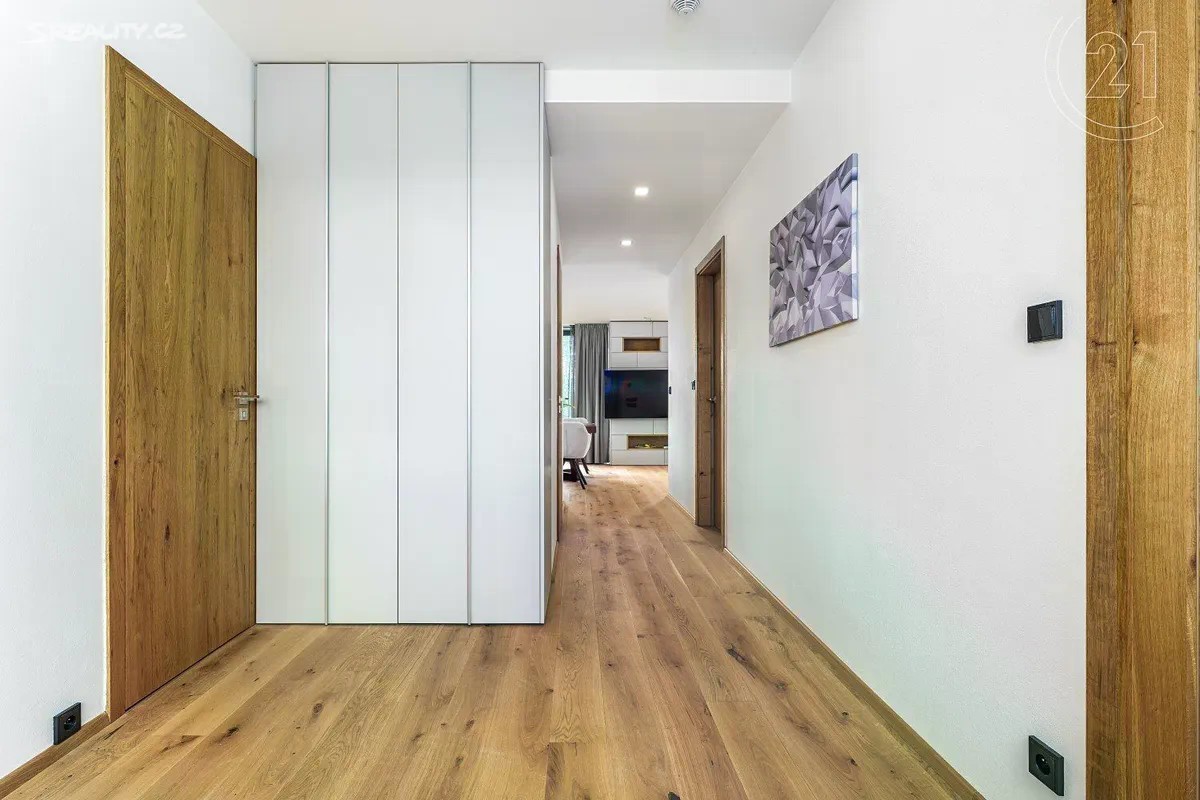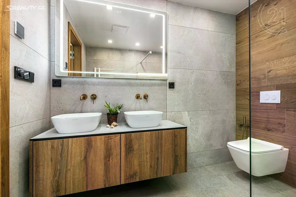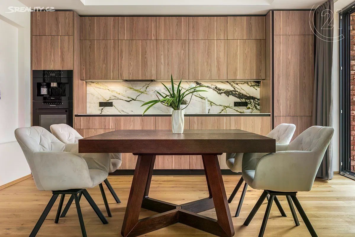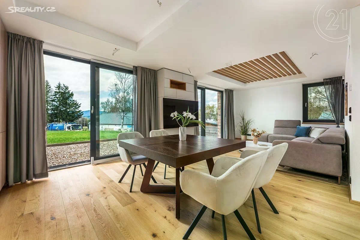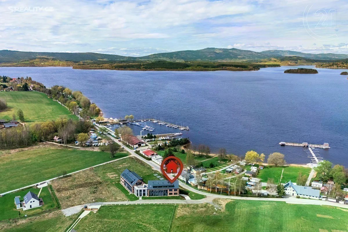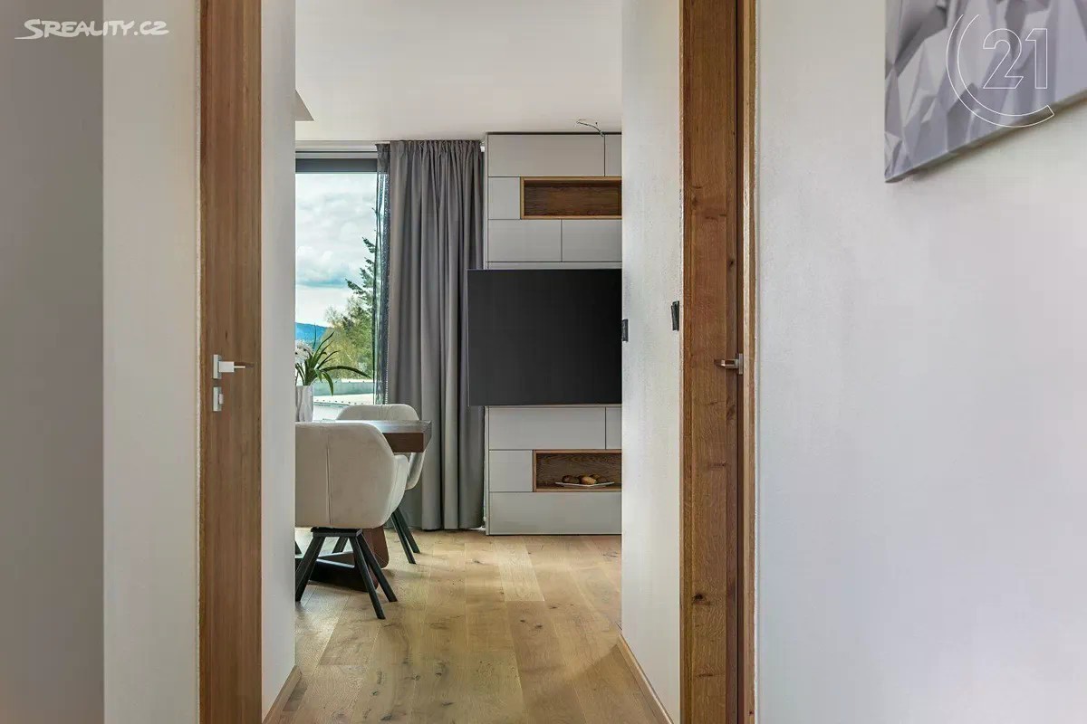 Exkluzivní nabídka. Dovolujeme si Vám nabídnout prodej luxusního apartmánu, polohou v atraktivní lokalitě chráněné krajinné oblasti Šumava, v Černé v Pošumaví. Apartmán je součástí projektu LakeSide Apartments Lipno, který byl dokončen v roce 2022 a poskytuje komfortní ubytování vícečlenné rodině a pod jeho návrhem je podepsán architekt ing. Petr Mužík. Apartmánu o dispozici 3+kk a podlahové ploše 99 m2 dominuje prostorný obývací pokoj s kuchyňským koutem a jídelnou, ze kterého je dvěma velkoplošnými francouzskými okny vstup na terasu (17 m2), ze které je výhled přímo na vodní nádrž Lipno. Kuchyňská linka je osazena spotřebiči Miele (indukční deska, trouba, mikrovlnná trouba, digestoř, lednice, mrazák a vestavěný kávovar). Apartmán dále disponuje dvěma ložnicemi, koupelnou (2 x umyvadlo, sprchový kout, WC), samostatným WC, předsíní a zádveřím. Pračka se sušičkou jsou zabudované do vestavěné skříně v předsíni, každý z pokojů je vybaven televizí. Příslušenstvím je sklepní kóje a garážové stání v suterénu budovy. Zabezpečení je mechanické (bezpečnostní vstupní dveře, okna jsou osazena venkovními žaluziemi a roletami) i elektronické (alarm s přípravou na připojení kamerového systému). V celém apartmánu byly použity vysoce kvalitní materiály, ať už se to týká podlah, obkladů, sanity, nábytku atd. Pro více informací nebo sjednání prohlídky kontaktujte makléře. Provozní náklady: záloha na služby a fond oprav: 4.707 Kč; + elektřina