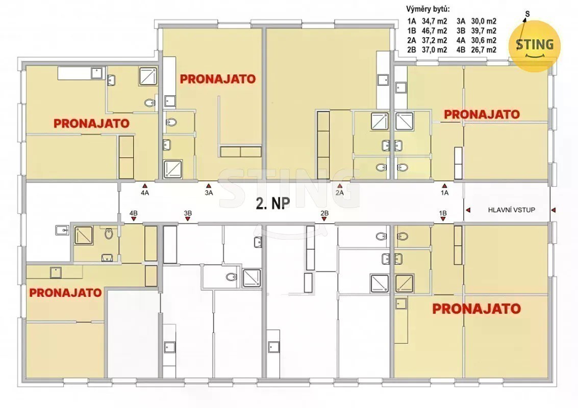 Nabízíme k pronájmu exklusivní bydlení v nově postavené rezidenci v klidné části ulice Starobělská. V 2 NP se nachází jeden z posledních volných bytů 3B s dispozicí 2+1, 39,7 m2 - viz půdorysy, cena nájmu včetně služeb a energií 16858,-Kč/ měsíc. Bytová jednotka je vybavena kuchyňskou linkou s elektrickou troubou a indukcí, chladničkou, televizí. Energetická náročnost budovy B, vytápění tepelným čerpadlem, v koupelně podlahové vytápění, v bytových jednotkách s jižní orientací předokenní rolety, kamerový a zabezpečovací systém. Objekt je oplocený, s udržovaným travním porostem a okrasnými dřevinami. Byty jsou vhodné jak pro studenty, tak pro firmy pro zaměstnance, případně jako startovací bydlení. V blízkosti Clarion, Ostravar Aréna, Shoppingpark, MHD v dosahu pěší chůze, nájezd na dálnici do 7 minut. Neváhejte s prohlídkou.