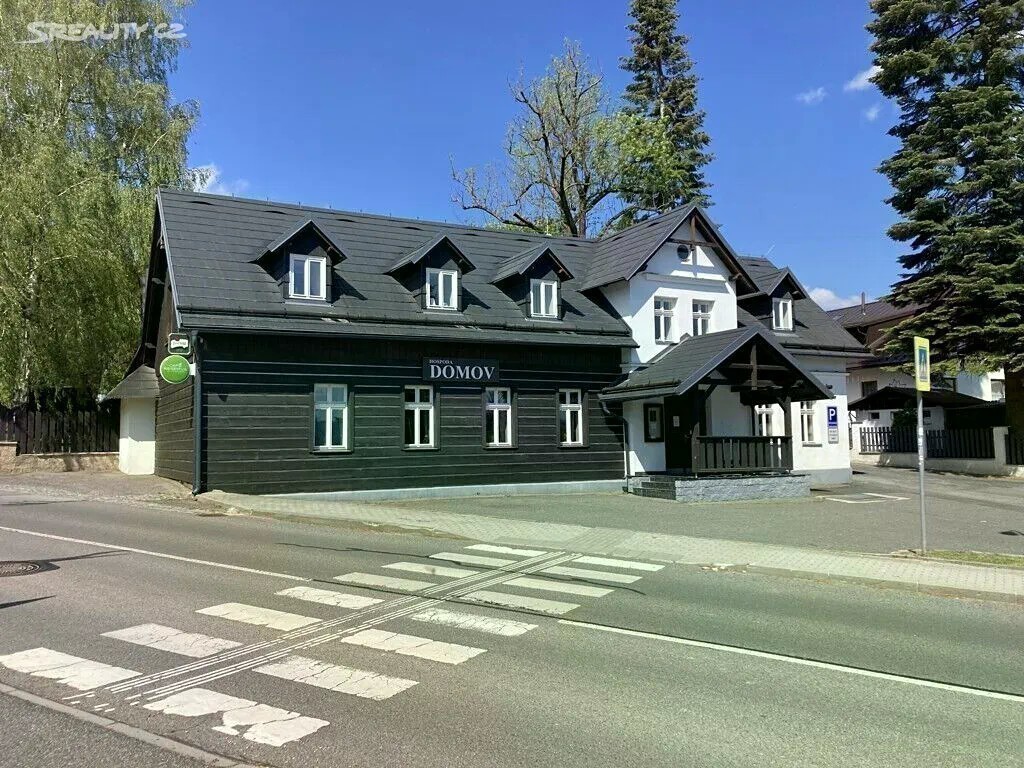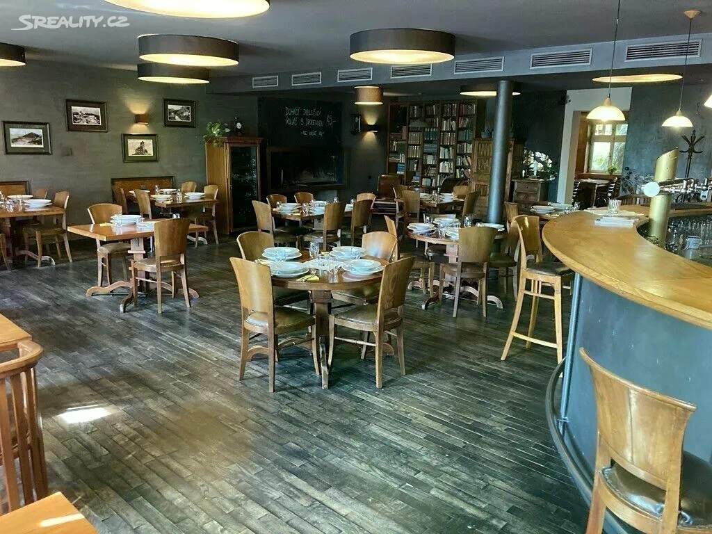 Jedná se o prodej kompletně vybavené nadstandardní restaurace "HOSPODA DOMOV" v Liberci - Horním Hanychově o zastavěné ploše 368 m2, s kompletní občanskou vybaveností, ul. Ještědská, která se nachází v blízkosti centrálního parkoviště pod Ještědem a na konečné tramvaje. Objekt restaurace již sto let slouží stejnému účelu. Během této doby byl upravován a modernizován. Východní cíp pozemku (před vstupem do restaurace) slouží jako parkoviště pro hosty. Západní část pozemku je rozdělena na dvě části. Jižní polovina je klidová se zelení pro hosty, je zde altán a jezírko. Severní slouží pro parkování zaměstnanců. K dispozici je 80 míst, klimatizace, salonek, bezbariérové toalety a dětský koutek, Wi-Fi, salonek, zahrádka s jezírkem a krytým altánem s venkovním grilem a parkoviště. Dispozice restaurace: 1.PP: sklad potravin, sklad vína a nápojů, potravinový výtah, schodiště; 1.NP: zádveří, plně vybavená restaurace nábytkem, vnitřní gril, bar, salonek, WC muži, WC ženy, výdej, nadstandardní vybavená kuchyň vč. nádobí, mytí nádobí, prostor pro lednice, vstup na venkovní terasu, kde se nachází jezírko, krytý altán se sezením a grilem; 2.NP: chodba se schodištěm, 2x kancelář, 3x šatna pro personál, 2x sklad, koupelna + WC pro personál, strojovna. Parkování přímo u objektu na vlastním pozemku. Objekt je napojen na kompletní inženýrské sítě (voda, plyn, elektřina a kanalizace), má zabezpečovací systém pro celý objekt. Volné dle dohody.
