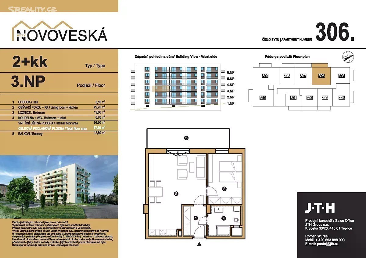 Dny otevřených dveří Nenechte si ujít příležitost podívat se do ukázkového bytu projektu Byty Novoveská a vybrat si byt přesně podle Vašich představ. Budeme se těšit na Vaši návštěvu. v pátek *********: 00 - 18:00 hodin a v sobotu *********: 00 - 14:00 hodin. Preferujeme předchozí telefonické objednání vybraného termínu na + *********. Nicméně vítáni budete všichni. Naši profesionální prodejci vám podají podrobné informace a zodpoví vaše dotazy, abyste si mohli vybrat byt dle vašich představ a pocitů. Exluzivně nabízíme bytovou jednotku o velikosti 61m2 s balkonem. Tento byt se nachází v posledním, tedy 6.NP v již první zkouladované budově C. Byt má JZ polohu a velkorysý balkon o velikosti 10m2, kteý potěší každého milovníka slunce. Doporučujeme prohlídku bytu s možností prohlídky již hotového vzorového bytu ! Nové bydlení v jedné z nejklidnějších částí Teplic. Lokalita se nachází na ulici Novoveská nedaleko Řetenického lesoparku i proslulého věžového vodojemu se snadnou a výbornou dostupností do centra města. Je známá jako oáza klidu a vyhledávané místo oddechu. Projekt obsahuje tři bytové domy, každý dům s 59 byty. Výrazně převažují byty s dispozicí 2+kk (velikosti od 45,80 m2 do 59,80 m2). Byty 3+kk mají velkost 62 m2 až 73 m2. V každém domě je pak jeden byt s dipozičním řešením 4+kk. Ze všech bytů je krásný výhled do okolí, ať už na Teplice, Krušné hory nebo široké okolí. Rezidenční projekt nabízí dostatečný počet parkovacích stání a to jak vnitřních, tak venkovních. K bytu je také možné přikoupit sklepní koji. Celý areál je oplocen a nabízí tak rezidentům bezpečí.
