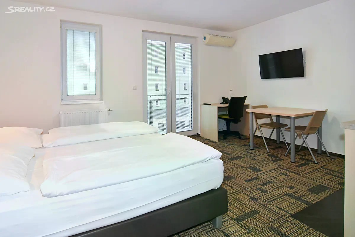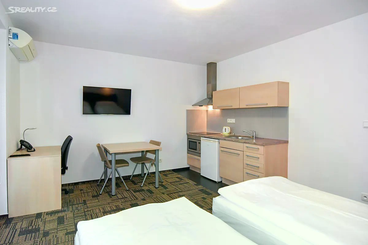 Kompletně zařízený byt. Pronájem na dobu od jednoho měsíce. Možnost pronájmu parkovacího místa za 1 700 Kč měsíčně. Možnost pronájmu pračky za 500 Kč měsíčně. V případě pronájmu firmě, možnost odpočtu DPH. Pro studijní i pracovní pobyty nabízíme pronájem plně zařízeného bytu 1+kk včetně kuchyňské linky a elektrospotřebičů v hotelovém komplexu eFi Palace Hotel v centru Brna. V rámci uzavřeného hotelového komplexu Vám bude k dispozici také fitness, wellness, restaurace, venkovní bazén a parkování na hlídaném parkovišti. Pronájem bytu je možný již od jednoho měsíce až po dobu několika let. Nájemcem může být fyzická osoba či firma. Plátci daně mohou využít odečtu DPH. Odjíždíte na léto domů? Nevadí, byt uvolníte na letní období, ve kterém nebudete nic platit, a od podzimu se můžete znovu nastěhovat do stejného bytu. Byty 1+kk jsou o výměře od 33,14 do 47,25 m2 a nacházejí se ve 2.-5. podlaží. Budova je opatřena výtahem i schodištěm. Byt má vstupní chodbu vybavenou vestavěnou šatní skříní s celoplošným zrcadlem a pokojovým trezorem. Dále byt disponuje vlastní klimatizací, moderní vybavenou kuchyňskou linkou s pracovní deskou, podstavnou lednicí indesit, vestavěnou mikrovlnou trouba s grilem a horkovzdušnou troubou, varnou konvicí a jídelní soupravou s nádobím pro 2 osoby. Pokoj je vybavený jídelním stolem se 2 židlemi, pracovním stolem s kancelářskou židlí a smart TV. V pokoji je luxusní postel King Koil s možností uspořádání postelí odděleně nebo jako manželská postel. Koupelna může být s vanou nebo sprchovým koutem, umyvadlem, wc a topným žebříkem. Z pokoje je vstup na balkon orientovaný do vnitrobloku. WiFi připojení se standardní rychlostí dat je již v ceně pronájmu. V ceně měsíčního nájmu je kalkulována paušálně i cena za odběr elektřiny, vody a topení. Cena měsíčního nájmu zahrnuje úklid společných prostor a pronájem povlečení s jejich výměnou v rozsahu jedenkrát měsíčně. Možnost pronájmu parkovacího stání v areálu komplexu je za 1 700 Kč měsíčně. Možnost pronájmu pračky umístěné v bytě za 500 Kč měsíčně. Je požadovaná vratná kauce ve výši jednoho až dvou nájmů dle délky ubytování. Nabídka je vhodná pro pracovní či studijní pobyty, a to zejména pro oborové specialisty, vytížené vedoucí pracovníky, obchodní zástupce, podnikatelé či studenty vysokých škol. Skvělá dostupnost do centra Brna za necelých 10 minut pěší chůze nebo dvě zastávky MHD. Prohlídky bytů možné kdykoli po předchozí domluvě. Neplatíte provizi za zprostředkování pronájmu!