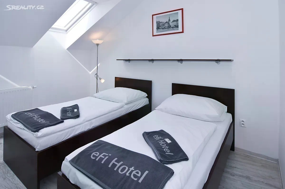 Kompletně zařízený byt. Pronájem na dobu od jednoho měsíce. Možnost pronájmu parkovacího místa za 1 700 Kč. Možnost pronájmu pračky za 500 Kč měsíčně. V případě pronájmu firmě, možnost odpočtu DPH. Pro studijní i pracovní pobyty nabízíme pronájem plně zařízeného bytu 3+kk včetně kuchyňské linky a elektrospotřebičů v hotelovém komplexu eFi Palace Hotel v centru Brna. V rámci uzavřeného hotelového komplexu Vám bude k dispozici také fitness, wellness, restaurace, venkovní bazén a parkování na placeném parkovišti. Pronájem bytu je možný již od jednoho měsíce až po dobu jednoho roku. Nájemcem může být fyzická osoba či firma. Plátci daně mohou využít odečtu DPH. Odjíždíte na léto domů? Nevadí, byt uvolníte na letní období, ve kterém nebudete nic platit, a od podzimu se můžete znovu nastěhovat do stejného bytu. Byty jsou o výměře 121 m2 až 140 m2a nachází se v 5. podlaží. Budova je opatřena výtahem i schodištěm. Byt má vstupní chodbu vybavenou šatní skříní, celoplošným zrcadlem a pokojovým trezorem. Z předsíně je vstup na samostatné WC. Dále byt disponuje obývací částí s moderní vybavenou kuchyňskou linkou s pracovní deskou, podstavnou lednicí Indesit, vestavěnou mikrovlnou trouba s grilem a horkovzdušnou troubou, varnou konvicí a jídelní soupravou s nádobím pro 6 osob. Pokoj je vybavený jídelním stolem se 6 židlemi, pracovním stolem s kancelářskou židlí a smart TV. Z pokoje je vstup na balkon. V horním patře se nachází dvě samostatné ložnice, v každé z nich jsou dvě komfortní postele, šatní skříň a pracovní stůl s židlí. Z jedné ložnice je přístup na prostornou terasu s posezením a výhledem na Petrov a Špilberk. Koupelna v horní části je s rohovou vanou, umyvadlem, bidetem, WC a topným žebříkem. Wifi připojení je v ceně pronájmu. V ceně měsíčního nájmu je kalkulována paušálně i cena za odběr elektřiny, vody a topení. Cena měsíčního nájmu zahrnuje úklid společných prostor a pronájem povlečení s jejich výměnou v rozsahu jedenkrát měsíčně. Je požadovaná vratná kauce ve výši jednoho až dvou nájmů dle délky ubytování. Dlouhodobě ubytovaní nájemci mají v komplexu eFi Palace Hotelu zvýhodněný vstup do hotelového wellness a fitness centra. Nabídka je vhodná pro pracovní či studijní pobyty, a to zejména pro oborové specialisty, vytížené vedoucí pracovníky, obchodní zástupce, podnikatelé či studenty vysokých škol. Skvělá dostupnost do centra Brna za necelých 10 minut pěší chůze nebo dvě zastávky MHD. Prohlídky bytů možné kdykoli po předchozí domluvě. Neplatíte provizi za zprostředkování pronájmu!